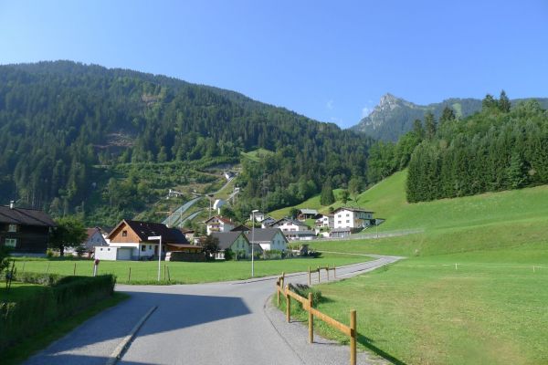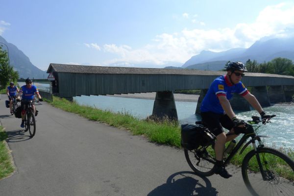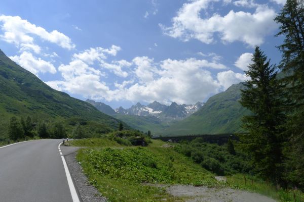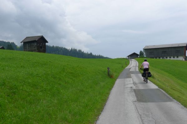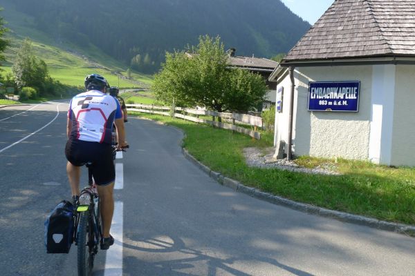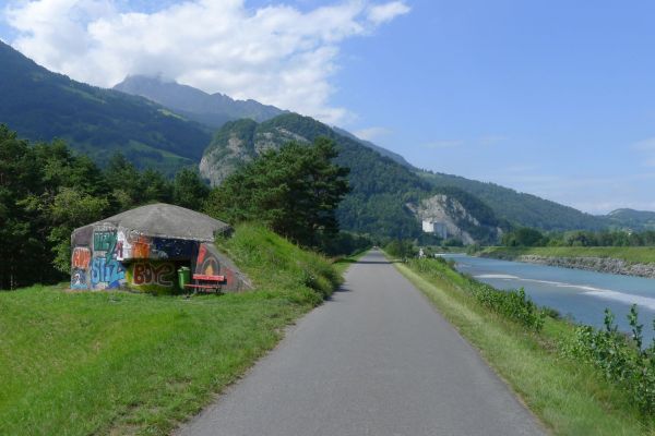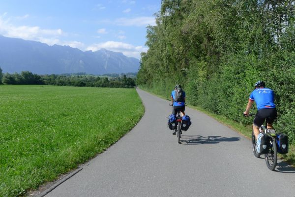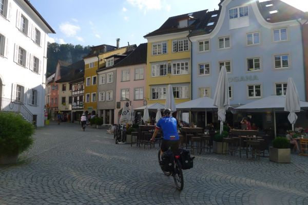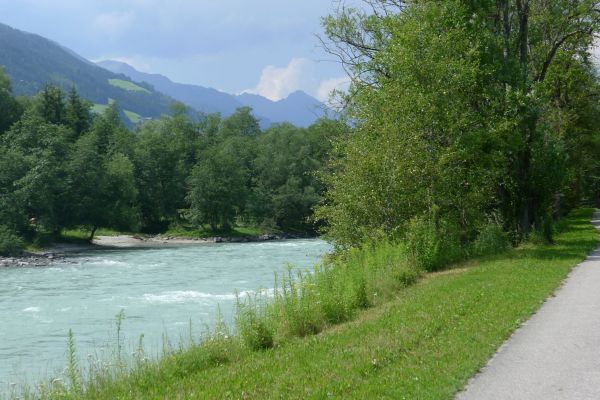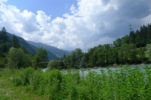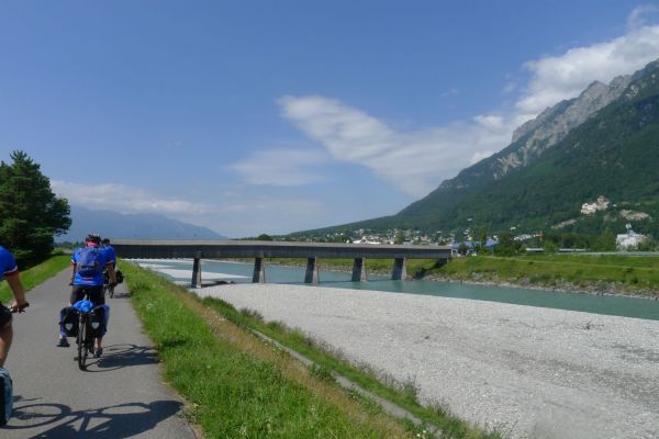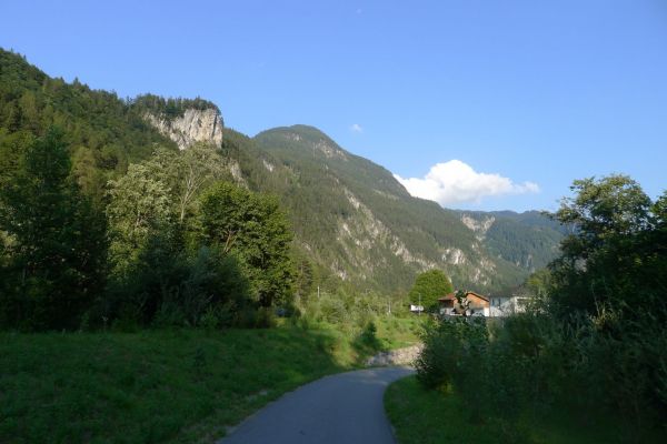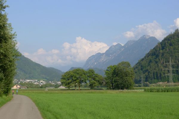 17:20 Uhr: zwischen Mauren und Feldkirch passieren wir die Grenze zu Österreich. Wir fahren durch die Altstadt von Feldkirch und folgen dem Tal der Ill bis Bludenz. Noch 35km bis zum Etappenziel. Unmerklich wird der Weg steiler und wir sammeln die ersten Höhenmeter.
