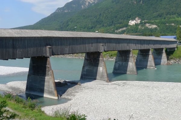 16:20 Uhr: kurz vor Vaduz fahren wir über die alte hölzerne Rheinbrücke und passieren die Grenze nach Liechtenstein. Rechts über uns thront das Schloss Vaduz, fürstliche Residenz und Wahrzeichen des Landes. Auf der anderen Seite des Rheintals erhebt sich auf Schweizer Seite das Alpsteinmassiv mit dem 2502m hohen Säntis. Diese Berge konnten wir auf der 2018er Tour schon von der anderen Seite auf der Fahrt nach Appenzell bewundern.