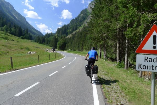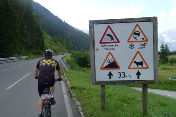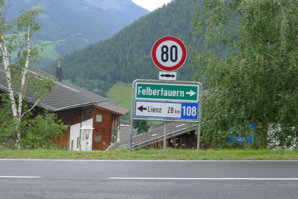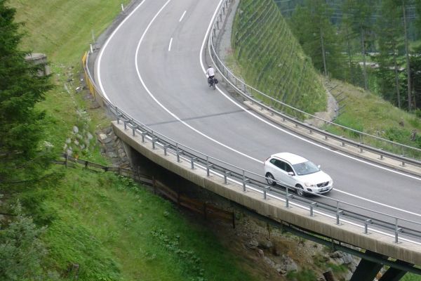 Erstes Zwischenziel ist der Felbertauerntunnel, vom Start weg sind 18km mit 750 Höhenmetern zu überwinden. Die Felbertauern-Passtraße lässt sich gut fahren, 6-8% Steigung und dazwischen lange Passagen mit weniger als 5%.