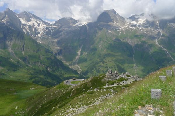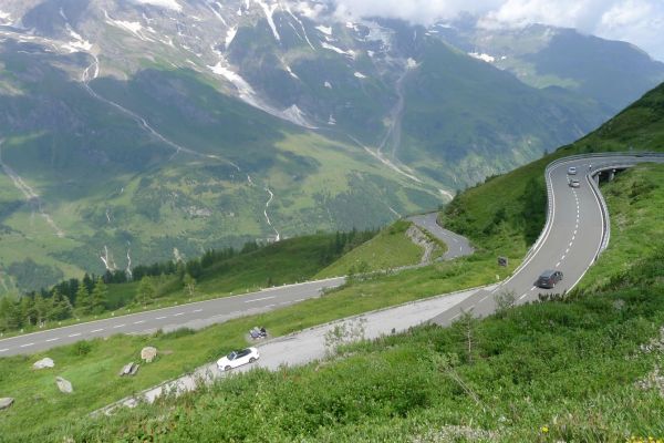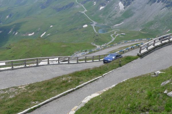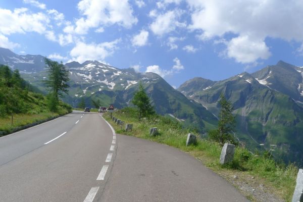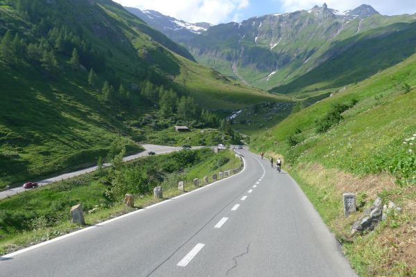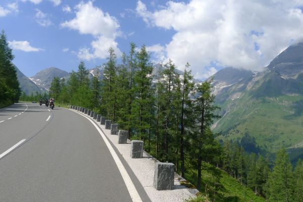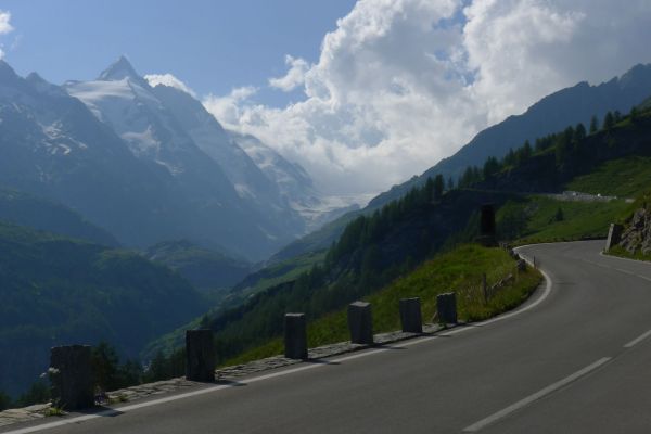 9:45 Uhr: nach einer Flachpassage erreichen Steff und ich die Mautstelle Ferleiten. Thomas ist schon durch und im Anstieg. Der Ausblick auf die 3000er ist umwerfend. Und schon wird es wieder steil, 11% zeigt der Tacho vor den ersten Serpentinen. Plötzlich wird es ganz ruhig um uns herum, kein Auto, kein Geknatter der Motorräder ist zu höher. Aufgrund eines Unfalls ist die Einfahrt ab der Mautstelle gesperrt. Wir haben die Passstraße für uns alleine, zumindest für eine knappe Stunde….
