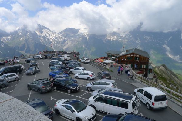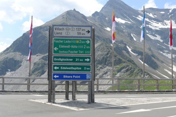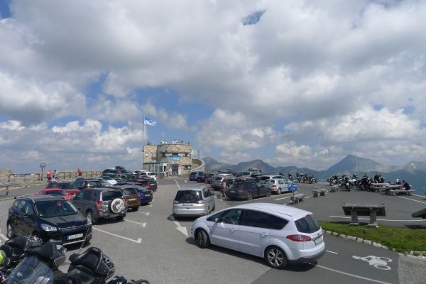 12:25 Uhr: 6 Kehren später ist die Edelweißspitze, mit 2571m der höchste Punkt der Großglockner Hochalpenstrasse erreicht. Es folgt eine lange Pause. Als nächstes trudeln Thomas, der bei der Auffahrt einen Defekt hatte, und Steff ein. Andi und Klaus stärken sich auf der Hütte beim Fuscher Törl mit Kässpatzen, ehe sie die Edelweissspitze in Angriff nehmen.