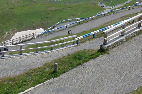 13:40 Uhr: Nach einer Pause geht’s weiter. Wir machen Armin Mut, nur noch 5 oder 6 Kehren bis zur Passhöhe. Die ersten Kilometer am See entlang verlaufen auch fast ohne Steigung. Doch dann wird es vor der Passhöhe nochmal richtig steil, aber zum Glück sind die 10%igen Rampen nicht allzu lang.