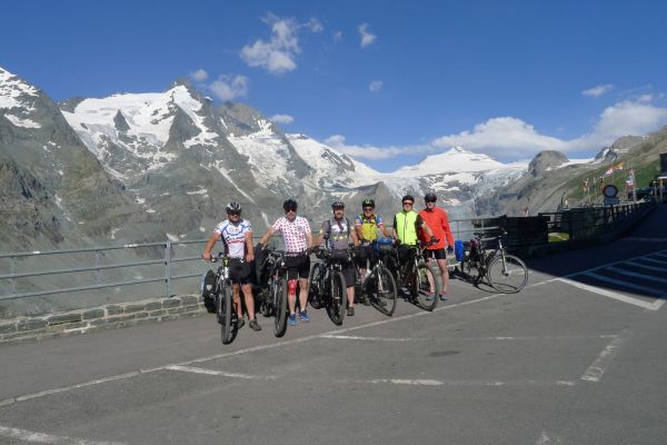 Die Gipfelstürmer des TUS Vollnkirchen waren wieder zum Radfahren in den Alpen. Die ursprünglich für Mitte Juni geplante Tour musste Corona-bedingt umgeplant werden, wodurch sich auch die Teilnehmerzahl von 10 auf sechs Personen reduzierte. Nach der Anreise ins schweizerische Sargans führte die erste Etappe über Vaduz (FL) und Feldkirch (A) ins Montafon nach Schruns. Auf der zweiten Etappe wurde es dann sportlich, 31 Kehren mit 9-12% Steigung auf der Silvretta Hochalpenstraße waren bis auf die Bieler Höhe (2032m) zu überwinden. Bei schwülen 30°C in der Sonne und mitgeführtem Gepäck eine echte Herausforderung. Es folgte eine 50km lange Abfahrt durch das Paznauntal über Galtür und Ischgl nach Landeck, von wo aus es via Zugtransfer zum nächsten Etappenort Zell am See weiterging. Am nächsten Tag folgte die Königsetappe, 62km mit 2500 Höhenmetern auf der Großglockner Hochalpenstraße bis auf die Kaiser-Franz Josef Höhe, direkt am Fuß des Pasterzengletschers. Dabei führte auch ein 1,5 km langer und im Schnitt 12% steiler Abstecher auf kopfsteingepflasteter Strasse zur Edelweißspitze, mit 2571m dem höchsten Punkt der Tour. Der Lohn für den langen Anstieg des Vortages folgte auf der vierten Etappe. Eine 30km lange Abfahrt hinab ins Tal. Über den Iselsbergpass und Lienz führte die Strecke weiter nach Matrei in Osttirol. Die fünfte Etappe war mit 100km die längste der Tour und führte über die Felbertauernstrasse nach Mittersill und weiter über den Pass Thurn und Kitzbühel nach Kufstein. Durch das Inntal führte die Schlussetappe –leider bei Dauerregen- nach Rosenheim, von wo aus die Rückreise mit dem Zug angetreten wurde. Insgesamt wurden an sechs Tagen 490km und 7015 Höhenmeter bewältigt.