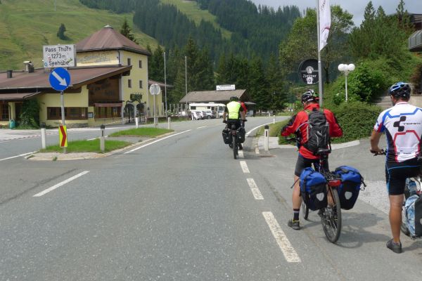 13:30 Uhr Paß Thurn (1272m) ist bei Wind und leichtem Nieselregen erreicht.