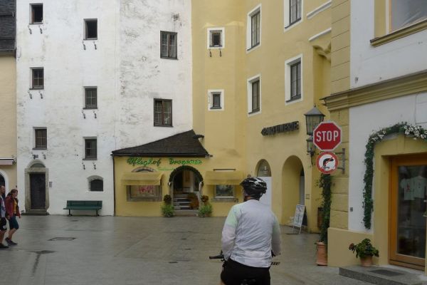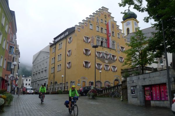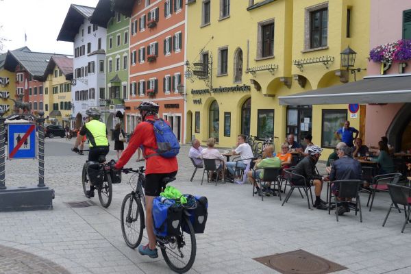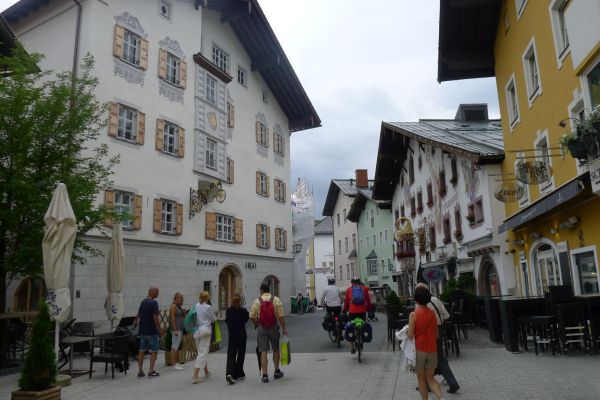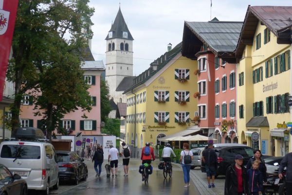 14:45 Uhr: Kitzbühel ist erreicht. Nach einem kurzen Rundgang durch die Altstadt kehren wir ein und machen Mittag. Genau zur richtigen Zeit, denn draußen beginnt es in Strömen zu regnen.