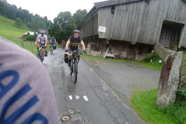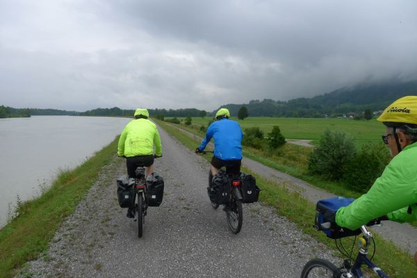 9:36 Uhr: Abfahrt zur letzten Etappe, gut 40km sind es auf dem Inntalradweg nach Rosenheim. Kurzzeitig hört es auf zu regnen, doch schon bald fallen die Tropfen wieder.