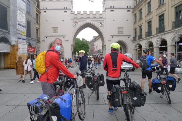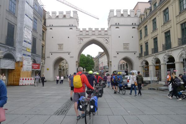 13:15 Uhr: In München angekommen sucht Klaus das DB Reisezentrum auf um zu prüfen, ob wir schon einen Zug früheren zurück nehmen können. Das klappt leider nicht und auch unser gebuchter Zug hat wieder kein Radabteil….. Um 16:27 Uhr geht es weiter. Die Zeit bis dahin nutzen wir für einen Gang durch die Stadt zum Viktualienmarkt. In einem Brauhaus machen wir Mittag.