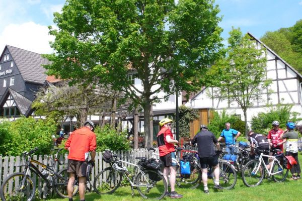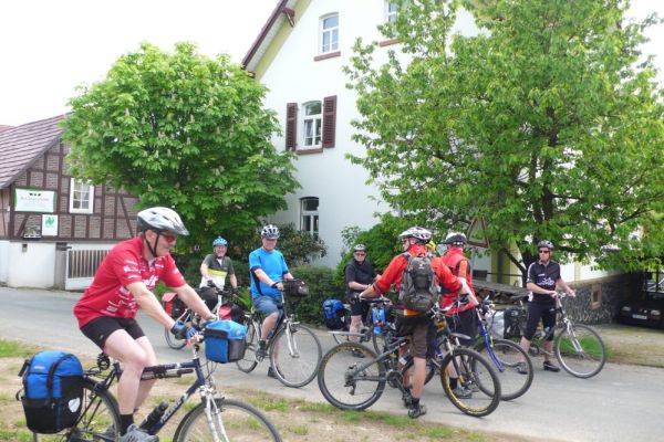 Neun Teilnehmer sind am Samstag den 19. Mai zur Eröffnungtour 2012 ins Lahn-Dill Bergland aufgebrochen. Die Strecke führte über Rechtenbach, Lützellinden, Klein-Linden bei Heuchelheim an die Lahn. Nach der Durchquerung Gießens, führte die Route links der Lahn entlang über die Seen bei Launsbach und Wißmar nach Odenhausen. Von dort zweigte der Salzböderadweg ab, der uns auf landschaftlich reizvoller Strecke bis nach Bad Endbach brachte. In der Damm-Mühle im unteren Salzbödetal wurde eine kurze Rast eingelegt, um die Mittagsverpflegung einzunehmen.