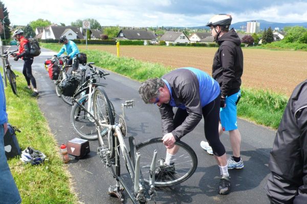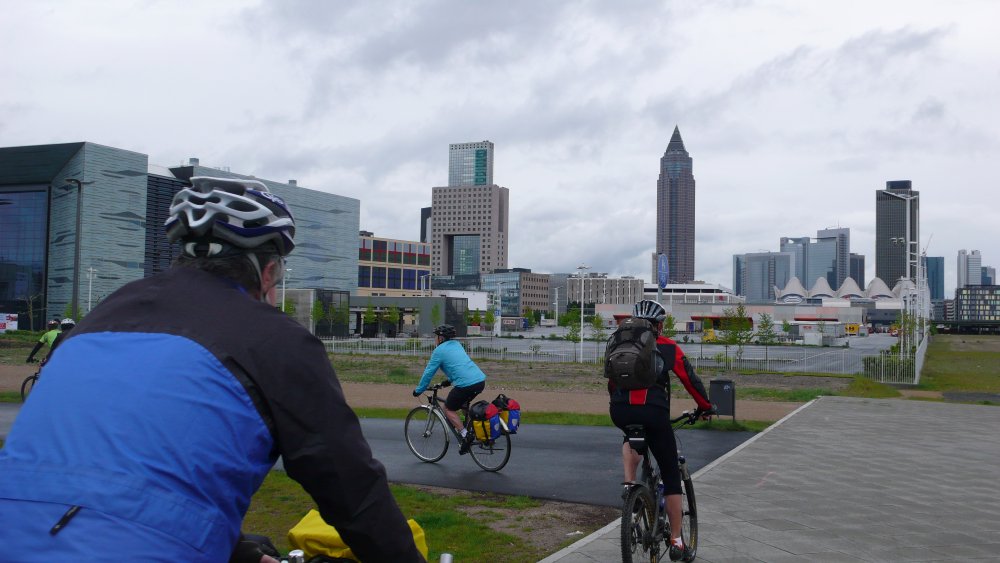 Ziel der 2013er Auflage des Frühjahrsklassikers war Frankfurt. Durch die Wetterau führte die Strecke entlang der Nidda bis in die Bankenmetropole am Main. Kurz hinter Dorheim, nach etwa der Hälfte der Etappe, passierte die erste Panne: Diagnose Speichenbruch. So wurde kurzerhand ein Abstecher ins 4km entfernte Friedberg in die Routenplanung mit aufgenommen, um eine Servicewerkstatt aufzusuchen. Danach konnte die Fahrt ohne weitere Zwischenfälle fortgesetzt werden. Lediglich das Wetter machte den Radlern ein wenig zu schaffen. Ein kräftiger Wind wehte quasi immer aus der Gegenrichtung und gegen Nachmittag zogen dunkle Regenwolken auf.....