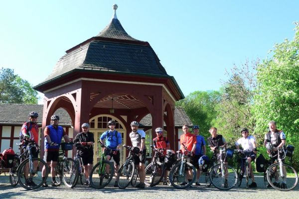Nach einem Gruppenfoto im Kurpark von Bad Salzhausen startete die 2. Teiletappe zurück nach Vollnkirchen. Über die Ausläufer des Vogelsberg ging es im Zickzackkurs durch die Felder und Äcker der Wetterau. Im Sprudelhof in Bad Nauheim legten wir nochmal einen Kaffeestop ein, ehe es über Mörlen, Butzbach und Langgöns in Richtung Heimat ging, wo wir pünktlich zum Dorfcafe eintrafen. Am 2. Tagen wurden 62km und 400 Höhenmeter gefahren.