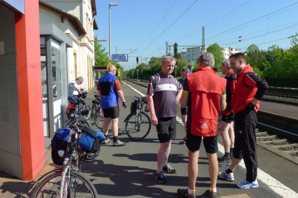 Ideales Radfahrwetter herrschte als die TUS-Radler zur diesjährigen Eröffnungstour aufgebrochen sind. Der Start erfolgte am Samstag den 7. Mai um 9:30 am Dorfplatz in Vollnkirchen und führte uns zunächst an den Bahnhof nach Langgöns, wo es mit dem Zug weiter nach Wächtersbach im Kinzigtal ging.