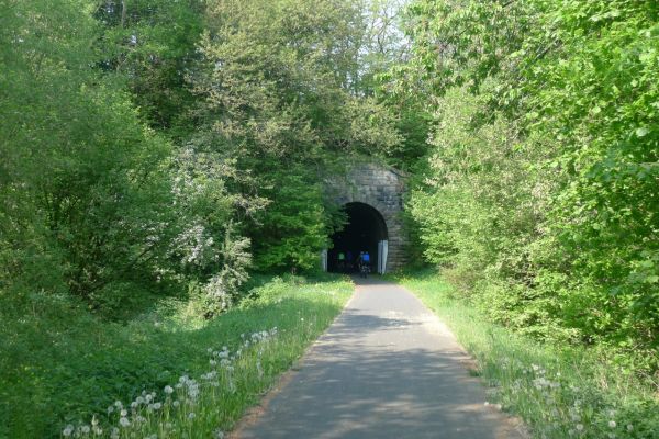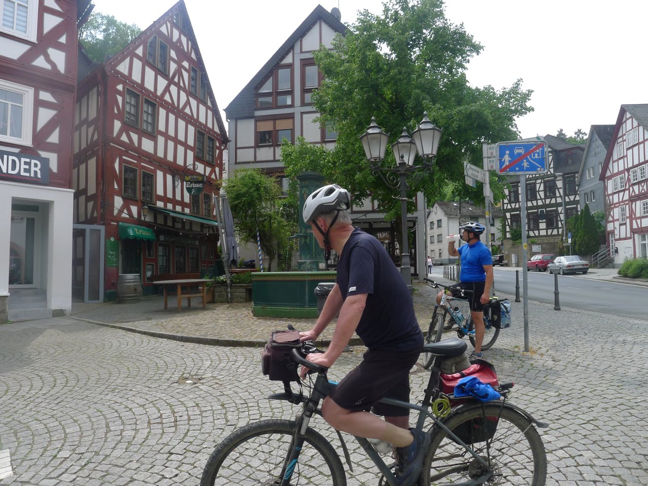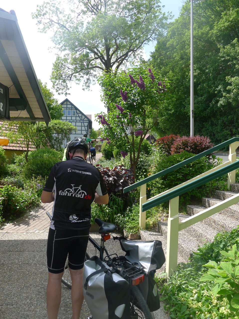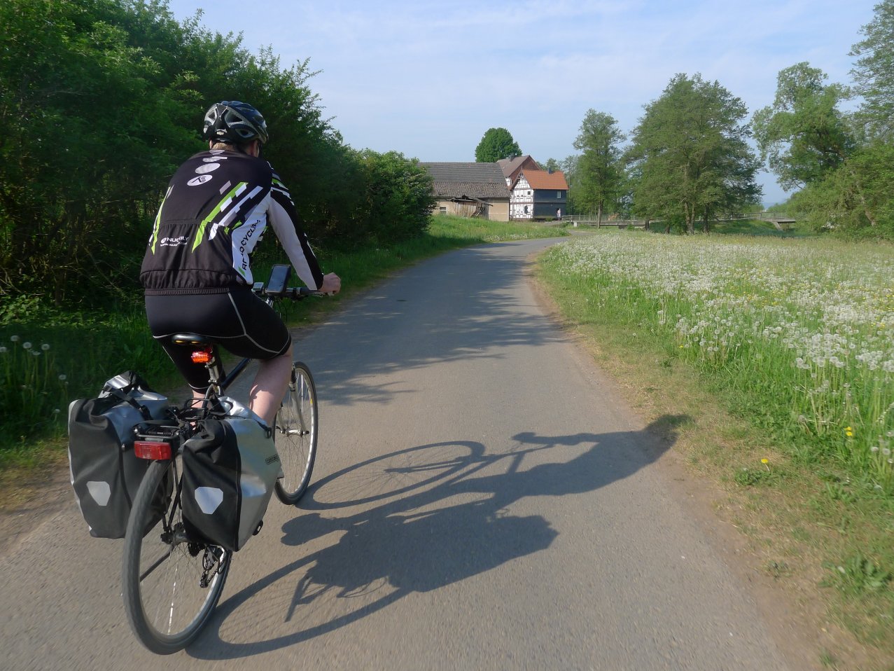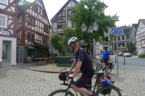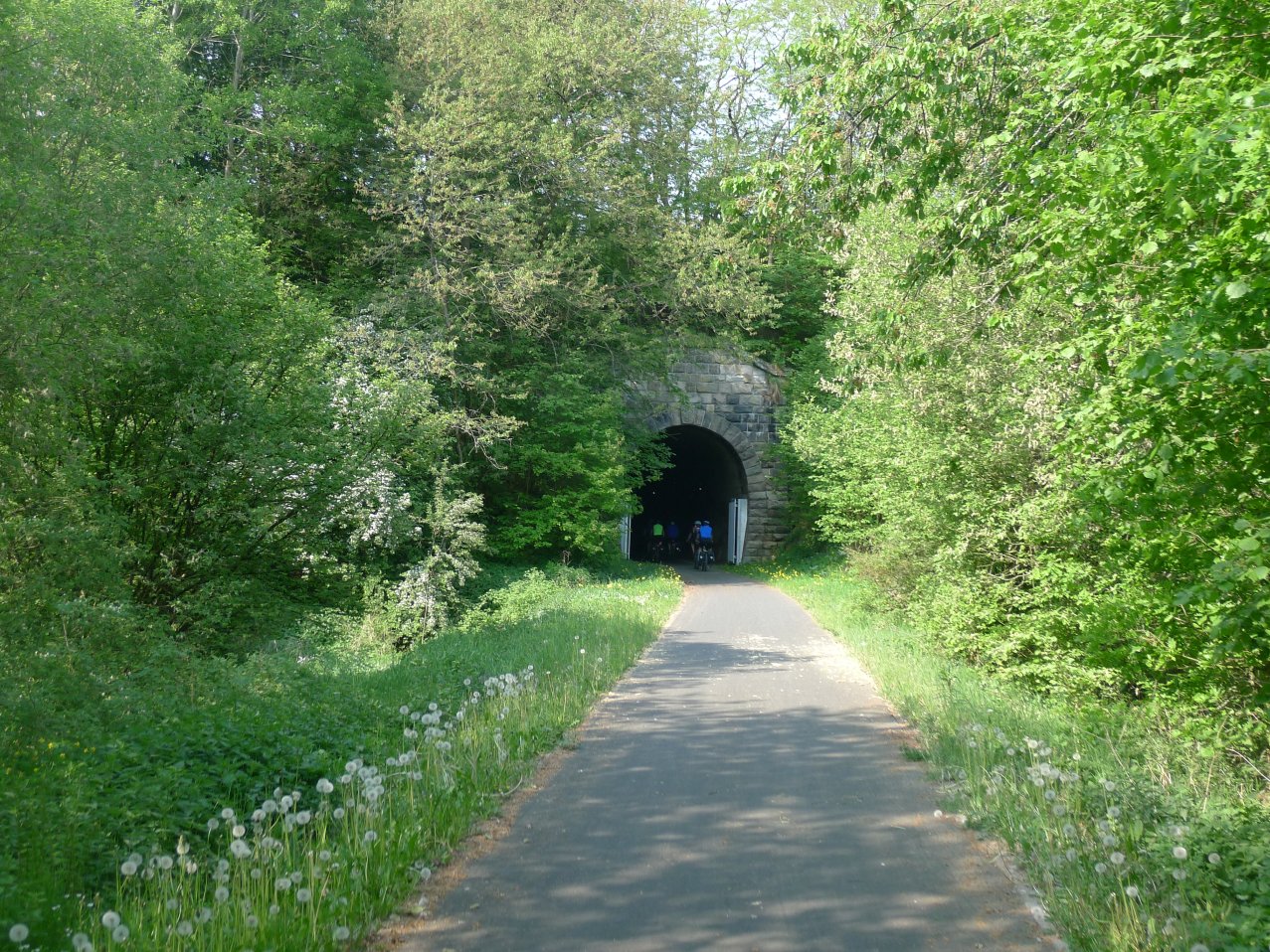 Pünktlich um 9:00 Uhr sassen wir wieder auf dem Rad. Die Wetterprognosen für den 2. Tag waren nicht so gut und wir wollten vor den für den Nachmittag angekündigten Gewittern das Zwischenziel Dillenburg erreichen. Entsprechend wurde von Beginn an auch ein hohes Tempo angeschlagen. Auf weitgehend flacher Strecke durch die Ederauen war das auch kein Problem. Höhepunkt war der Abschnitt von Battenberg nach Hatzfeld auf einer alten Bahnstrecke mit einem Tunnel bei Reddighausen. In Hatzfeld, etwa 30km nach dem Start, zweigte der Weg nach Süden ab. Nun ging es hinein ins Rothaargebirge. Die Sackpfeife haben wir zwar -im wahrsten Sinne des Wortes- links liegen gelassen, aber vor und hinter Lindenhof mussten 2 Anstiege bewältigt werden. In dem Ort steht Hessens kleinste Kirchel, auf rund 25 Quadratmeter bietet sie Platz für 46 Personen. Nach dem Ort war mit über 500m auf der höchste Punkt der Tagesetappe erreicht. Nach der Abfahrt nach Wallau folgte wieder ein langgezogener Anstieg nach Simmersbach. Hier blies uns zudem ein kräftiger Gegenwind entgegen. Es folgte eine 17km lange Abfahrt bis Dillenburg, welches wir vor dem Gewitter erreichten. Erst als wir bei Kaffee und Kuchen sassen prasselte es los. Der Regen war aber nur von kurzer Dauer. Nach einem Stück mit dem Zug bis Wetzlar ging es dann auf die letzten Kilometer nach Vollnkirchen, das wir nach 87 km und 840 Höhenmetern, ebenfalls trocken, erreichten.