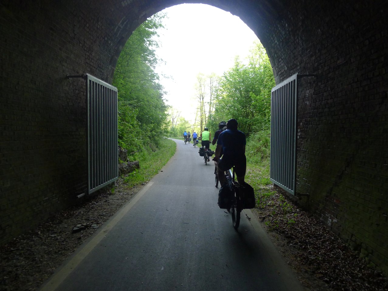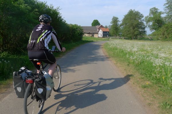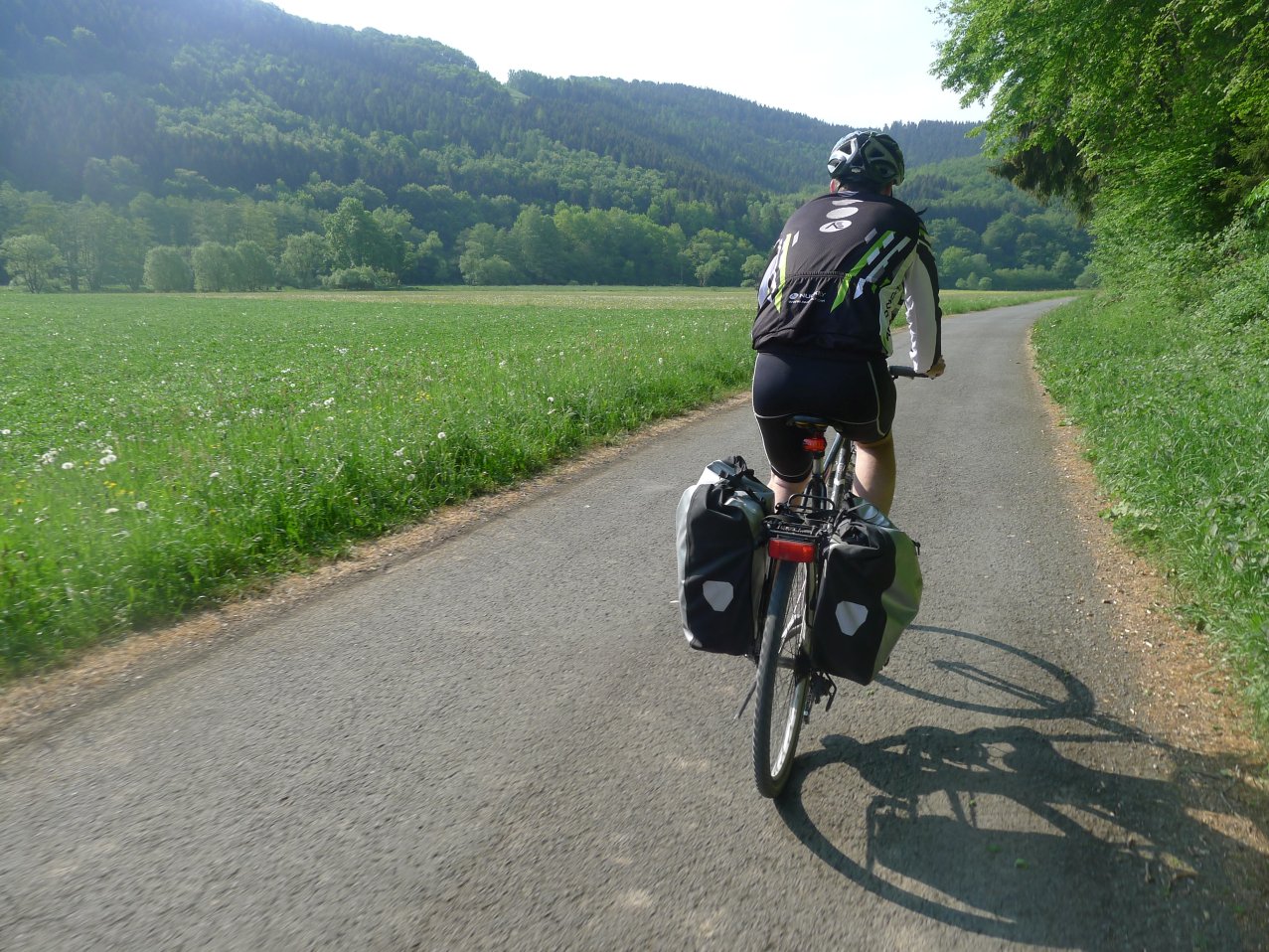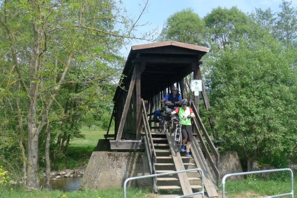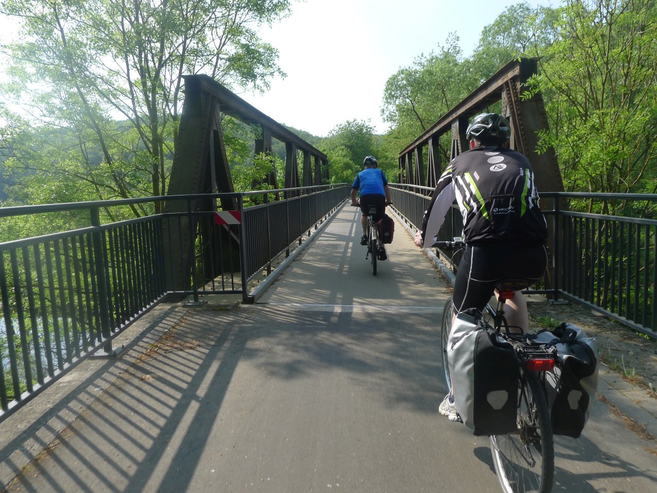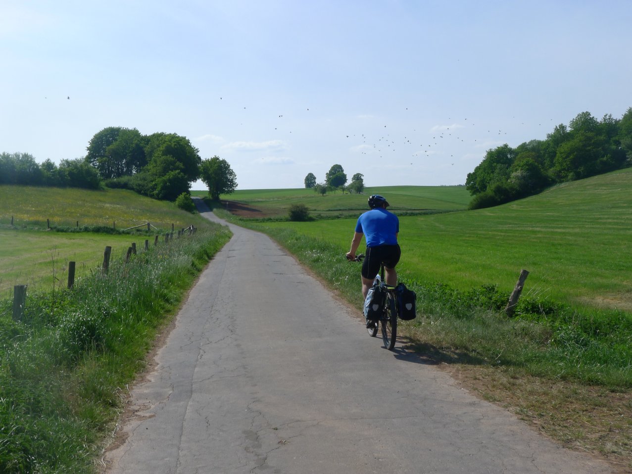 Pünktlich um 9:00 Uhr sassen wir wieder auf dem Rad. Die Wetterprognosen für den 2. Tag waren nicht so gut und wir wollten vor den für den Nachmittag angekündigten Gewittern das Zwischenziel Dillenburg erreichen. Entsprechend wurde von Beginn an auch ein hohes Tempo angeschlagen. Auf weitgehend flacher Strecke durch die Ederauen war das auch kein Problem. Höhepunkt war der Abschnitt von Battenberg nach Hatzfeld auf einer alten Bahnstrecke mit einem Tunnel bei Reddighausen. In Hatzfeld, etwa 30km nach dem Start, zweigte der Weg nach Süden ab. Nun ging es hinein ins Rothaargebirge. Die Sackpfeife haben wir zwar -im wahrsten Sinne des Wortes- links liegen gelassen, aber vor und hinter Lindenhof mussten 2 Anstiege bewältigt werden. In dem Ort steht Hessens kleinste Kirchel, auf rund 25 Quadratmeter bietet sie Platz für 46 Personen. Nach dem Ort war mit über 500m auf der höchste Punkt der Tagesetappe erreicht. Nach der Abfahrt nach Wallau folgte wieder ein langgezogener Anstieg nach Simmersbach. Hier blies uns zudem ein kräftiger Gegenwind entgegen. Es folgte eine 17km lange Abfahrt bis Dillenburg, welches wir vor dem Gewitter erreichten. Erst als wir bei Kaffee und Kuchen sassen prasselte es los. Der Regen war aber nur von kurzer Dauer. Nach einem Stück mit dem Zug bis Wetzlar ging es dann auf die letzten Kilometer nach Vollnkirchen, das wir nach 87 km und 840 Höhenmetern, ebenfalls trocken, erreichten.