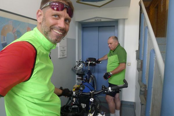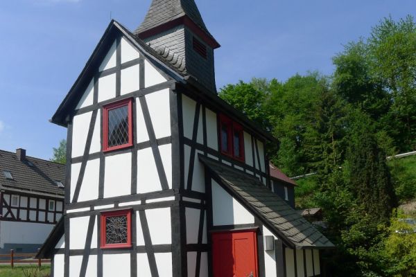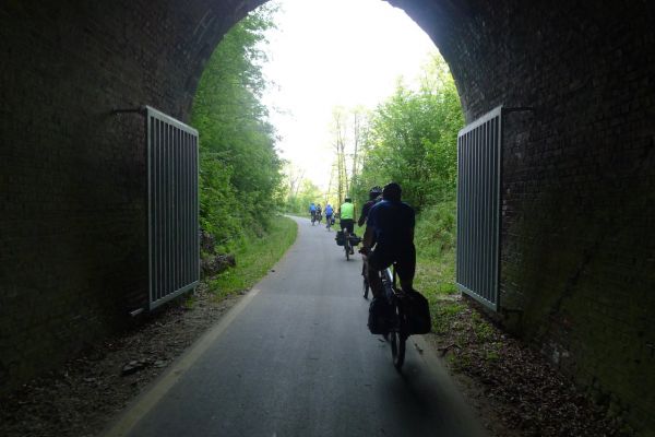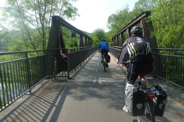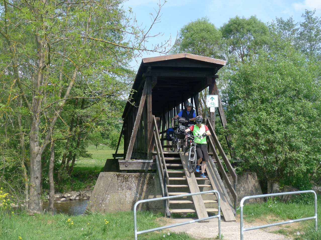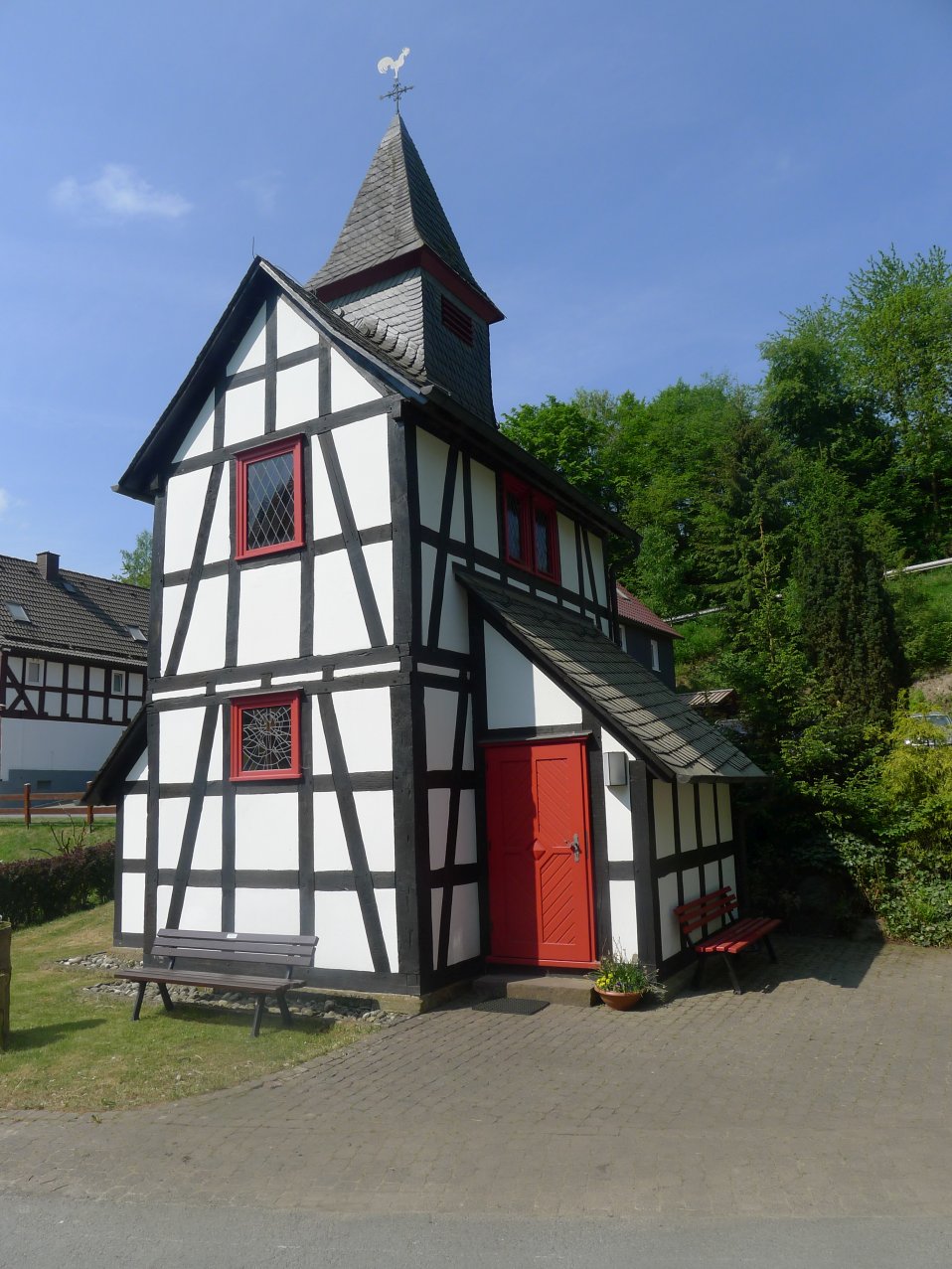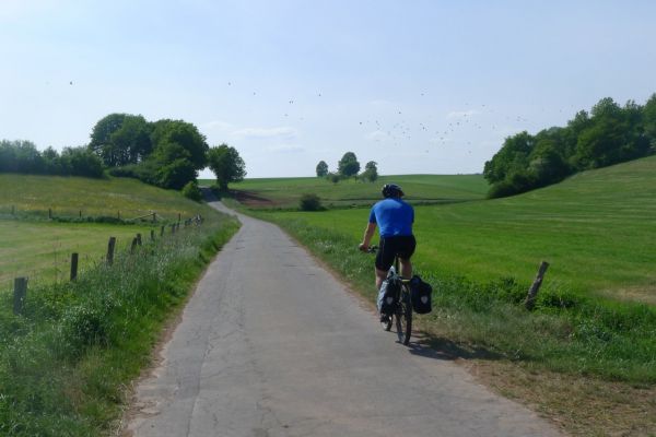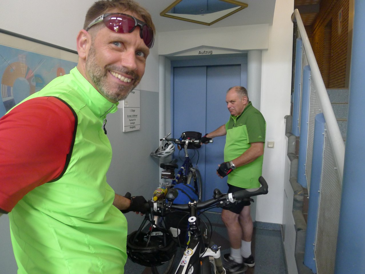 Pünktlich um 9:00 Uhr sassen wir wieder auf dem Rad. Die Wetterprognosen für den 2. Tag waren nicht so gut und wir wollten vor den für den Nachmittag angekündigten Gewittern das Zwischenziel Dillenburg erreichen. Entsprechend wurde von Beginn an auch ein hohes Tempo angeschlagen. Auf weitgehend flacher Strecke durch die Ederauen war das auch kein Problem. Höhepunkt war der Abschnitt von Battenberg nach Hatzfeld auf einer alten Bahnstrecke mit einem Tunnel bei Reddighausen. In Hatzfeld, etwa 30km nach dem Start, zweigte der Weg nach Süden ab. Nun ging es hinein ins Rothaargebirge. Die Sackpfeife haben wir zwar -im wahrsten Sinne des Wortes- links liegen gelassen, aber vor und hinter Lindenhof mussten 2 Anstiege bewältigt werden. In dem Ort steht Hessens kleinste Kirchel, auf rund 25 Quadratmeter bietet sie Platz für 46 Personen. Nach dem Ort war mit über 500m auf der höchste Punkt der Tagesetappe erreicht. Nach der Abfahrt nach Wallau folgte wieder ein langgezogener Anstieg nach Simmersbach. Hier blies uns zudem ein kräftiger Gegenwind entgegen. Es folgte eine 17km lange Abfahrt bis Dillenburg, welches wir vor dem Gewitter erreichten. Erst als wir bei Kaffee und Kuchen sassen prasselte es los. Der Regen war aber nur von kurzer Dauer. Nach einem Stück mit dem Zug bis Wetzlar ging es dann auf die letzten Kilometer nach Vollnkirchen, das wir nach 87 km und 840 Höhenmetern, ebenfalls trocken, erreichten.