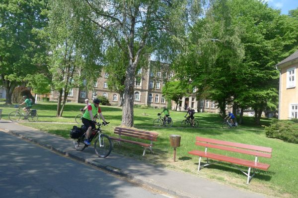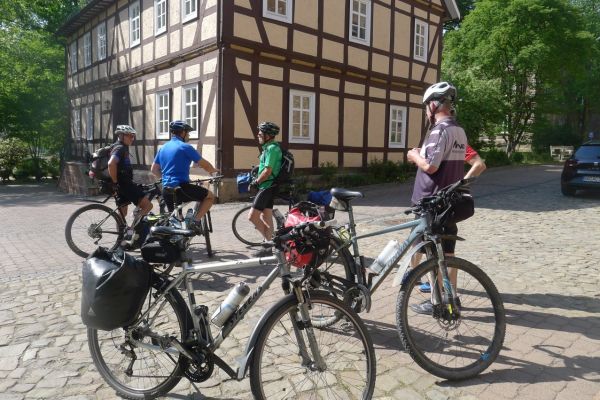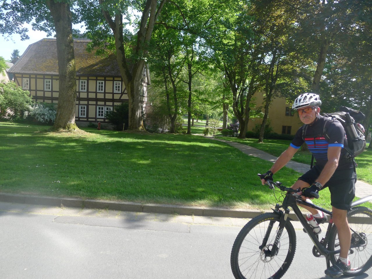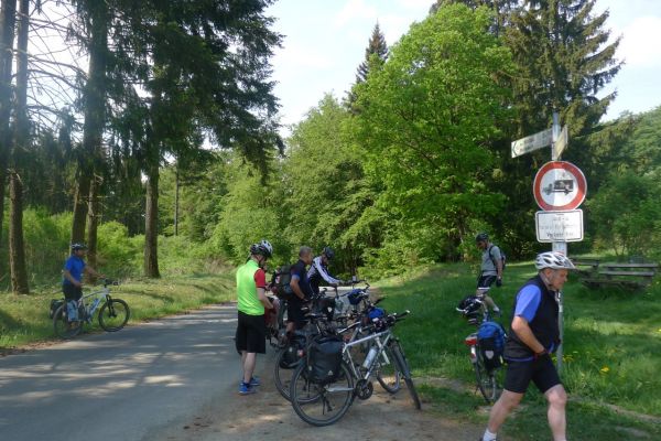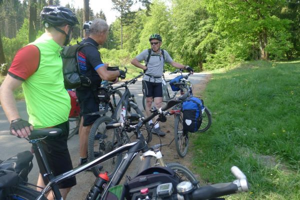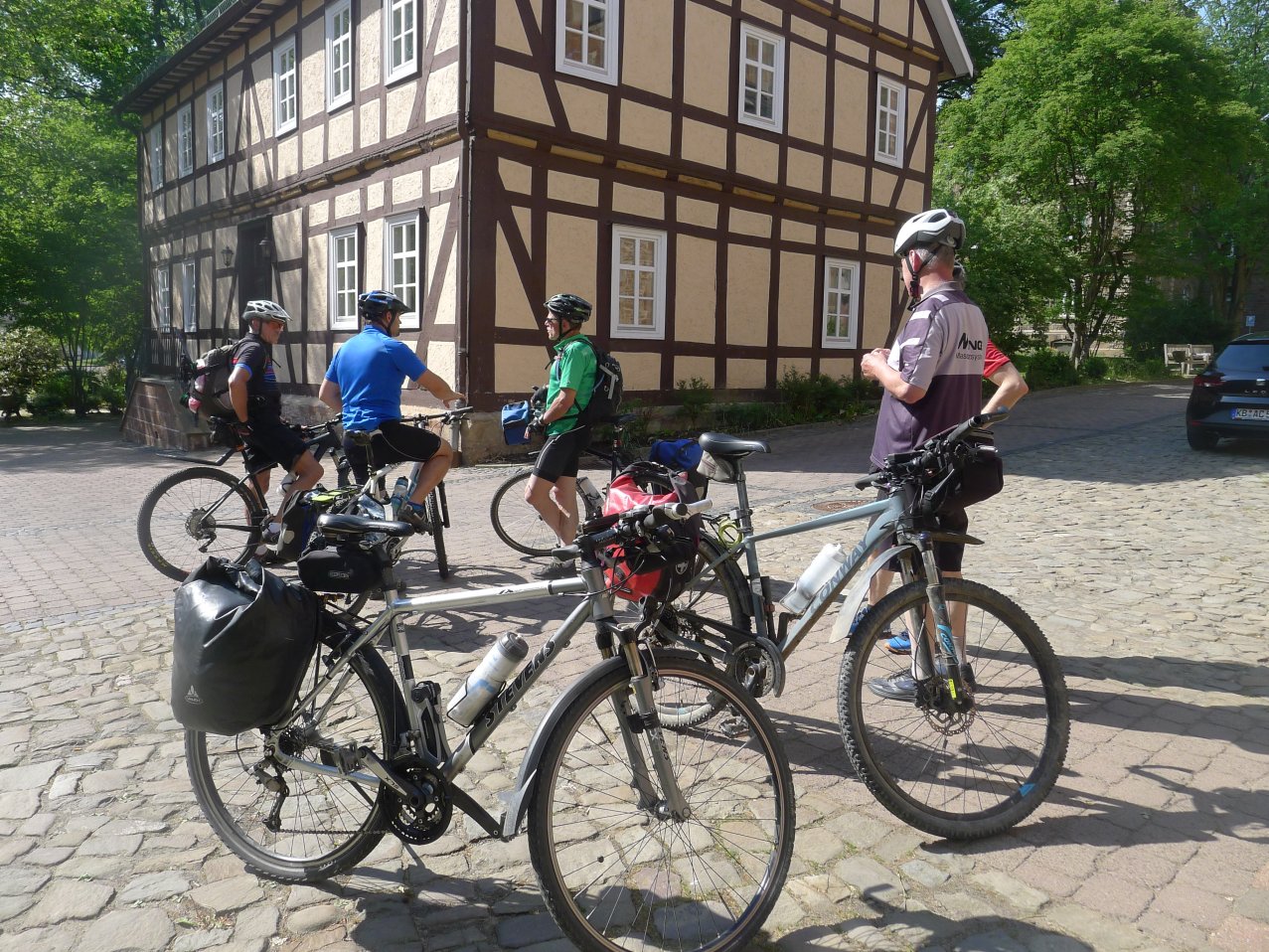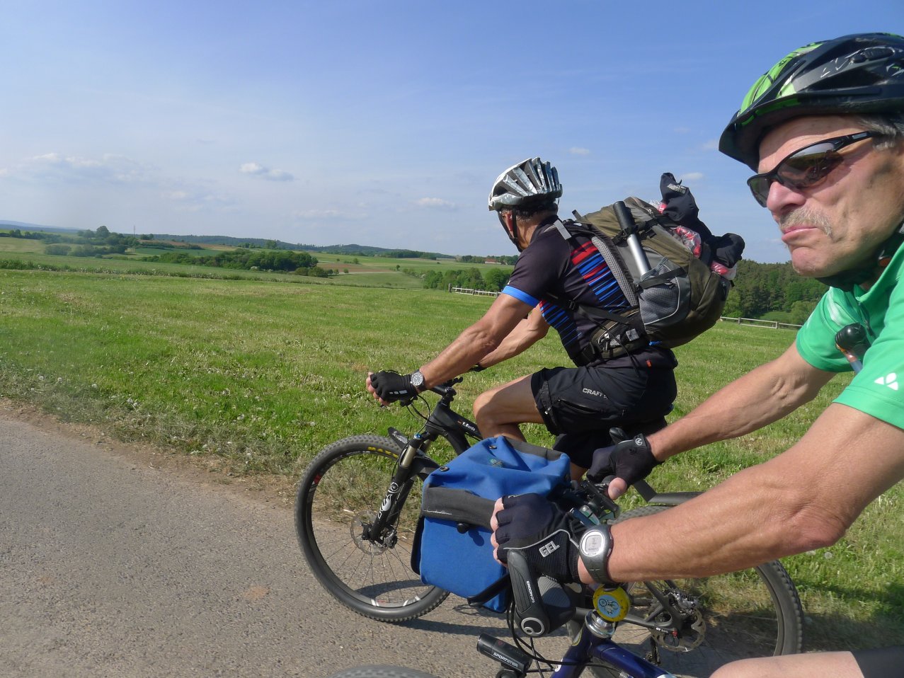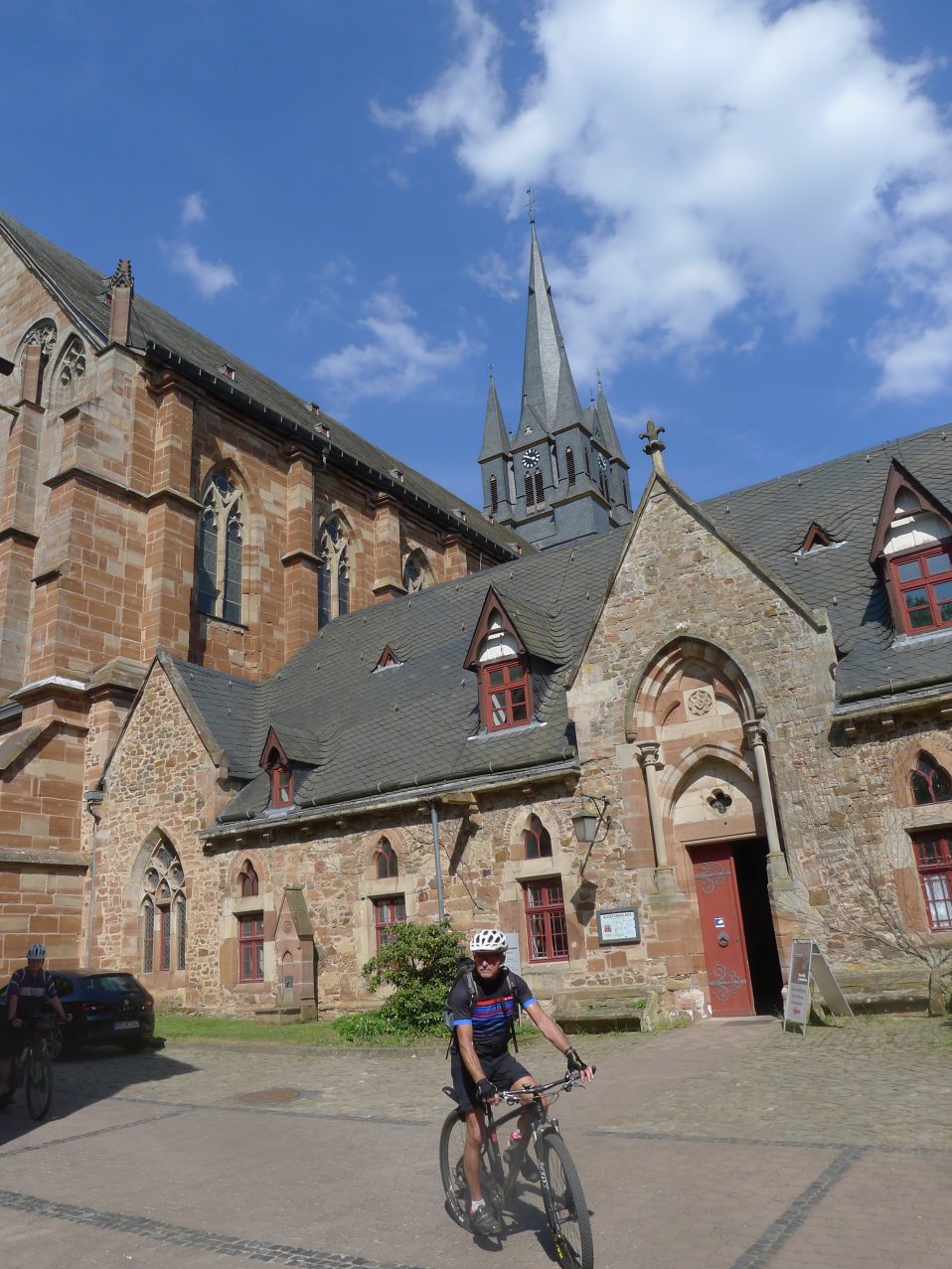 Die Saisoneröffnungstour 2018 am 12./13. Mai führte uns ins nördliche Hessenland. Bei Sonnenschein und bestem Radfahrwetter haben sich die Teilnehmer am Samstag Vormittag am Dorfplatz in Vollnkirchen versammelt. Nach einer Einrollphase an den Giessner Bahnhof folgte die Weiterfahrt mit dem Zug bis zum eigentlichen Startpunkt Borken. Von dort aus ging es zunächst auf dem Hessischen Fernradweg R5 ein Stück durch das Schwälmer Land und dann quer durch den Kellerwald. Hinter Bad Zwesten führte die Strecke durch das Urfftal leicht aber stetig bergauf. Nach einer Rast im Schneewittchendorf Bergfreiheit stand für uns auch gleich eine Bergwertung der ersten Kategorie auf dem Programm, bis zu 16% Steigung auf einem geschotterten Waldweg....... Zum Glück war es nur ein kurzer Stich. Die nächste Steigung liess nicht lange auf sich warten, war mit 4-6% aber deutlich moderater und auf Asphalt wesentlich angenehmer zu fahren. Hinter Armsfeld hatten wir den höchsten Punkt der ersten Etappe erreicht. Es folgte eine lange Abfahrt hinunter zum Zisterzienser Kloster Haina. Der letzte grosse Anstieg führt nach Dörnholzhausen. Von hier bot sich ein Traumhafter Blick ins Eder Bergland und zurück auf die Kellerwaldgipfel. Nach 75 km und 730 Höhenmetern war das ZIel Frankenberg erreicht.