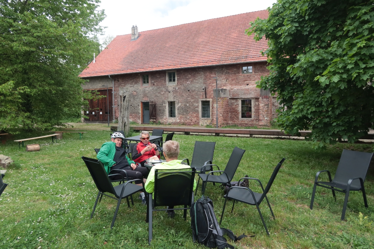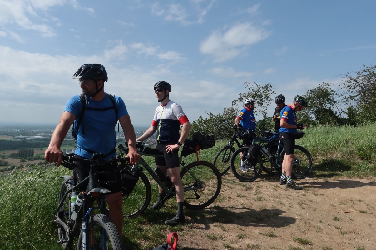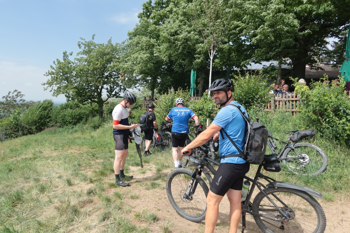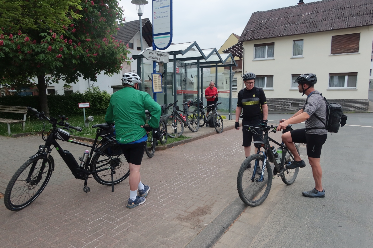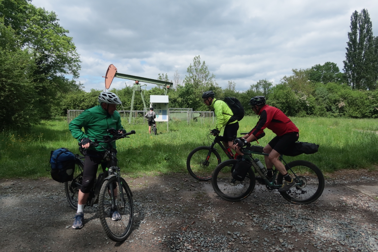 Das verlängerte 1.Mai Wochenende war in diesem Jahr der Termin für die Saisoneröffnungstour, die uns in den Süden Hessens an die Bergstraße und durch das Hessische Ried führte. Nach dem sonnigen und warmen Feiertag war die Wetterprognose für das Wochenende eher durchwachsen und sicherheitshalber die Regenklamotten mit im Gepäck. Nach kurzer Einrollphase zum Bahnhof in Langgöns mussten schon erste Reparaturen vorgenommen werden, Stefan hat sich nen Plattfuß eingefangen. Pünktlich mit dem Einfahren des Zuges war das Rad aber wieder einsatzbereit. In Frankfurt Umstieg in den Regionalexpress nach Darmstadt zusammen mit hunderten HSV und Lilienfans und einer Hundertschaft Bereitschaftspolizei….