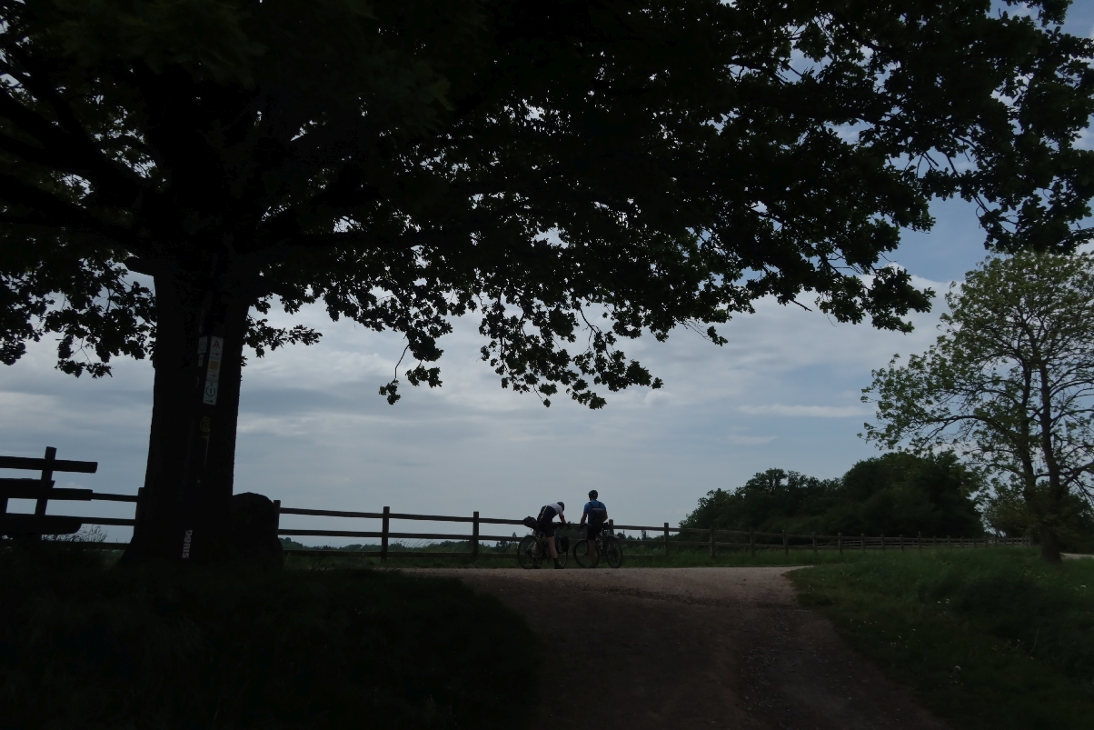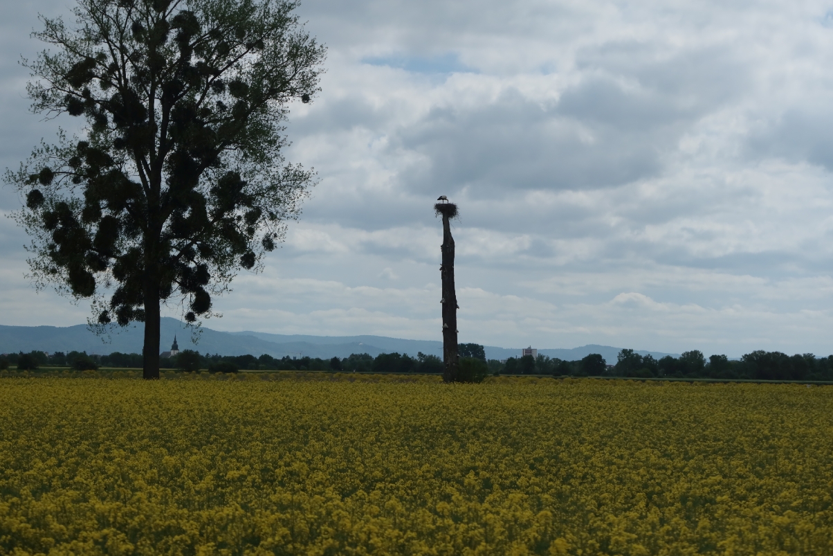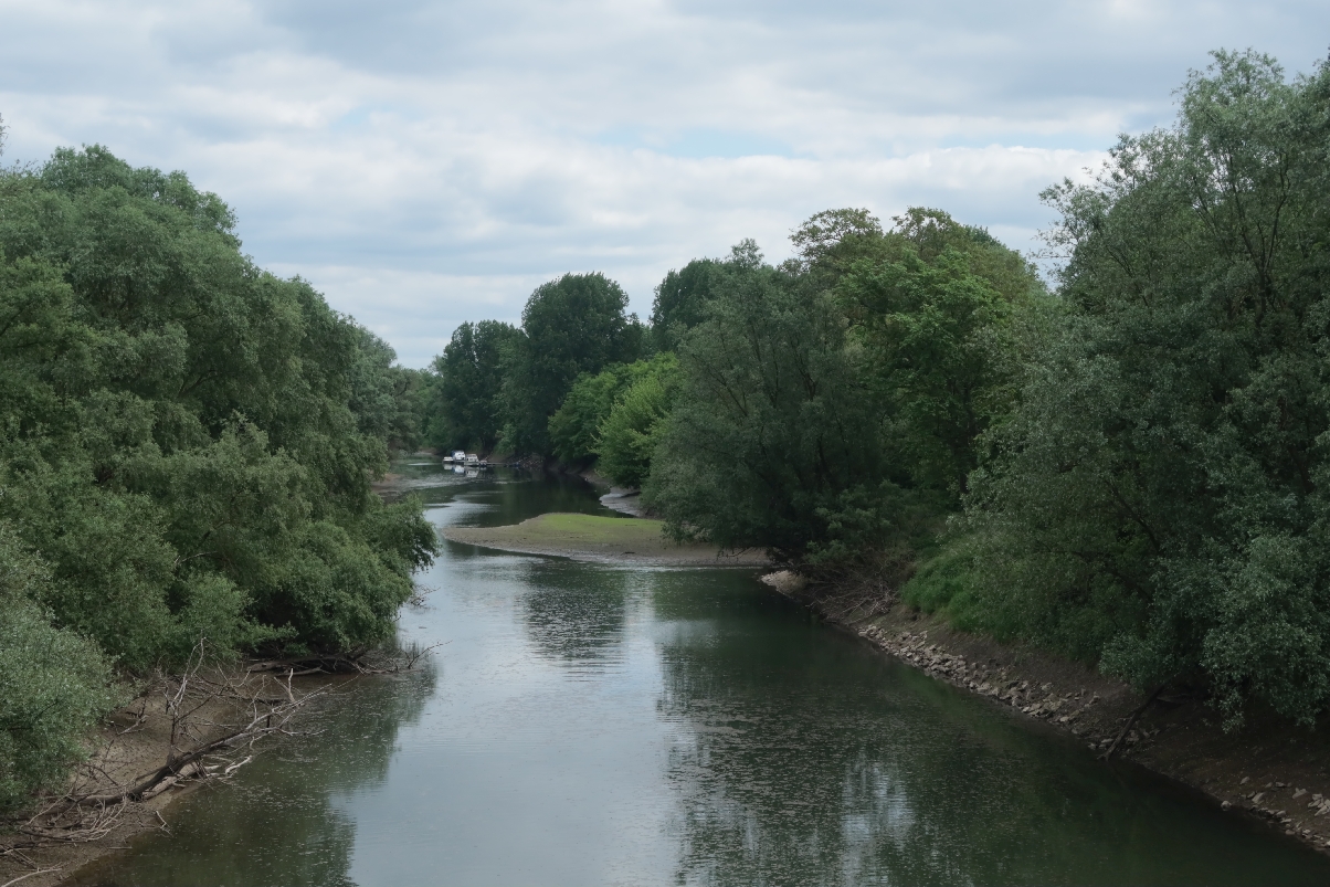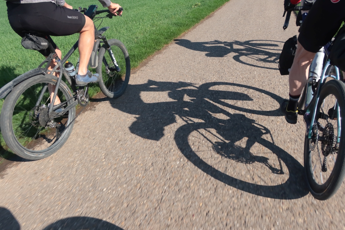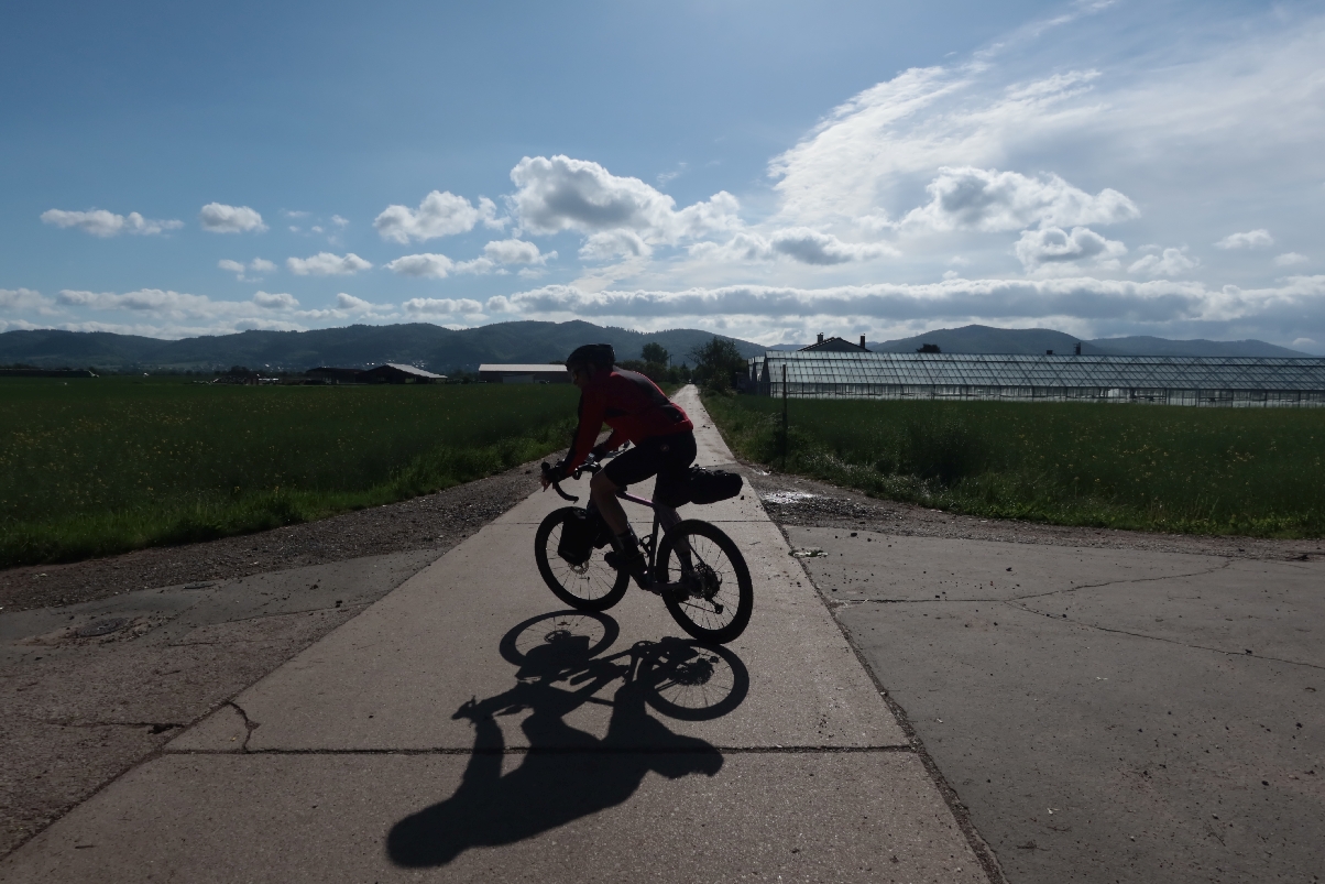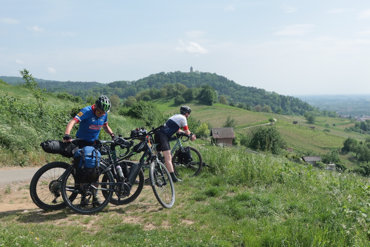 Am nächsten Morgen zum Start der 2. Etappe ist es sonnig, aber deutlich kühler als am gestrigen ersten Tag. Nach einer Runde durch die sehenswerte Altstadt verlassen wir Ladenburg in Richtung Norden. Nach nur wenigen Kilometern ziehen wir die Windstopperjacken drüber. Der Wind hat über Nacht gedreht und bläst uns wieder von vorne entgegen. Auf grünen Planwegen vorbei an Erdbeerfeldern geht es über Heddesheim nach Viernheim. Ab hier folgt eine längere Passage durch den Wald. Der fein geschotterte Untergrund ist ideal für die Gravelbiker im Team, vor allem aber ist es windstill. An Lampertheim vorbei kommen wir bei Bürstadt wieder aus dem Wald heraus. Wir sind wieder im Wind, fahren in nördlicher Richtung durch Biblis und erreichen am stillgelegten Atomkraftwerk den Rhein. Wir fahren aber hinter dem Deich entlang und bekommen den Rhein erst bei Gernsheim zu sehen. Wir folgen dem Fluss ein Stück auf dem Eurovelo15 und fahren am Rheindurchstich entlang eines Altrheinarmes auf Stockstadt zu. Über eine Brücke über den Altrhein kommen wir ins Naturschutzgebiet Kühkopf-Knoblauchsaue. Nach einem kurzen Stopp an der ehemaligen Erdölpumpe erreichen wir das Hofgut Guntershausen, wo wir eine Mittagspause einlegen. Leider lassen die frischen Temperaturen kein längeres Verweilen an dem idyllischen Ort zu. Wir verlassen die Altrheininsel wieder und fahren über Riedstadt-Goddelau auf Griesheim zu. Hinter dem August-Euler Flughafen, dem ältesten Flughafen Deutschlands, sind es nur noch wenige Kilometer bis zum Ziel am Hauptbahnhof in Darmstadt.