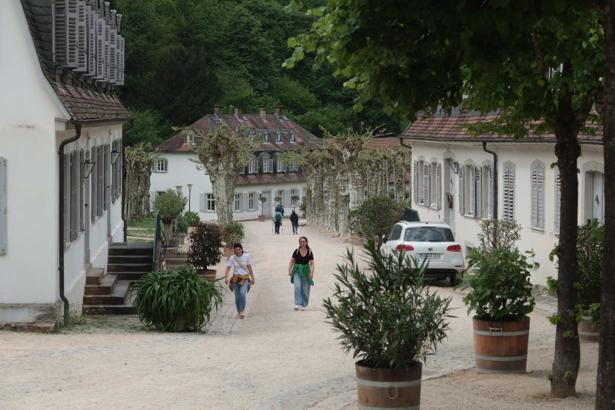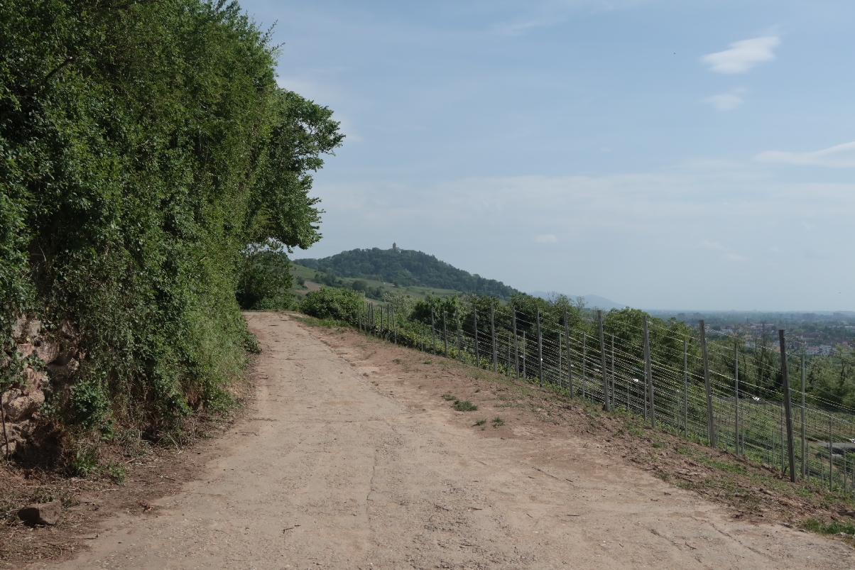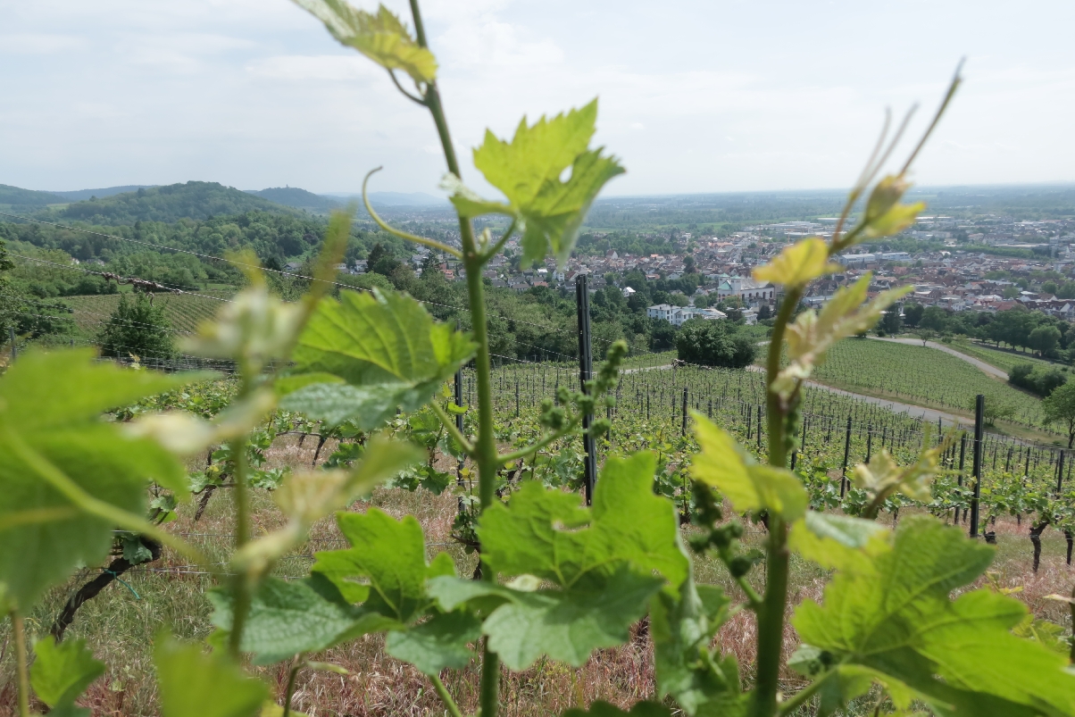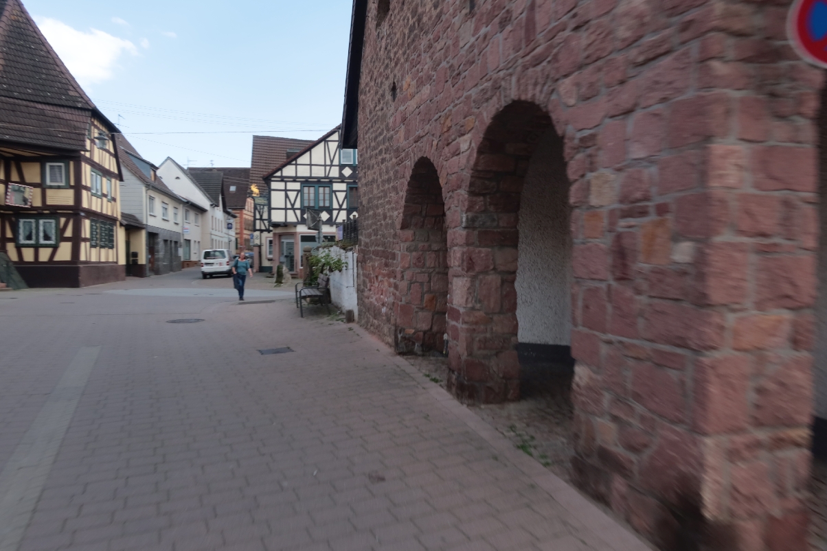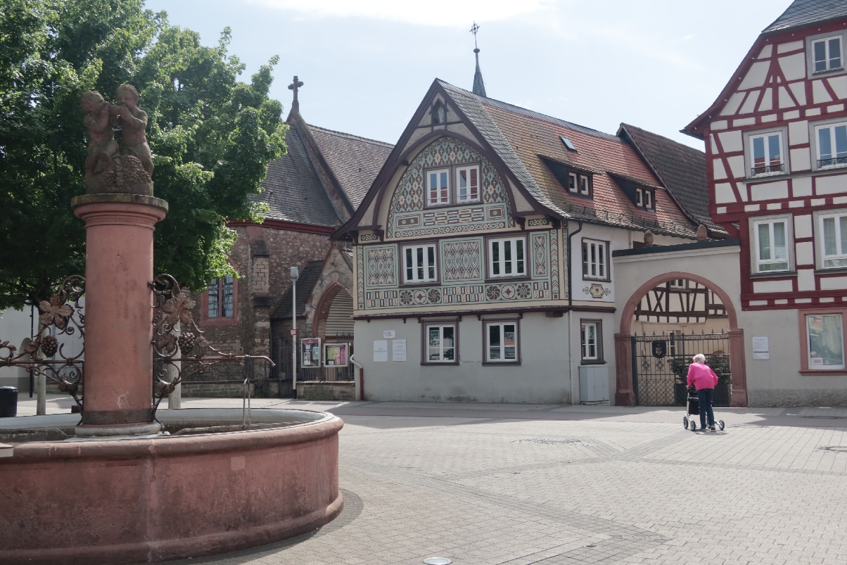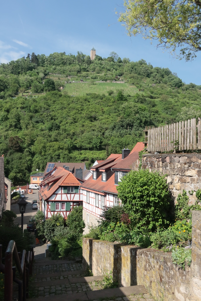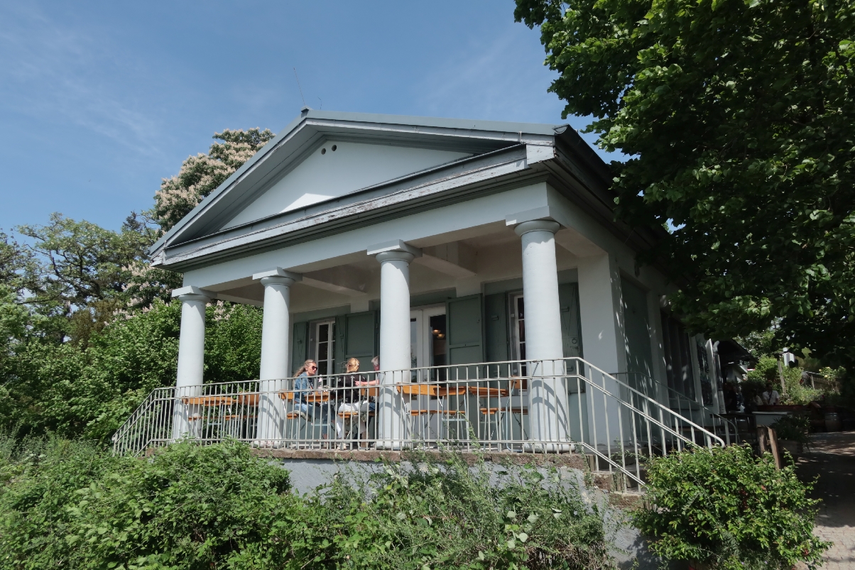Vor dem Bahnhof wartet bereits Jan und im dezimierten Team geht es los. Erstmal quer durch die Stadt, über den zentralen Luisenplatz am Lange Lui und dem Schloss vorbei zum Woog am östlichen Stadtrand. In einem grossen Bogen führt der Weg durch den Darmstädter Stadtwald in Richtung Süden nach Eberstadt. Bei Malchen ist der „Einstieg“ zur Bergstraße erreicht. Über Seeheim-Jugenheim, Alsbach-Hähnlein, Zwingenberg geht nach Auerbach, wo wir von der Radroute Bergstraße abzweigen. Wir fahren durch das Fürstenlager, einer ländlichen Sommerresidenz des Hauses Hessen-Darmstadt aus dem 18. Jahrhundert. Am Ende des idyllischen Gebäudeemsembles folgt die erste Bergwertung, die mit einem Traumblick auf die Weinberge und Hügel der Bergstraße belohnt wird. Am Kirchberghäuschen, einem Lusttempel der feinen Bensheimer Gesellschaft aus dem 19. Jahrhundert machen wir Mittagsrast. Hoch oben in den Weinbergen ist der Blick ist phantastisch, unter uns Bensheim, dahinter die Starkenburg über Heppenheim und in der Ferne sind im Dunst schemenhaft die Silhouette des Mannheimer Fernsehturms, die Fabriktürme der BASF in Ludwigshafen und das AKW Biblis zu sehen. Nur der Wind bläst uns heftig um die Ohren. Gestärkt mit einer Portion Odenwälder Kochkäse geht es durch den Weinberg steil hinunter nach Bensheim, einmal quer durch die quirlige Innenstadt und am anderen Ende wieder hinauf in die Weinberge. Wir umrunden den Hemsberg und haben erneut einen grandiosen Blick auf die Starkenburg, die Hügel des Odenwaldes und die Rheinebene. Am Ende der 2. Bergwertung folgt die Abfahrt in die Kreisstadt Heppenheim. Wir statten dem mittelalterlichen Markplatz und „Dom“ einen Besuch ab und setzen unsere Fahrt auf der Bergstaße fort. Kurz hinter Heppenheim passieren wir die hessische Landesgrenze. Über Laudenbach und Hemsbach gelangen wir nach Weinheim, wo in der belebten Altstadt eine Eisdiele für Erfrischung sorgt. Lützelsachsen, Leutershausen und Schriesheim sind die nächsten Orte, die wir durchfahren. Wir verlassen die Bergstraße und fahren in westlicher Richtung auf das Etappenziel Ladenburg am Neckar zu. Der Wind bläst uns direkt ins Gesicht….