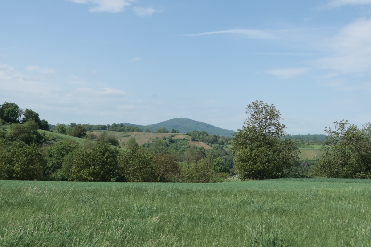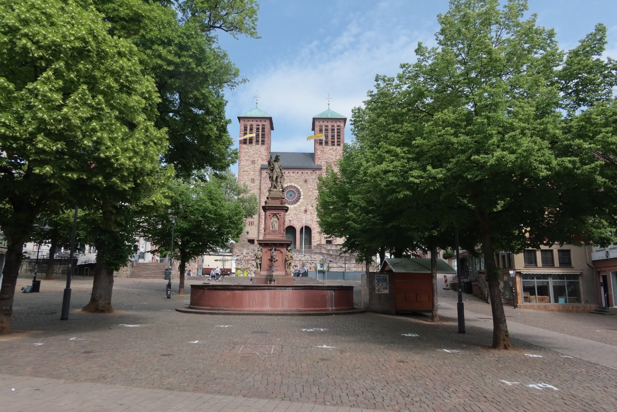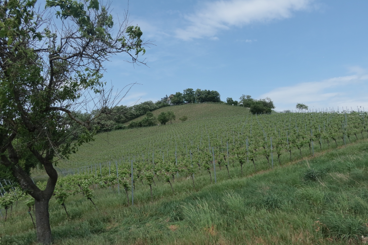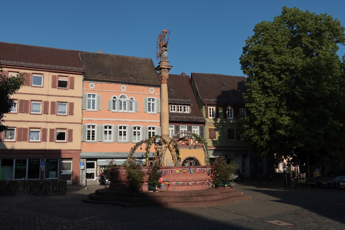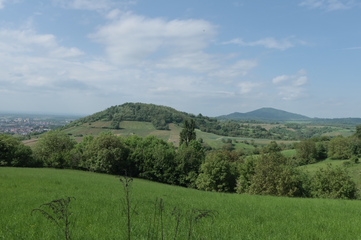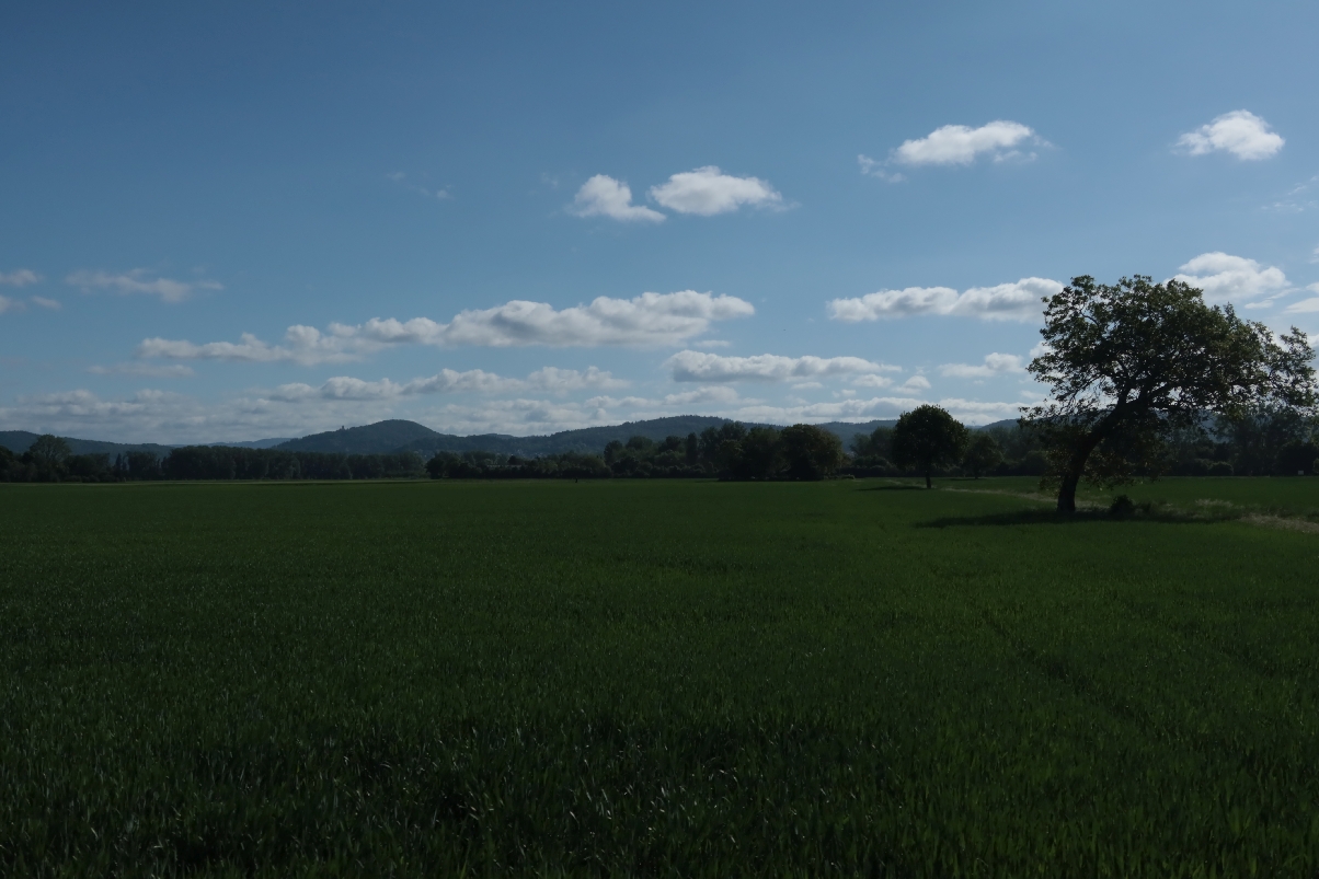 Vor dem Bahnhof wartet bereits Jan und im dezimierten Team geht es los. Erstmal quer durch die Stadt, über den zentralen Luisenplatz am Lange Lui und dem Schloss vorbei zum Woog am östlichen Stadtrand. In einem grossen Bogen führt der Weg durch den Darmstädter Stadtwald in Richtung Süden nach Eberstadt. Bei Malchen ist der „Einstieg“ zur Bergstraße erreicht. Über Seeheim-Jugenheim, Alsbach-Hähnlein, Zwingenberg geht nach Auerbach, wo wir von der Radroute Bergstraße abzweigen. Wir fahren durch das Fürstenlager, einer ländlichen Sommerresidenz des Hauses Hessen-Darmstadt aus dem 18. Jahrhundert. Am Ende des idyllischen Gebäudeemsembles folgt die erste Bergwertung, die mit einem Traumblick auf die Weinberge und Hügel der Bergstraße belohnt wird. Am Kirchberghäuschen, einem Lusttempel der feinen Bensheimer Gesellschaft aus dem 19. Jahrhundert machen wir Mittagsrast. Hoch oben in den Weinbergen ist der Blick ist phantastisch, unter uns Bensheim, dahinter die Starkenburg über Heppenheim und in der Ferne sind im Dunst schemenhaft die Silhouette des Mannheimer Fernsehturms, die Fabriktürme der BASF in Ludwigshafen und das AKW Biblis zu sehen. Nur der Wind bläst uns heftig um die Ohren. Gestärkt mit einer Portion Odenwälder Kochkäse geht es durch den Weinberg steil hinunter nach Bensheim, einmal quer durch die quirlige Innenstadt und am anderen Ende wieder hinauf in die Weinberge. Wir umrunden den Hemsberg und haben erneut einen grandiosen Blick auf die Starkenburg, die Hügel des Odenwaldes und die Rheinebene. Am Ende der 2. Bergwertung folgt die Abfahrt in die Kreisstadt Heppenheim. Wir statten dem mittelalterlichen Markplatz und „Dom“ einen Besuch ab und setzen unsere Fahrt auf der Bergstaße fort. Kurz hinter Heppenheim passieren wir die hessische Landesgrenze. Über Laudenbach und Hemsbach gelangen wir nach Weinheim, wo in der belebten Altstadt eine Eisdiele für Erfrischung sorgt. Lützelsachsen, Leutershausen und Schriesheim sind die nächsten Orte, die wir durchfahren. Wir verlassen die Bergstraße und fahren in westlicher Richtung auf das Etappenziel Ladenburg am Neckar zu. Der Wind bläst uns direkt ins Gesicht….