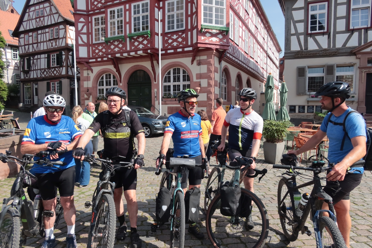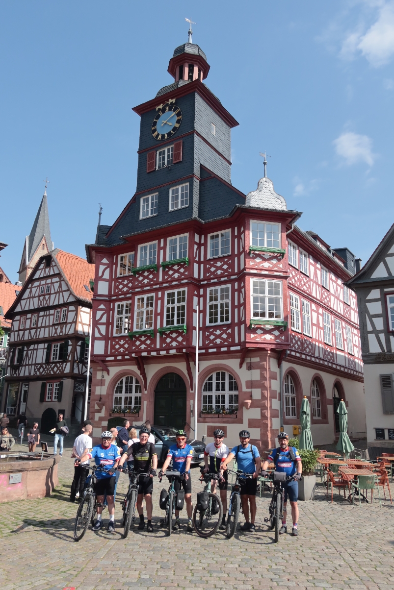 Die Eröffnungsradtour 2025 führte uns in den Süden unseres schönen Bundeslandes. Start war in Darmstadt. Die erste Etappe führte entlang des hessischen Teils der Bergstraße über Seeheim-Jugenheim, Zwingenberg, Auerbach, Bensheim, bis zu Landesgrenze kurz hinter Heppenheim, und weiter auf dem baden-württembergischen Teil der Bergstrasse über Hemsbach, Weinheim, Leutershausen, Schriesheim bis zum Etappenziel Ladenburg. Die Strecke am 2. Tag führte von Ladenburg über Viernheim, Lampertheim, Bürstadtdurch das Hessische Ried bis zum Rhein hinter Biblis, sowie weiter über Gernsheim, Stockstadt, Riedstadt, Griesheim zurück nach Darmstadt. Insgesamt wurden 162km zurückgelegt .
