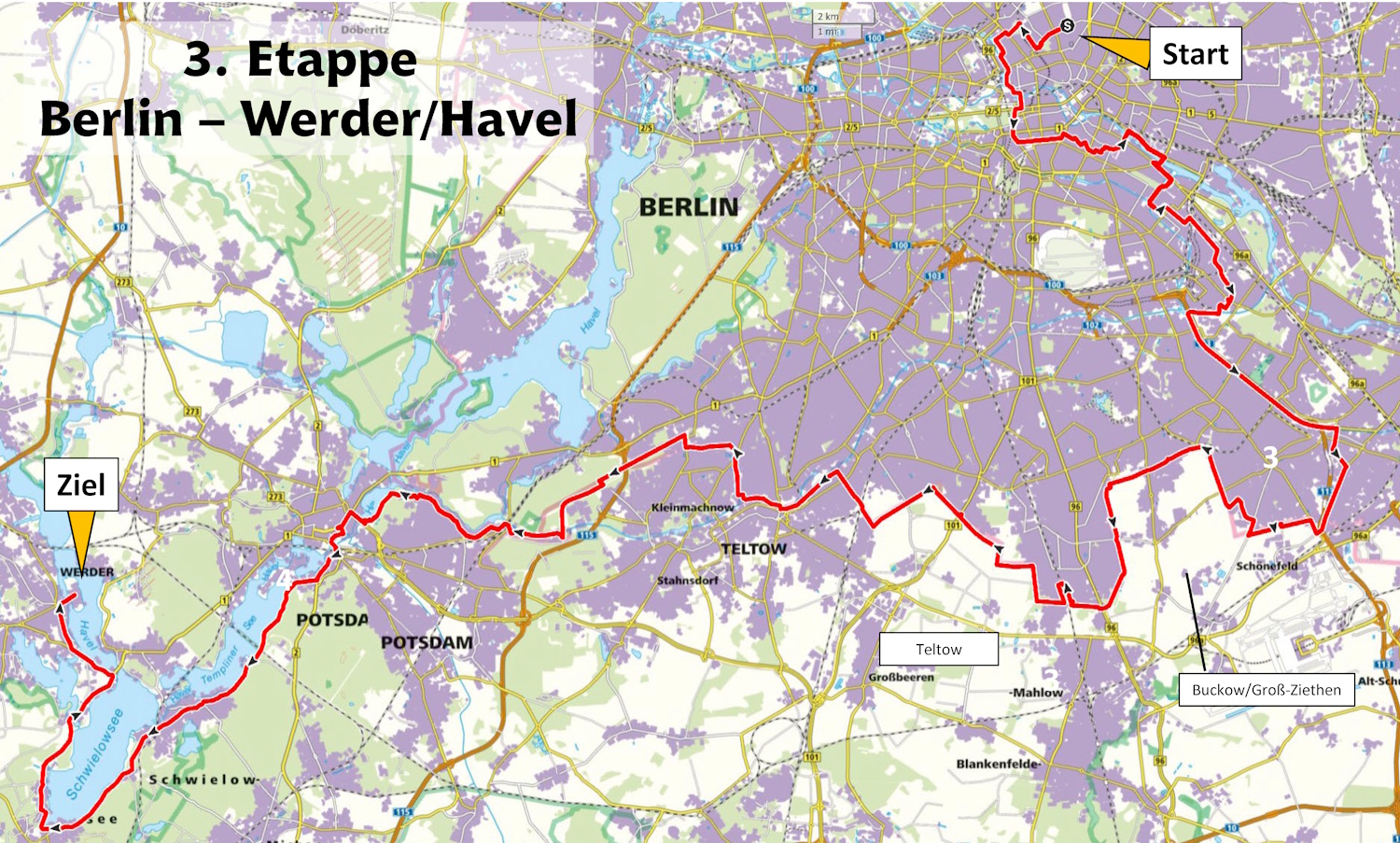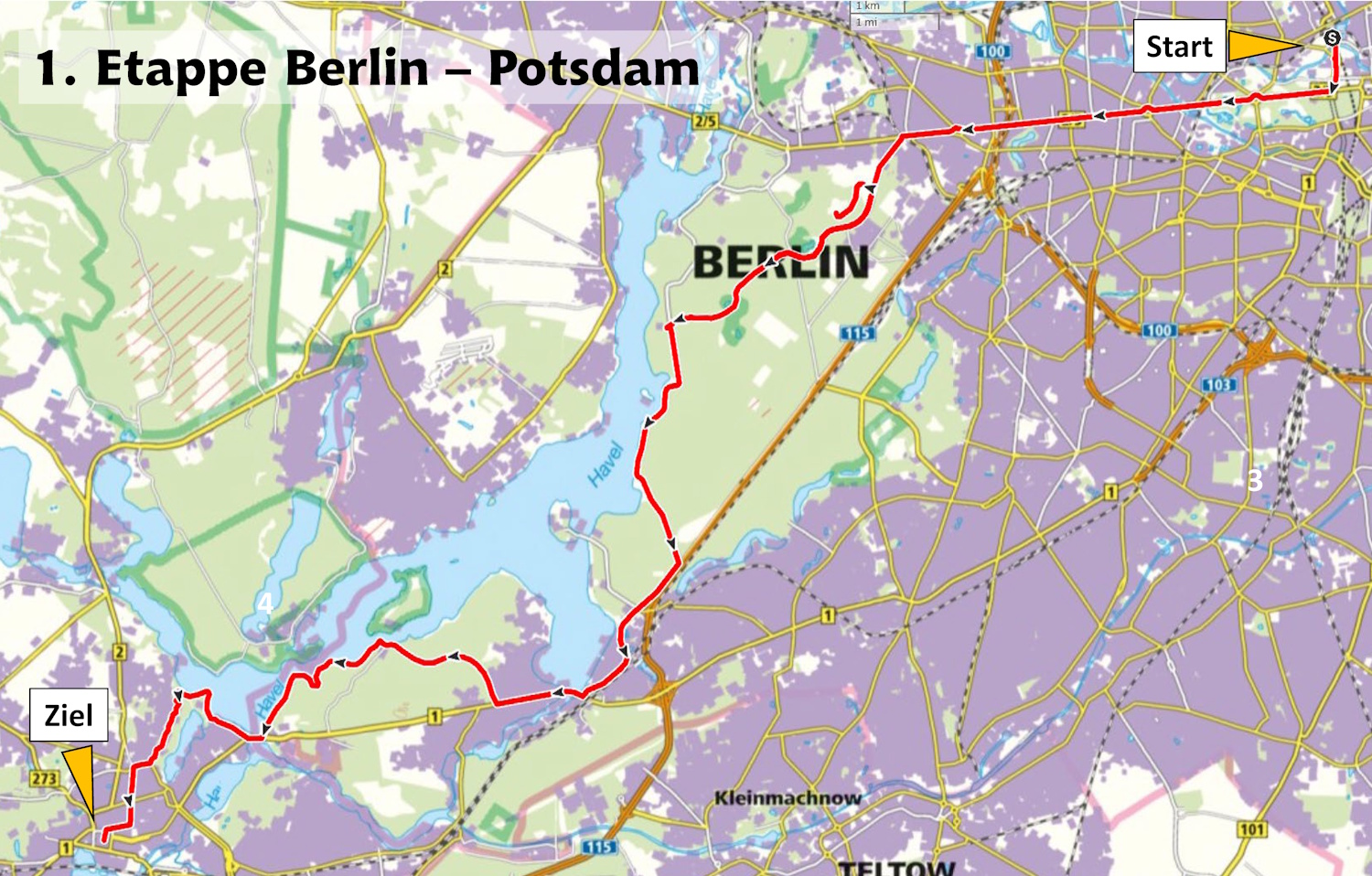 Etappenorte: Potsdam, Berlin, Werder/Havel