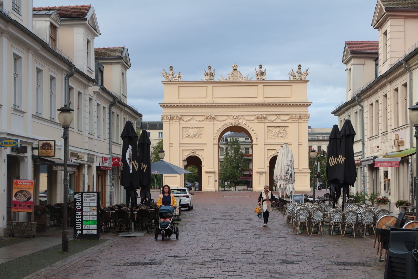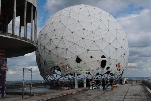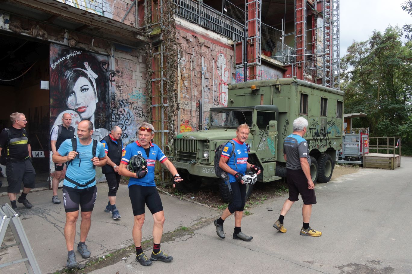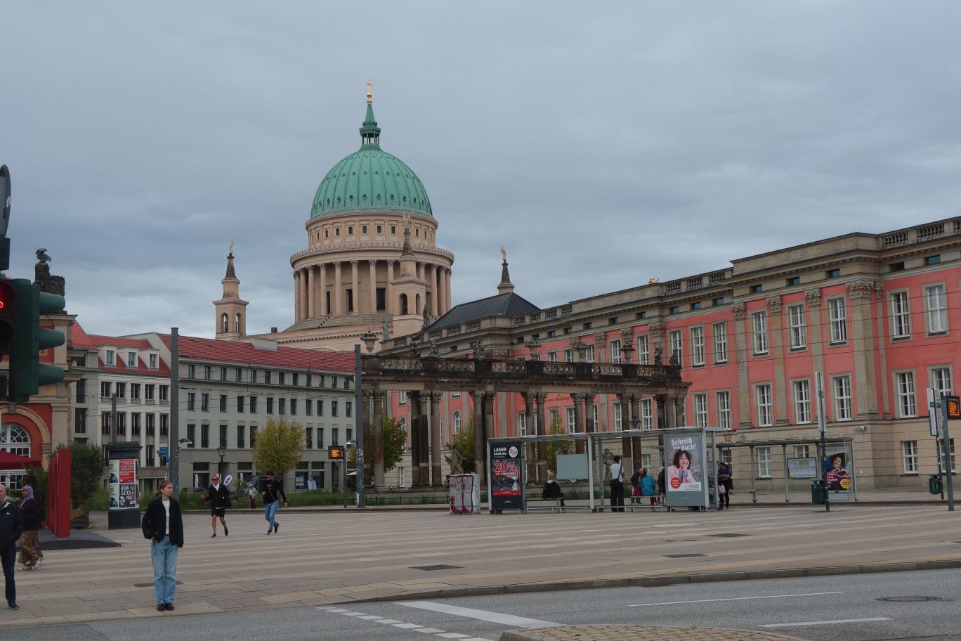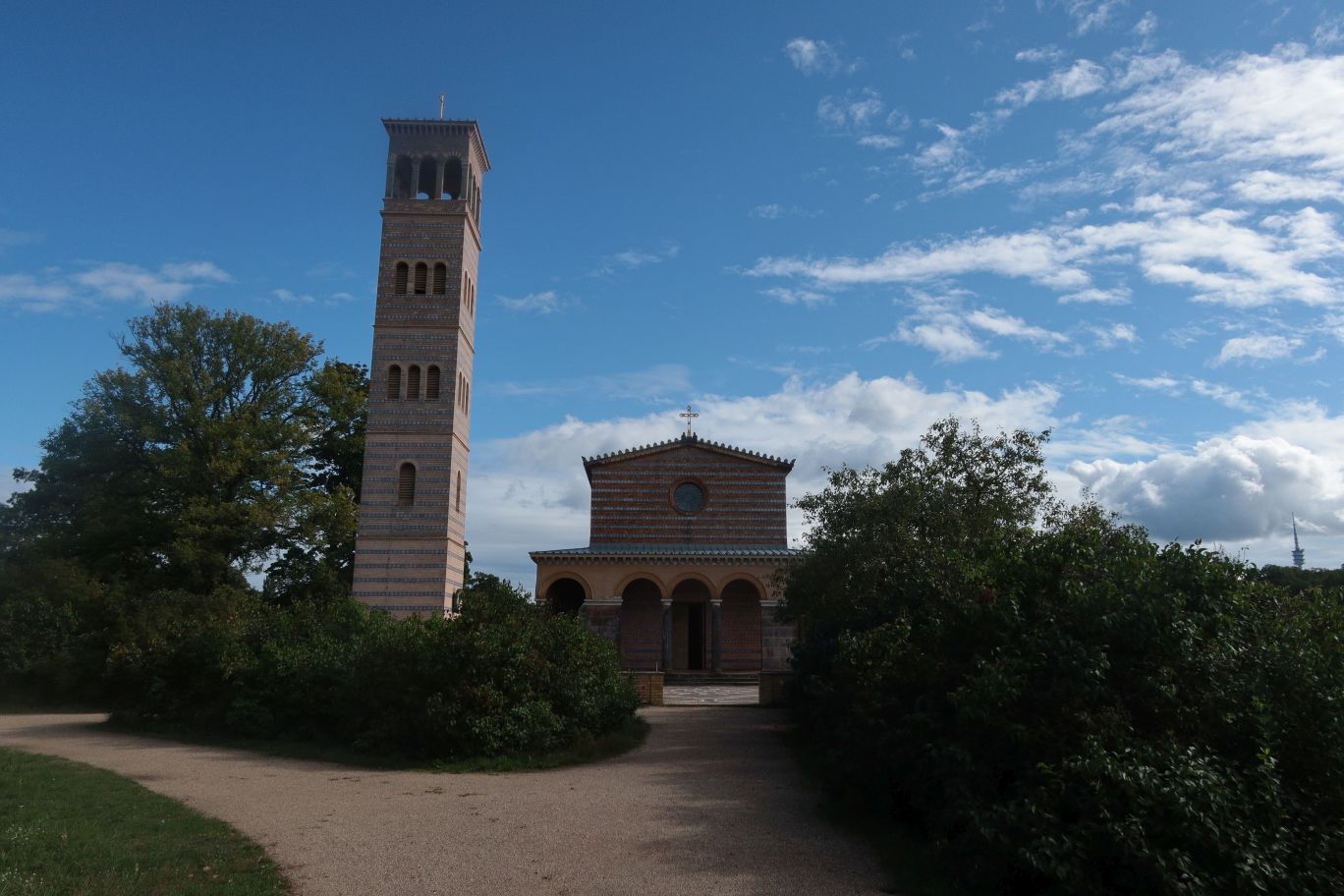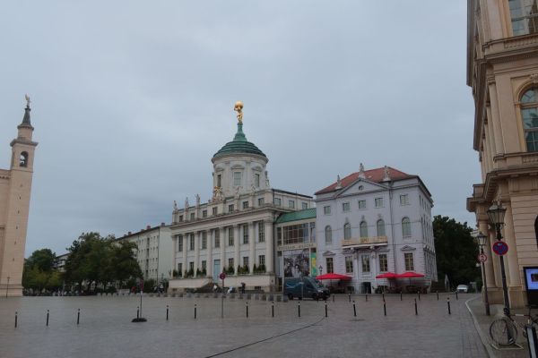 Ein Abstecher führte uns hinauf auf den Teufelsberg. Der 120m hohe Trümmerberg mit der alten Radarstation auf dem Gipfel, zweithöchste Erhebung im Stadtgebiet von Berlin, war dann auch die erste Bergwertung des Tages und brachte unseren Berliner Kollegen gleich schon ordentlich außer Puste 😊 Tja, wer mit Gipfelstürmer unterwegs ist, muss immer auch da mit Bergen rechnen, wo man sie am wenigsten vermutet. Von der Plattform der Radarkuppeln bot sich ein 360° Blick über ganz Berlin. Ein Besuch des kleinen Alliertenmuseums rundete die „Lost-Place Exkursion“ auf dem Teufelsberg ab. Weiter ging es durch quer durch den Grunewald. Bis zum Grunewaldturm waren nochmal zwei kurze aber steile Rampen zu bewältigen. Von wegen Berlin ist flach, die Steigungsprozente lagen im zweistelligen Bereich. Entlang breiter Alleen führte der Weg nun nach Süden parallel zur Havel bis zum Wannsee. Vorbei an prächtigen Villen, die die Uferpromenade säumten steuerten wir auf die Pfaueninsel zu, liessen die aber links (bzw. rechts) liegen und fuhren weiter zur Stadtgrenze Berlins. An der Glienickerbrücke, wo früher Spione ausgetauscht wurden, verabschiedeten wir uns von unserem Gastradler Stefan und folgten nun einem ersten Stück Mauerweg bis zum Schloss Cäcilienhof, Tagungsort der Potsdamer Konferenz 1945. Von dort aus gelangten wir über das Nauener Tor in die Altstadt von Potsdam. Vorbei am Holländischen Viertel, Mitte des 18. Jhd. unter „Soldatenkönig“ Friedrich Wilhelm I im Zuge der Stadterweiterung nach dem Vorbild holländischer Backsteinhäuser errichtet, war es nur noch ein kurzer Weg zu unserer Unterkunft am Grossen Waisenhaus. Gerade noch rechtzeitig bevor ein Gewitter aufzog.