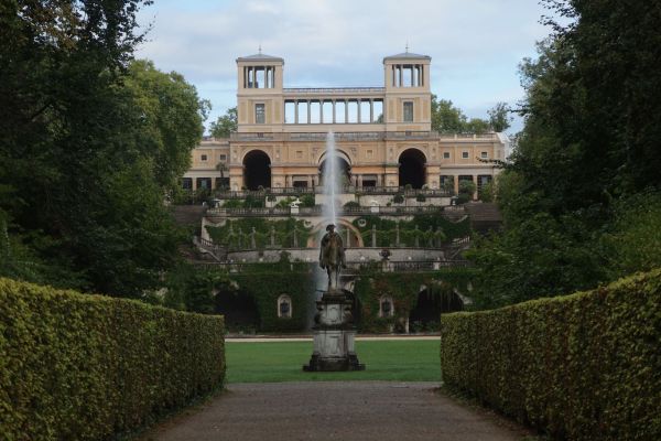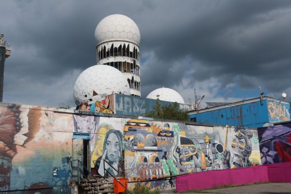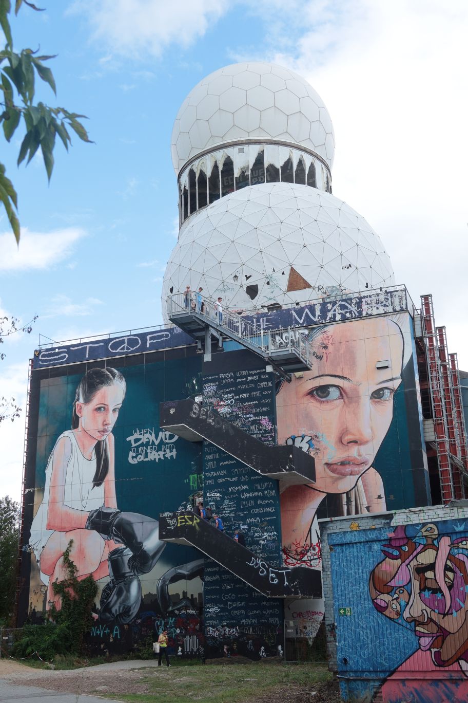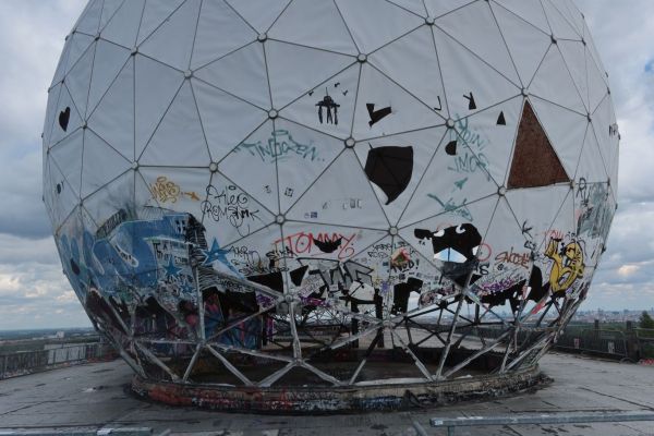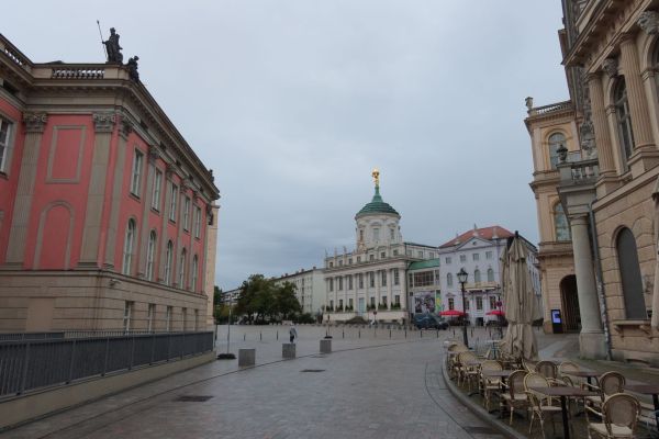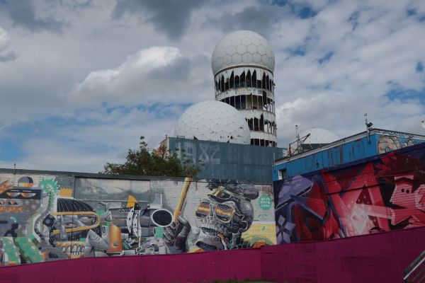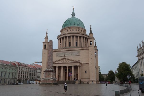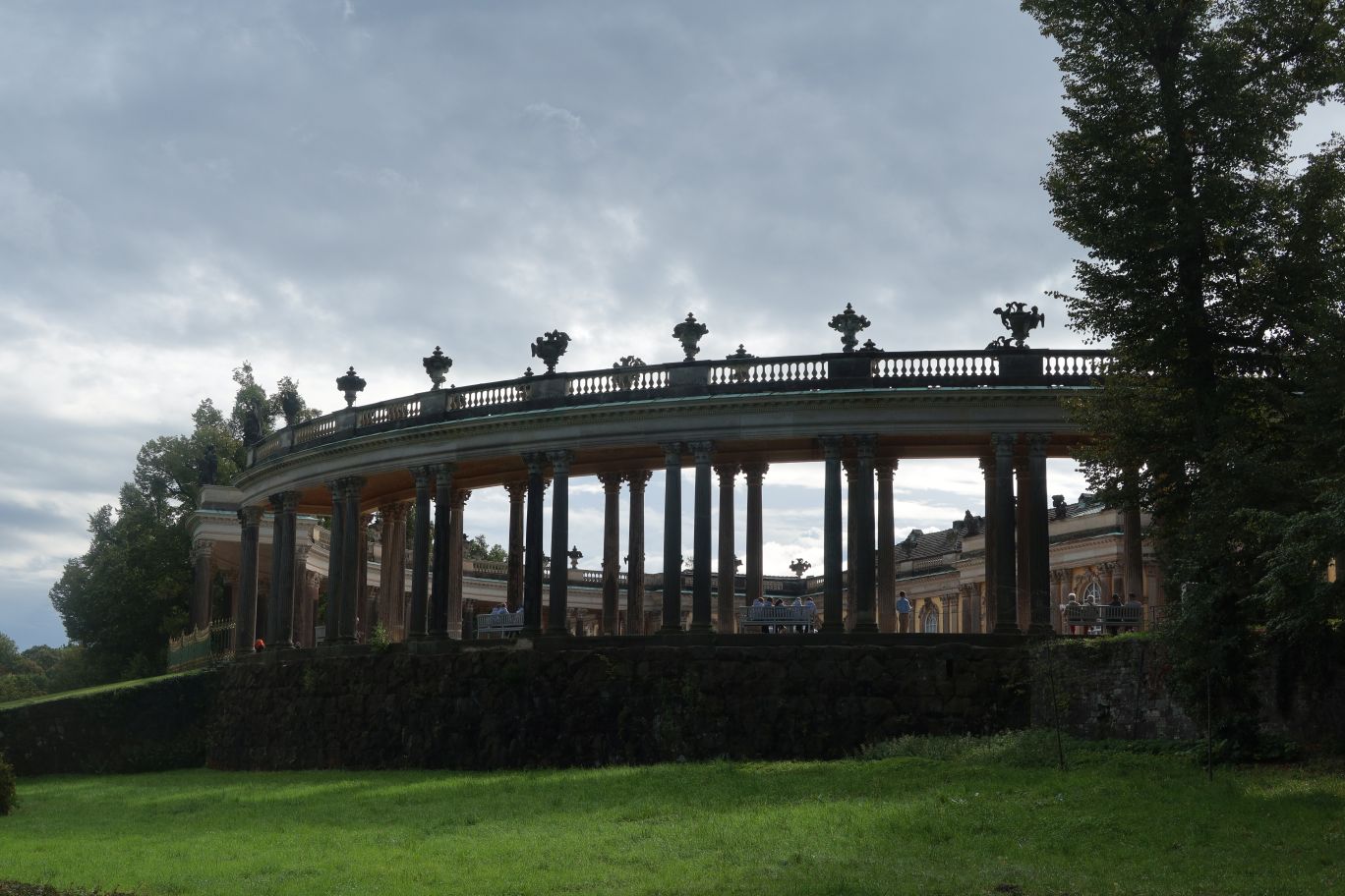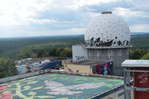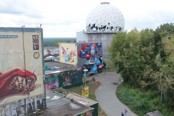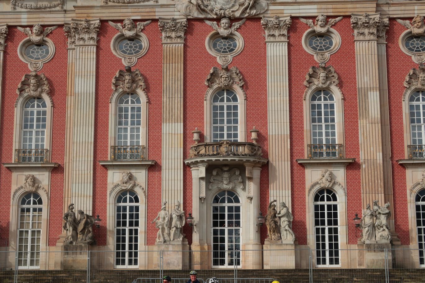 Ein Abstecher führte uns hinauf auf den Teufelsberg. Der 120m hohe Trümmerberg mit der alten Radarstation auf dem Gipfel, zweithöchste Erhebung im Stadtgebiet von Berlin, war dann auch die erste Bergwertung des Tages und brachte unseren Berliner Kollegen gleich schon ordentlich außer Puste 😊 Tja, wer mit Gipfelstürmer unterwegs ist, muss immer auch da mit Bergen rechnen, wo man sie am wenigsten vermutet. Von der Plattform der Radarkuppeln bot sich ein 360° Blick über ganz Berlin. Ein Besuch des kleinen Alliertenmuseums rundete die „Lost-Place Exkursion“ auf dem Teufelsberg ab. Weiter ging es durch quer durch den Grunewald. Bis zum Grunewaldturm waren nochmal zwei kurze aber steile Rampen zu bewältigen. Von wegen Berlin ist flach, die Steigungsprozente lagen im zweistelligen Bereich. Entlang breiter Alleen führte der Weg nun nach Süden parallel zur Havel bis zum Wannsee. Vorbei an prächtigen Villen, die die Uferpromenade säumten steuerten wir auf die Pfaueninsel zu, liessen die aber links (bzw. rechts) liegen und fuhren weiter zur Stadtgrenze Berlins. An der Glienickerbrücke, wo früher Spione ausgetauscht wurden, verabschiedeten wir uns von unserem Gastradler Stefan und folgten nun einem ersten Stück Mauerweg bis zum Schloss Cäcilienhof, Tagungsort der Potsdamer Konferenz 1945. Von dort aus gelangten wir über das Nauener Tor in die Altstadt von Potsdam. Vorbei am Holländischen Viertel, Mitte des 18. Jhd. unter „Soldatenkönig“ Friedrich Wilhelm I im Zuge der Stadterweiterung nach dem Vorbild holländischer Backsteinhäuser errichtet, war es nur noch ein kurzer Weg zu unserer Unterkunft am Grossen Waisenhaus. Gerade noch rechtzeitig bevor ein Gewitter aufzog.