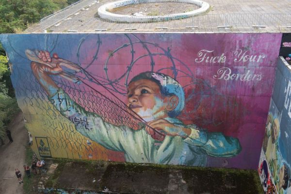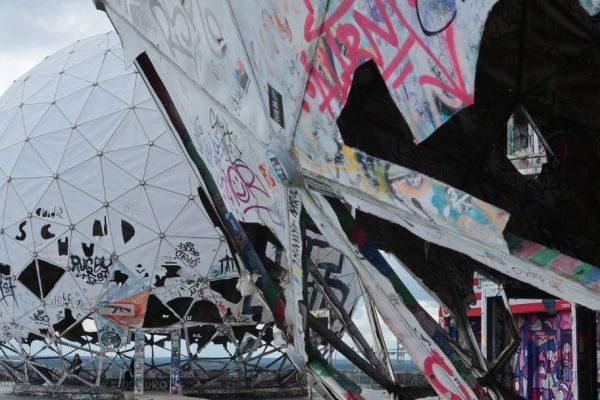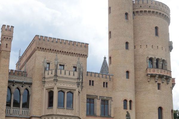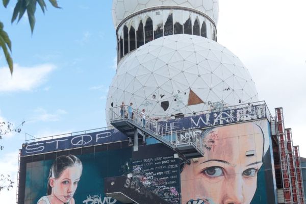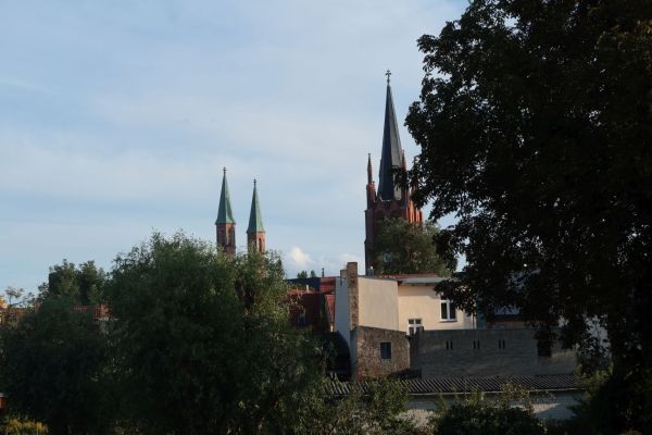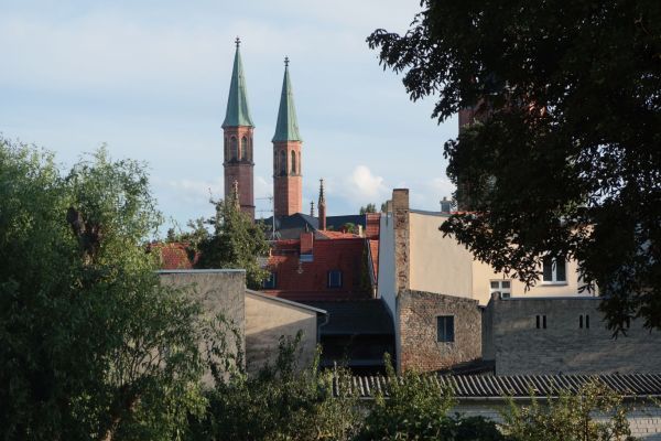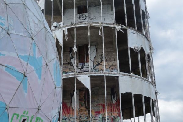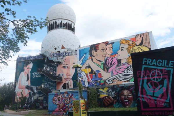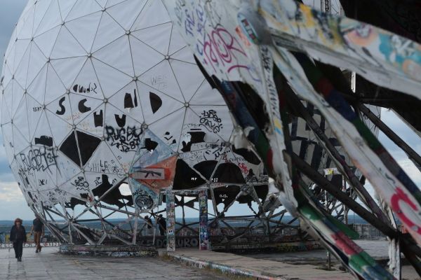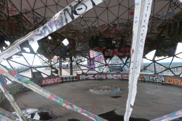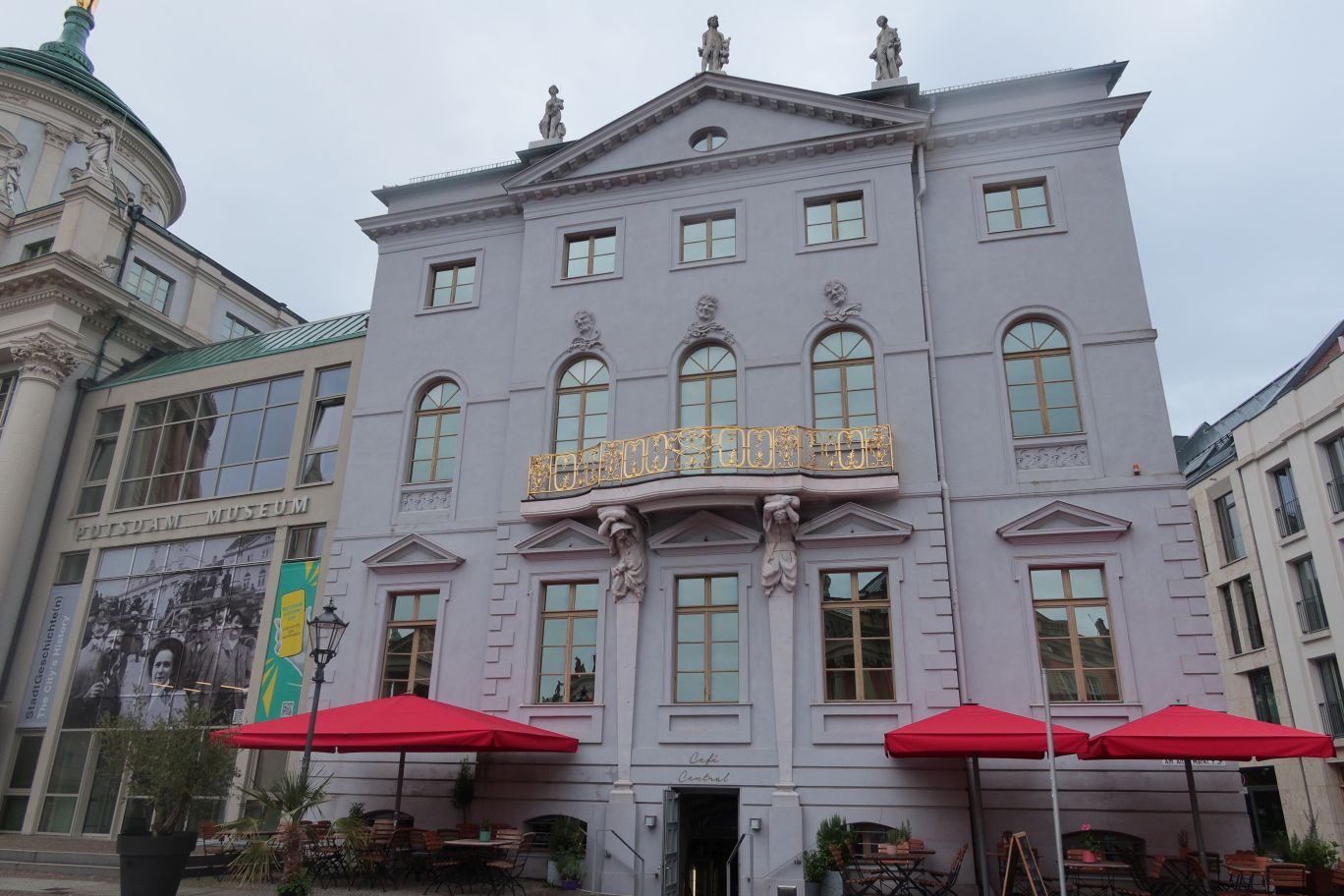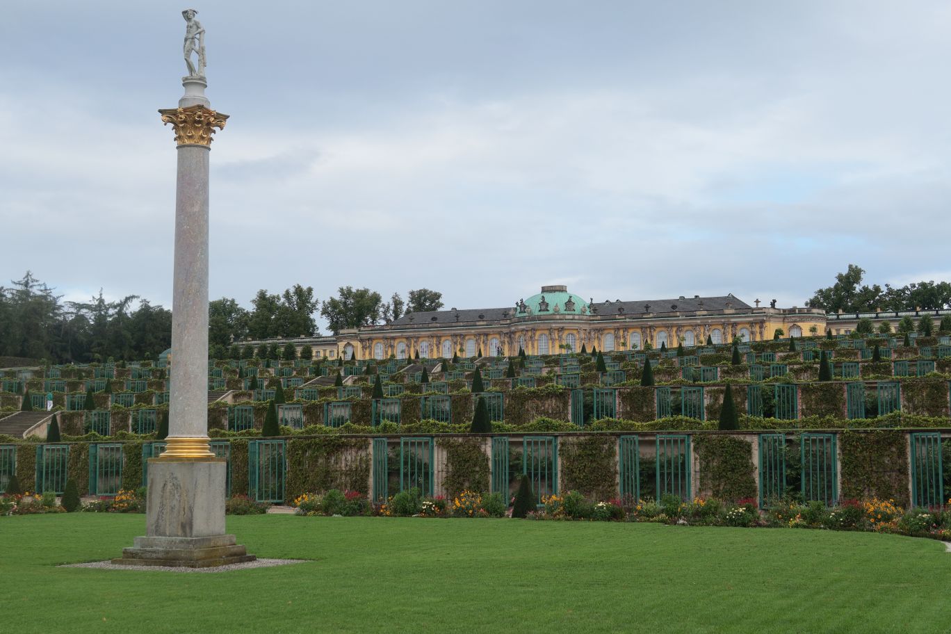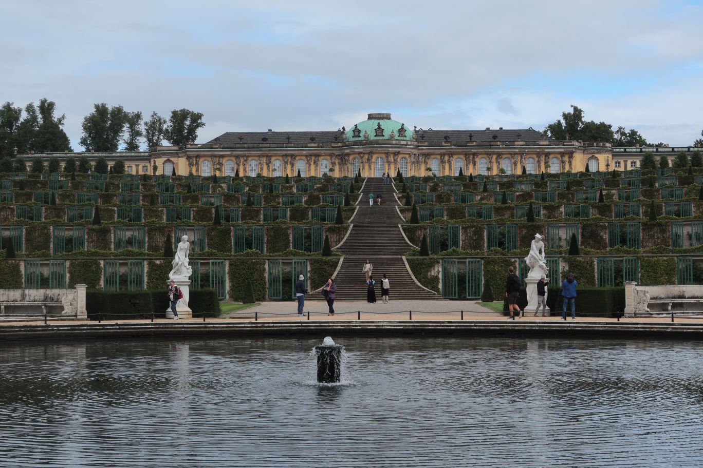 Ein Abstecher führte uns hinauf auf den Teufelsberg. Der 120m hohe Trümmerberg mit der alten Radarstation auf dem Gipfel, zweithöchste Erhebung im Stadtgebiet von Berlin, war dann auch die erste Bergwertung des Tages und brachte unseren Berliner Kollegen gleich schon ordentlich außer Puste 😊 Tja, wer mit Gipfelstürmer unterwegs ist, muss immer auch da mit Bergen rechnen, wo man sie am wenigsten vermutet. Von der Plattform der Radarkuppeln bot sich ein 360° Blick über ganz Berlin. Ein Besuch des kleinen Alliertenmuseums rundete die „Lost-Place Exkursion“ auf dem Teufelsberg ab. Weiter ging es durch quer durch den Grunewald. Bis zum Grunewaldturm waren nochmal zwei kurze aber steile Rampen zu bewältigen. Von wegen Berlin ist flach, die Steigungsprozente lagen im zweistelligen Bereich. Entlang breiter Alleen führte der Weg nun nach Süden parallel zur Havel bis zum Wannsee. Vorbei an prächtigen Villen, die die Uferpromenade säumten steuerten wir auf die Pfaueninsel zu, liessen die aber links (bzw. rechts) liegen und fuhren weiter zur Stadtgrenze Berlins. An der Glienickerbrücke, wo früher Spione ausgetauscht wurden, verabschiedeten wir uns von unserem Gastradler Stefan und folgten nun einem ersten Stück Mauerweg bis zum Schloss Cäcilienhof, Tagungsort der Potsdamer Konferenz 1945. Von dort aus gelangten wir über das Nauener Tor in die Altstadt von Potsdam. Vorbei am Holländischen Viertel, Mitte des 18. Jhd. unter „Soldatenkönig“ Friedrich Wilhelm I im Zuge der Stadterweiterung nach dem Vorbild holländischer Backsteinhäuser errichtet, war es nur noch ein kurzer Weg zu unserer Unterkunft am Grossen Waisenhaus. Gerade noch rechtzeitig bevor ein Gewitter aufzog.