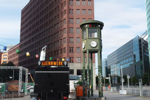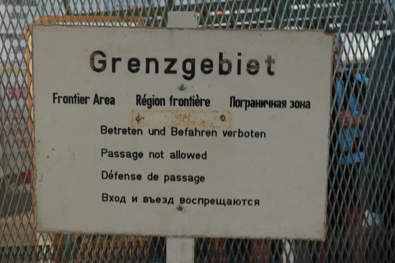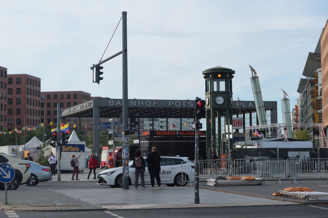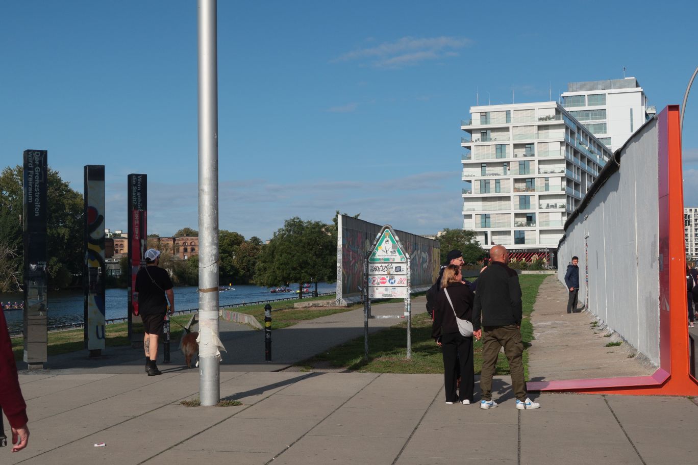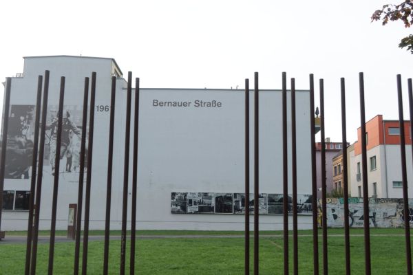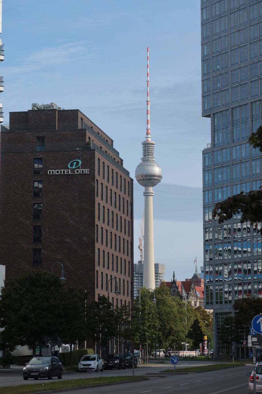 Die 3. Etappe führte erstmal dem Weg der innerstädtischen Mauer folgend quer durch Berlin. Dank der 2-reihigen Kopfsteinpflastermarkierung war der Mauerverlauf immer gut zu erkennen. Ein kurzer Stopp an der Gedenkstätte Bernauer Straße, an dem noch ein Stück Originalmauer erhalten ist, gewährte uns auch Einblicke in den Aufbau der Sperranlagen auf DDR-Seite. Über den Invalidenfriedhof ging es zum Humbolthafen und am Hauptbahnhof vorbei an die Spree. Nach Umrundung des Marie-Elisabeth-Lüder Hauses verließen wir das Regierungsviertel auch schon wieder und steuerten auf die Straße unter den Linden zu. Obligatorischer Fotostopp vor dem Brandenburger Tor und weiter zum Potsdamer Platz. Am Samstag Morgen herrschte wenig Autoverkehr, so dass die Fahrt durch die großen Verkehrsadern der Stadt weniger anstrengend als befürchtet war. Vorbei am Checkpoint Charlie in der Kochstraße ging es dann im Zickzack durch die Straßen Berlins bis in den Bezirk Treptow.