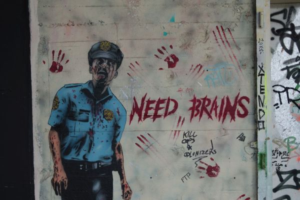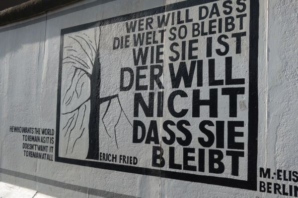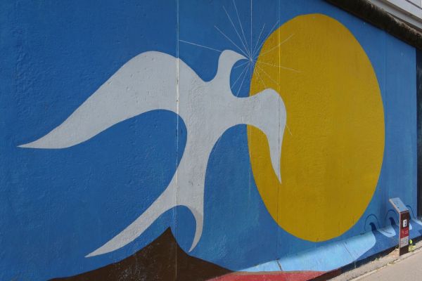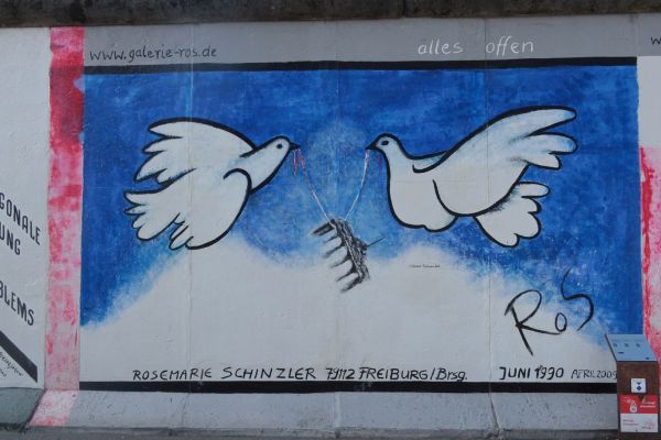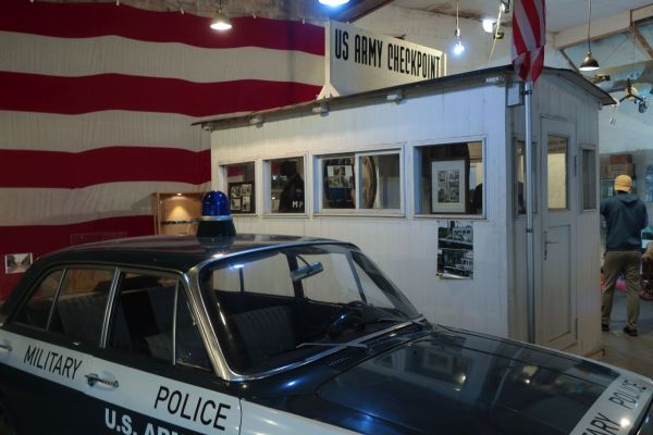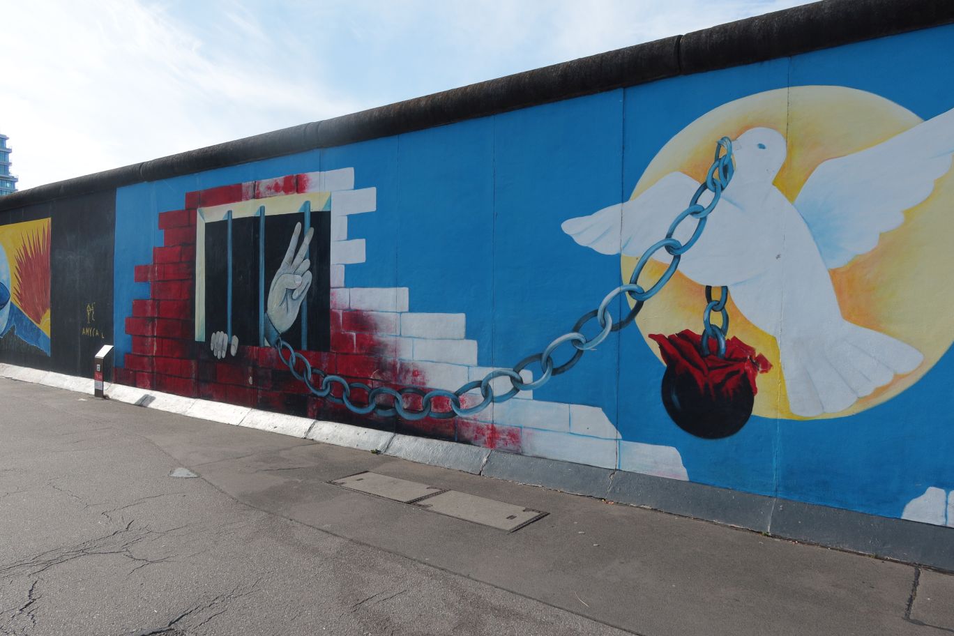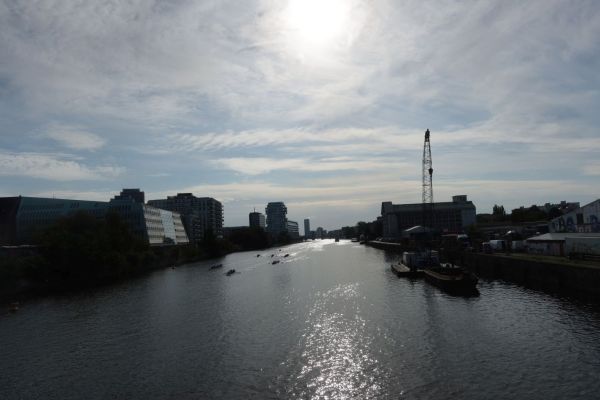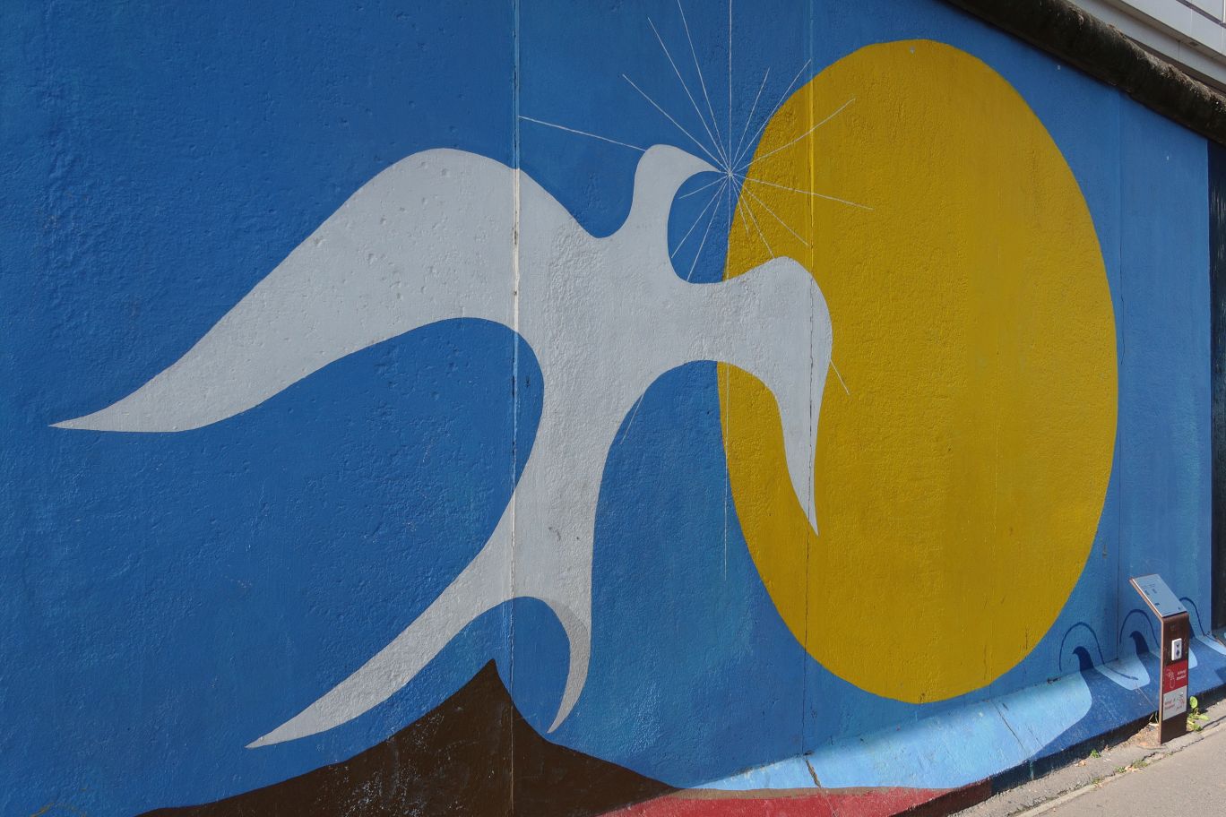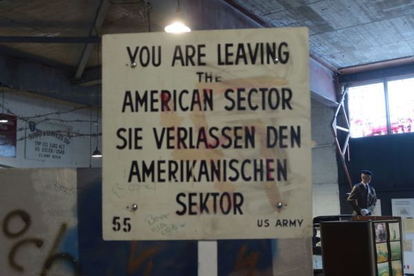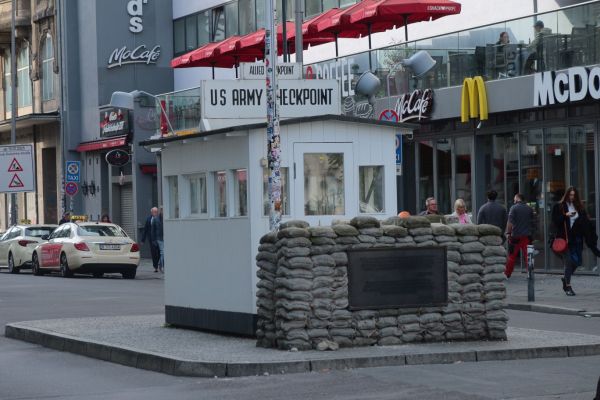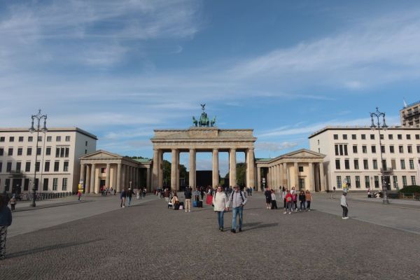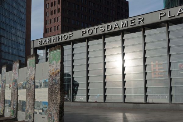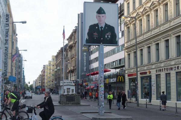Die 3. Etappe führte erstmal dem Weg der innerstädtischen Mauer folgend quer durch Berlin. Dank der 2-reihigen Kopfsteinpflastermarkierung war der Mauerverlauf immer gut zu erkennen. Ein kurzer Stopp an der Gedenkstätte Bernauer Straße, an dem noch ein Stück Originalmauer erhalten ist, gewährte uns auch Einblicke in den Aufbau der Sperranlagen auf DDR-Seite. Über den Invalidenfriedhof ging es zum Humbolthafen und am Hauptbahnhof vorbei an die Spree. Nach Umrundung des Marie-Elisabeth-Lüder Hauses verließen wir das Regierungsviertel auch schon wieder und steuerten auf die Straße unter den Linden zu. Obligatorischer Fotostopp vor dem Brandenburger Tor und weiter zum Potsdamer Platz. Am Samstag Morgen herrschte wenig Autoverkehr, so dass die Fahrt durch die großen Verkehrsadern der Stadt weniger anstrengend als befürchtet war. Vorbei am Checkpoint Charlie in der Kochstraße ging es dann im Zickzack durch die Straßen Berlins bis in den Bezirk Treptow.