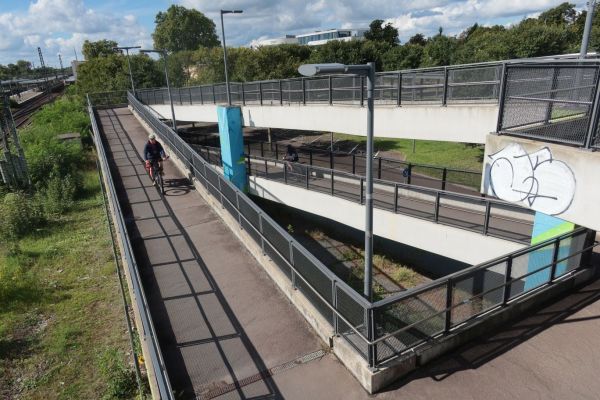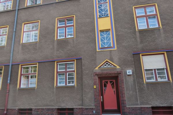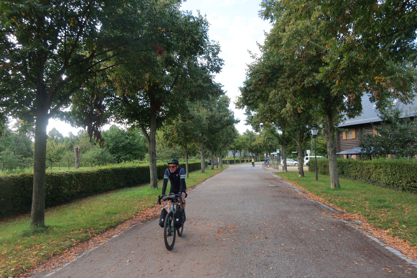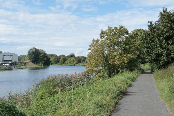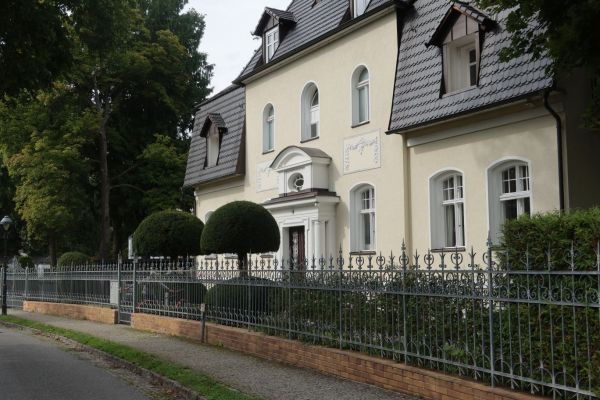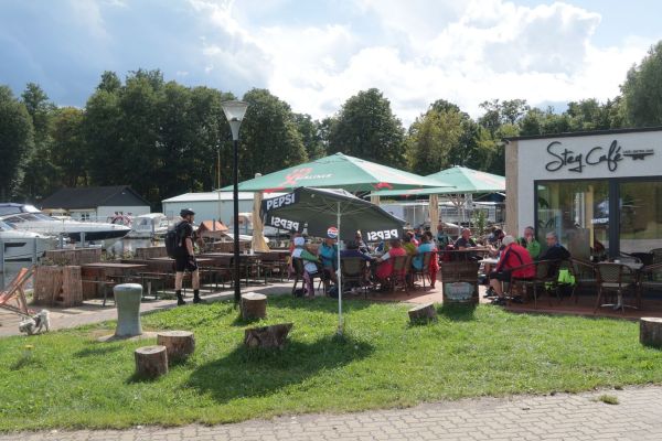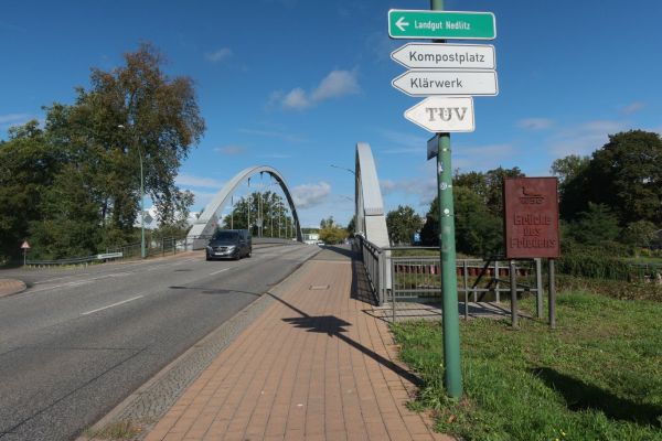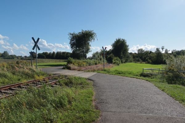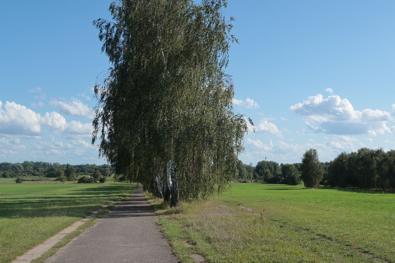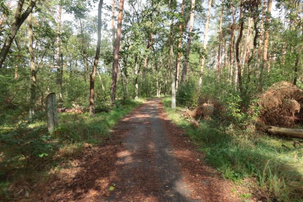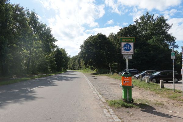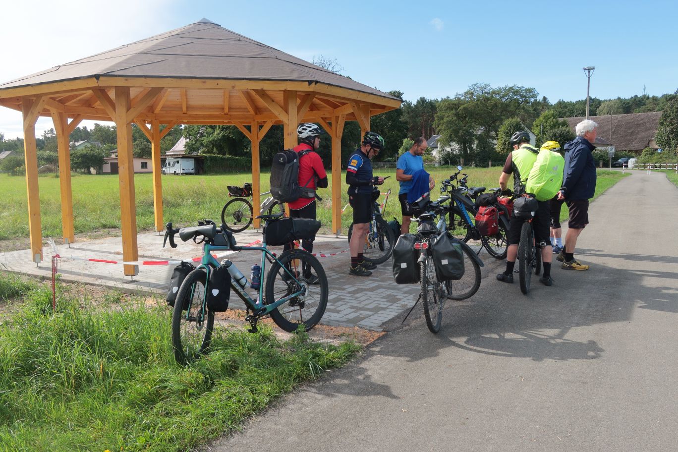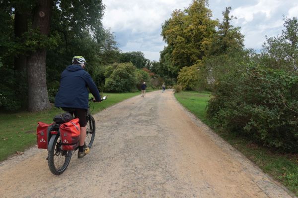 Nach so viel Kultur mussten wir erstmal Kilometer machen und verlorene Zeit aufholen, schließlich war unsere heutige Etappe ja über 90km lang . Dem Mauerweg folgend führte ein langes Waldstück in einem großen Bogen um Jungfernsee, Krampnitzsee und Lenitzsee bei Sacrow an die Havel. Über Groß-Glienicke setzen wir den Weg bis Spandau fort. Die Berliner Vorstand umrundeten wir und fuhren durch weitläufige Felder und malerische Wiesen nach Henningsdorf. Es kam Hunger auf und wir fanden eine passende Lokalität für die Mittagspause direkt am Radweg. Leider war das Essensangebot wegen des bevorstehenden Saisonendes deutlich eingeschränkt. Ein paar Pommes mussten reichen. Mit der Invalidensiedlung in Hohen-Neuendorf erreichten wir den nördlichsten Punkt der Tour. In den 1930er Jahren wurden hier 50 behindertengerechte zweigeschossige Klinkerbauten sowie Wirtschafts- und Gemeinschaftsgebäude für Versehrte des Ersten Weltkriegs gebaut.