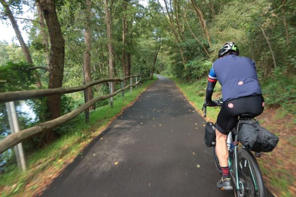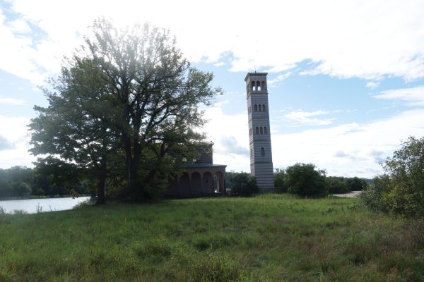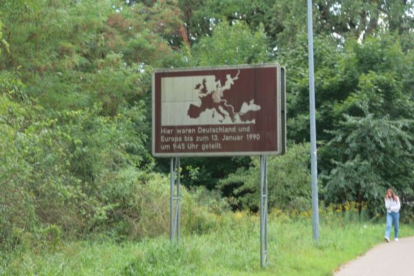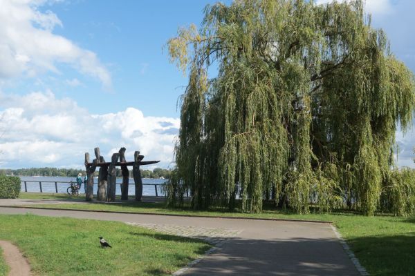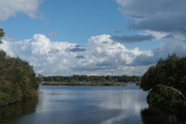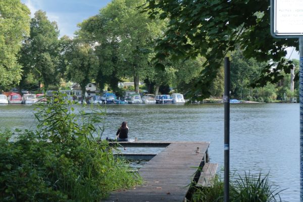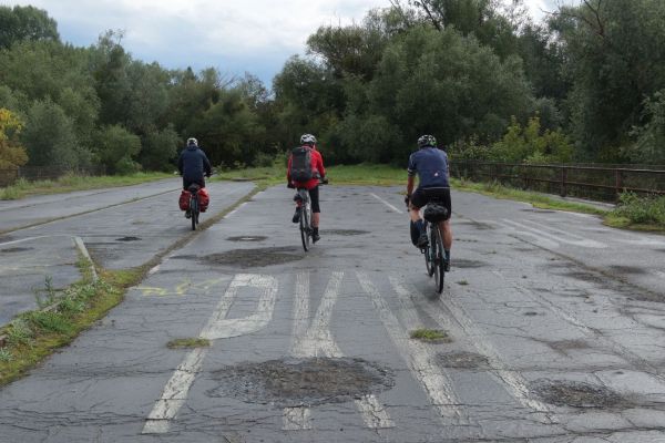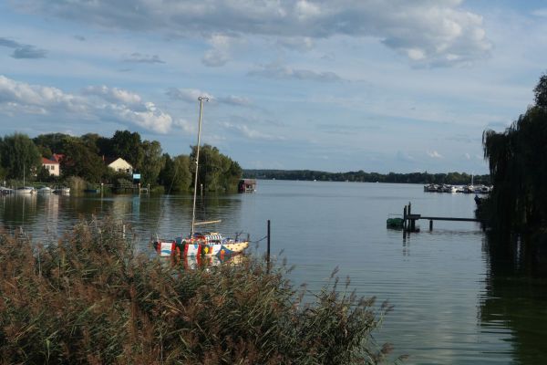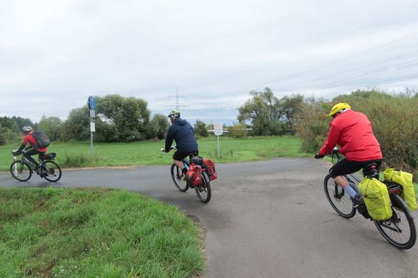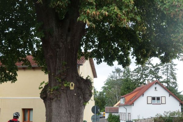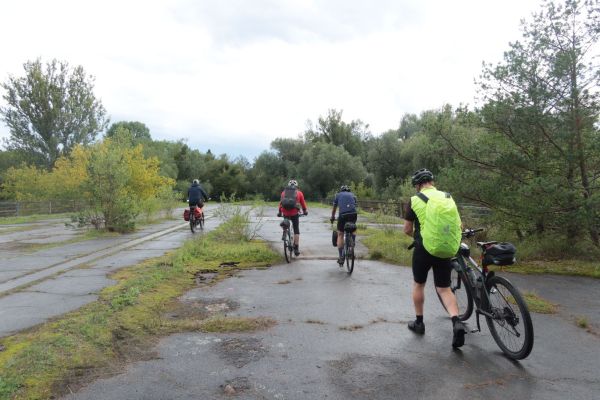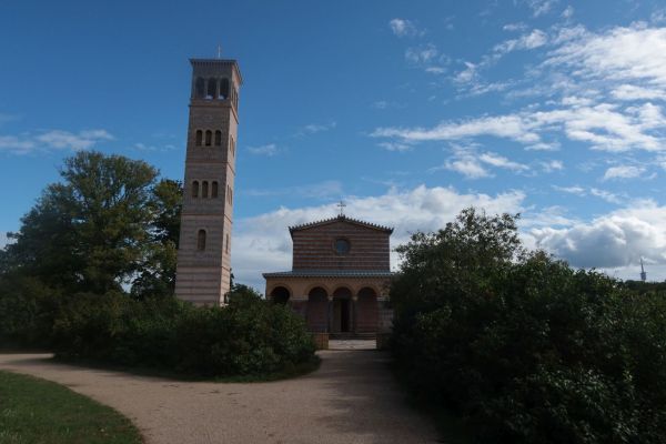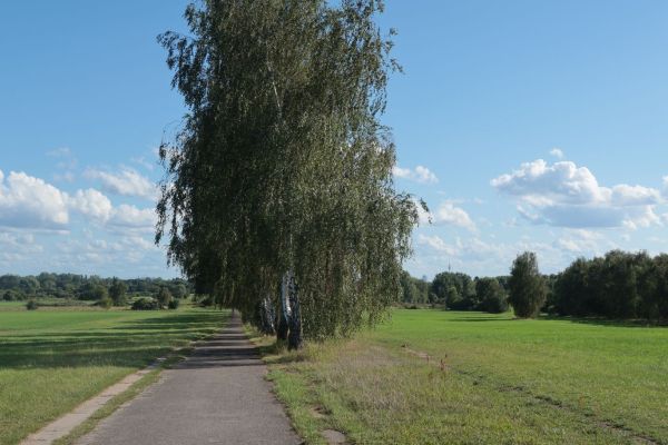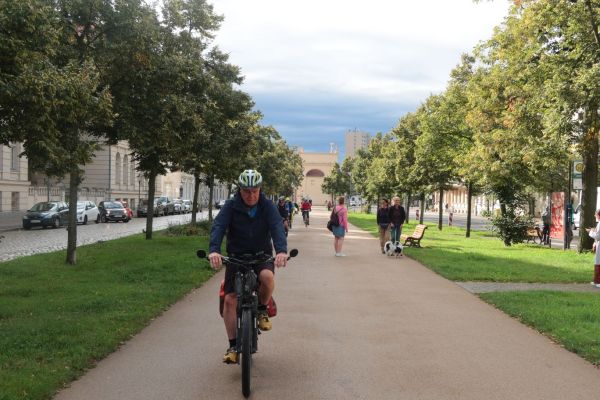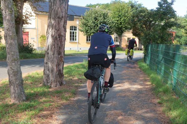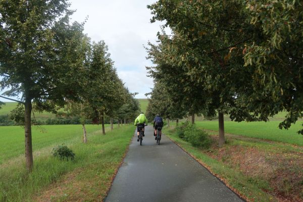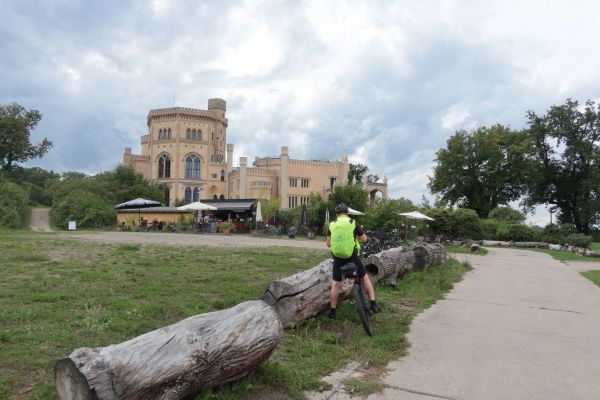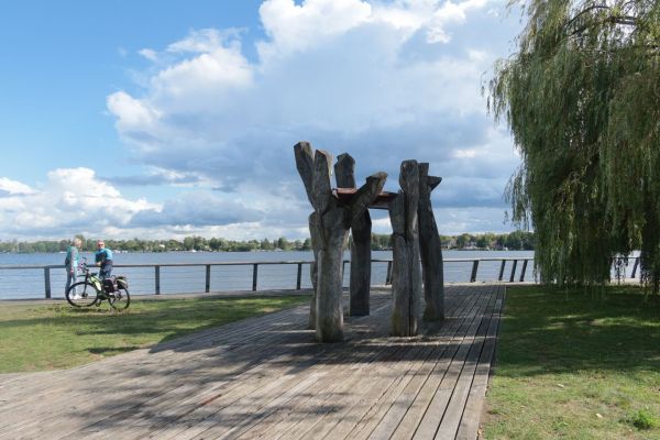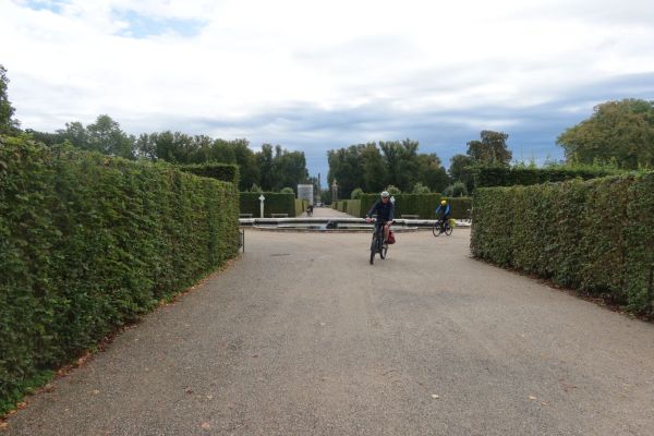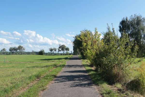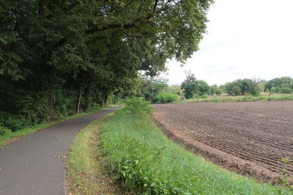 Auf ein langes Stück durch eine schöne Parkanlage folgte ein Teilstück entlang des Britzer Verbindungskanals. Hier erinnert eine Stele an Chris Gueffroy, das letzte Todesopfer an der Mauer. Wir bogen nach Südosten ab und folgten dem Radweg zwischen Autobahn A113 links und Teltowkanal rechts bis Schönefeld. Nach dem Flughafen wurde es wieder ländlich, ursprüngliche Natur direkt vor den Toren der Stadt. Am Rande Südberlins entlang schlängelte sich der Radweg dann weiter Richtung Westen, auf der rechten Seite meistens bebautes Gebiet und auf der linken Seite weite Felder und Wiesen. Teilweise führte der Weg auf dem ehemaligen Kolonnenweges mit charakteristischen Betonplatten entlang, den die DDR-Grenztruppen für ihre Kontrollfahrten nutzten. Im Bezirk Zehlendorf erreichten wir wieder den Teltowkanal, dem wir ein Stück folgten aber für die Umfahrung von Kleinmachnow wieder verließen. Auf sandigem Untergrund gings weiter durch ein Waldstück am ehemaligen Grenzübergang Dreilinden vorbei. Wir folgen einer Trasse der ehemaligen Reichsautobahn 51, auch bekannt als "AVUS-Zubringer", die bis 1969 in Betrieb war. Auf der Brücke über den Teltowkanal ist noch der Fahrbahnbelag nebst Markierungen des Kontrollpunktes Checkpoint Bravo vorhanden. Hier warteten wir einen kleinen Regenschauer ab und setzten die Fahrt Richtung Potsdam weiter fort. Entlang des Griebnitzsees säumten wieder zahlreiche Villen unseren Weg. Vom Schloss Babelsberg bot sich ein toller Blick auf die Glienicker Brücke. Durch den Park ging es weiter in die Innenstadt von Potsdam und dort auf den Havelradweg. Da im Regenradar ein neues Regenband auf uns zukam, hielten wir das Tempo hoch und fuhren über Caputh nach Ferch am südlichen Ende des Schwielowsees. Dort holte uns der Regen ein. Eine alte Linde spendet etwas Schutz, wir entschieden uns aber in einem nahegelegenen Gasthaus einzukehren und zu warten bis der Regen vorbei ist. Auf Regen folgte Sonne und so konnten wir die letzten 12km bis zum Hotel auf der Fischerinsel von Werder trocken zurücklegen. 102km, 330 Höhenmeter war die Bilanz des Tages.