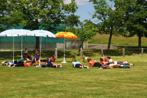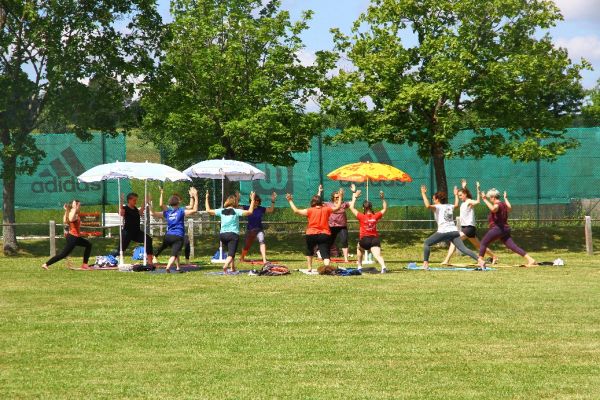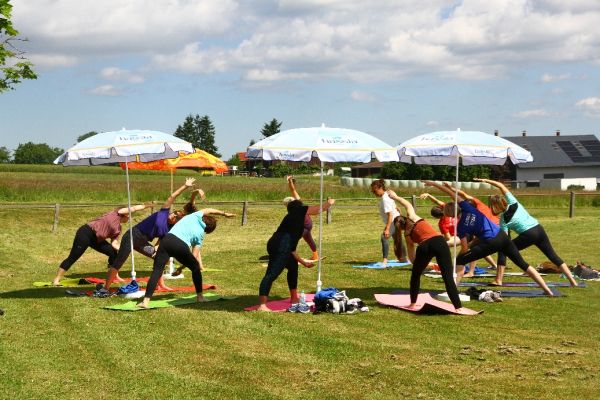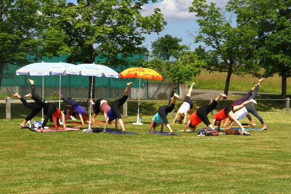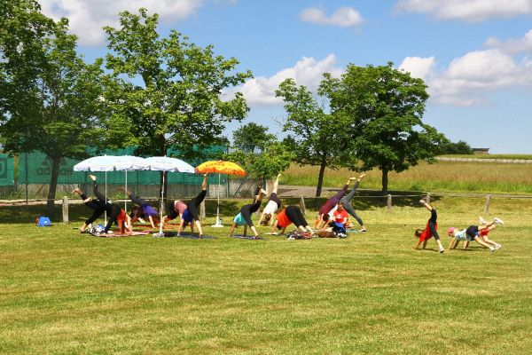 Deutlich ruhiger ging es bei einer Yoga-Einheit zu, die von Marion Friedrich geleitet wurde. Während sich die Älteren am reichhaltigen Kuchenbuffet stärkten sorgte Ballon-und Zauberkünstler Marcello für Spaß und Unterhaltung bei den Kleinen.