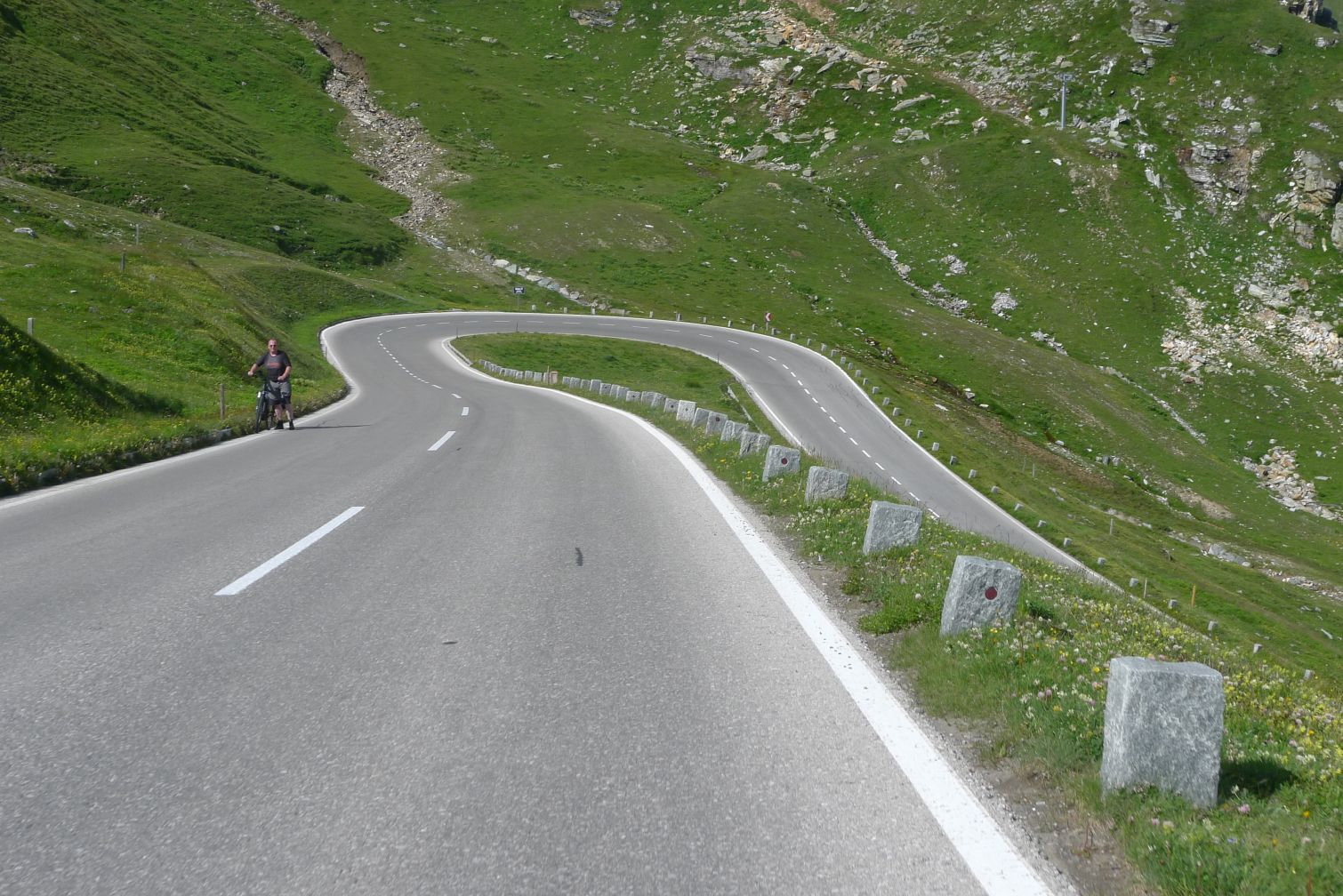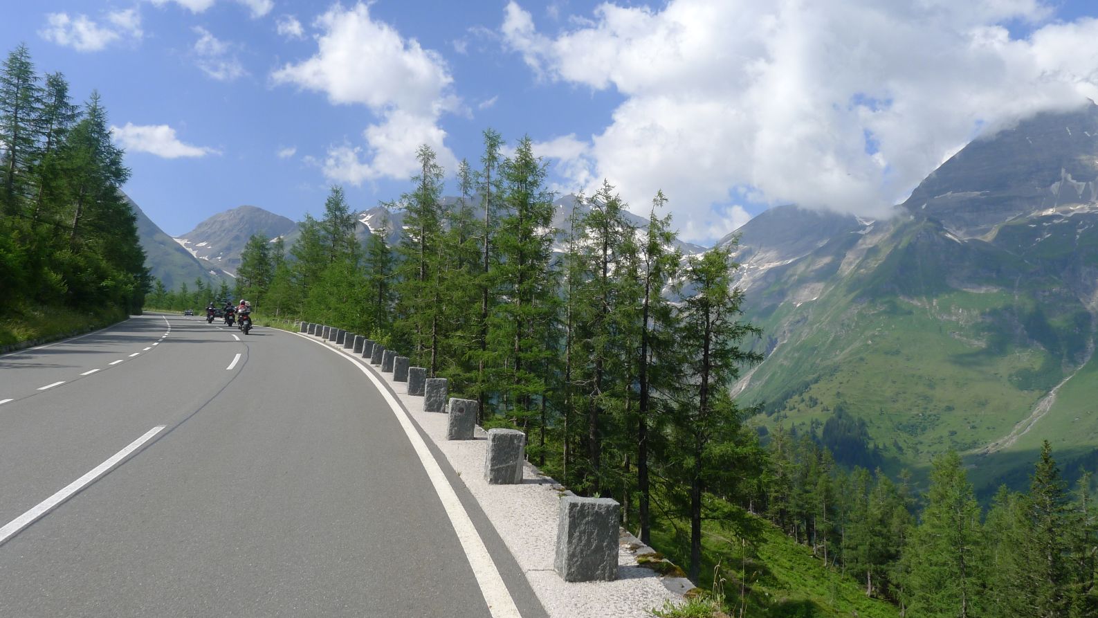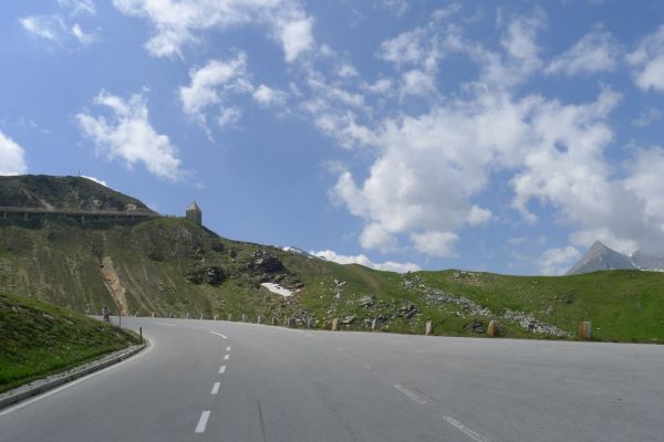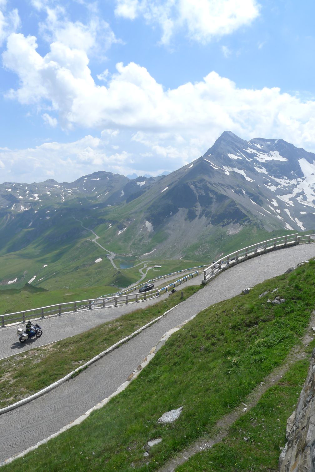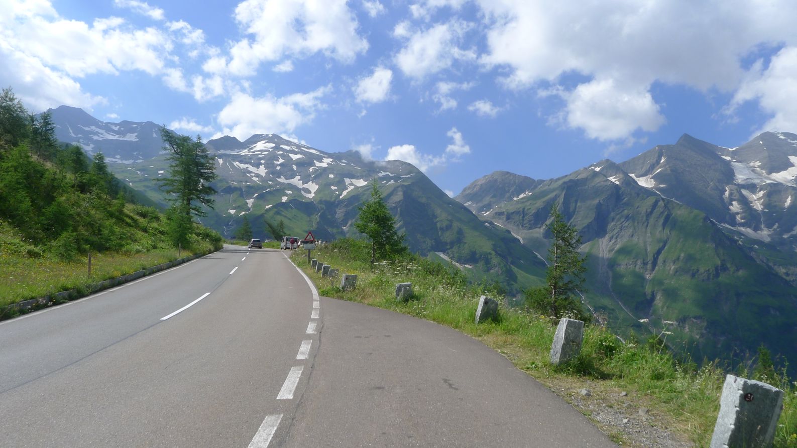 9:45 Uhr: nach einer Flachpassage erreichen Steff und ich die Mautstelle Ferleiten. Thomas ist schon durch und im Anstieg. Der Ausblick auf die 3000er ist umwerfend. Und schon wird es wieder steil, 11% zeigt der Tacho vor den ersten Serpentinen. Plötzlich wird es ganz ruhig um uns herum, kein Auto, kein Geknatter der Motorräder ist zu höher. Aufgrund eines Unfalls ist die Einfahrt ab der Mautstelle gesperrt. Wir haben die Passstraße für uns alleine, zumindest für eine knappe Stunde….