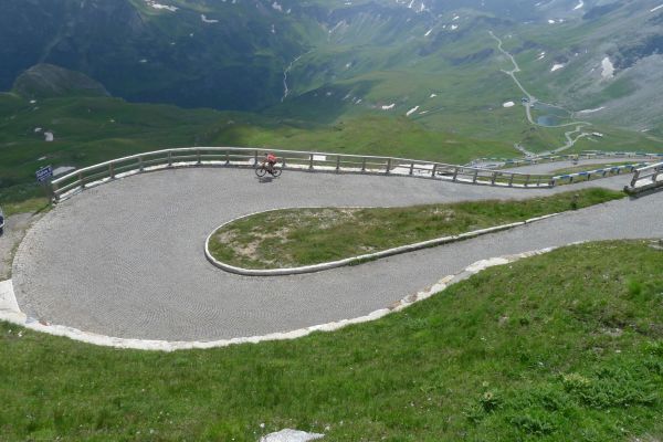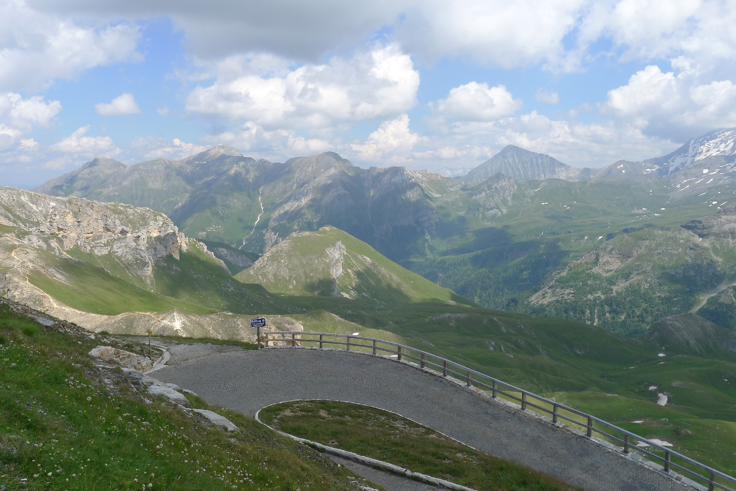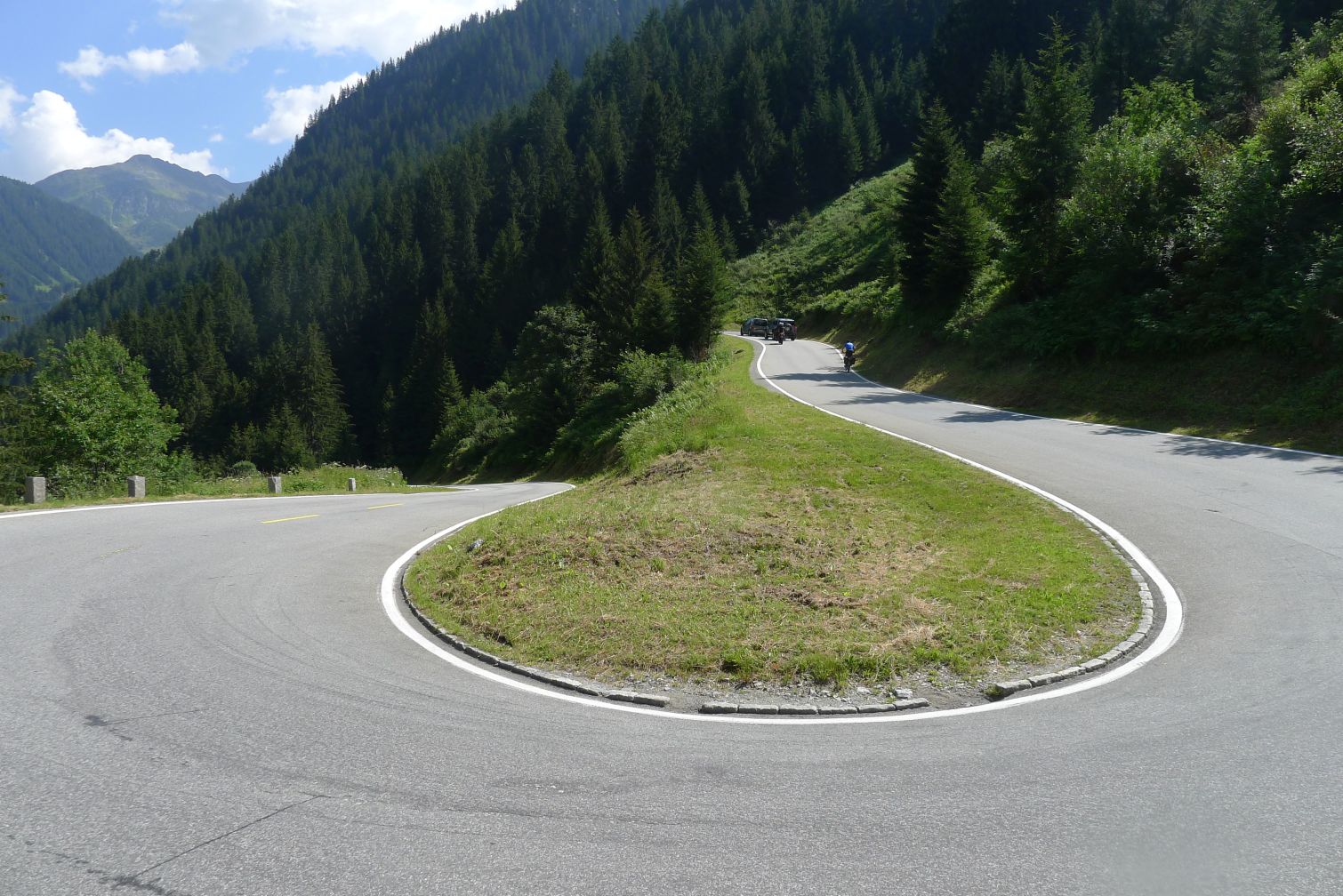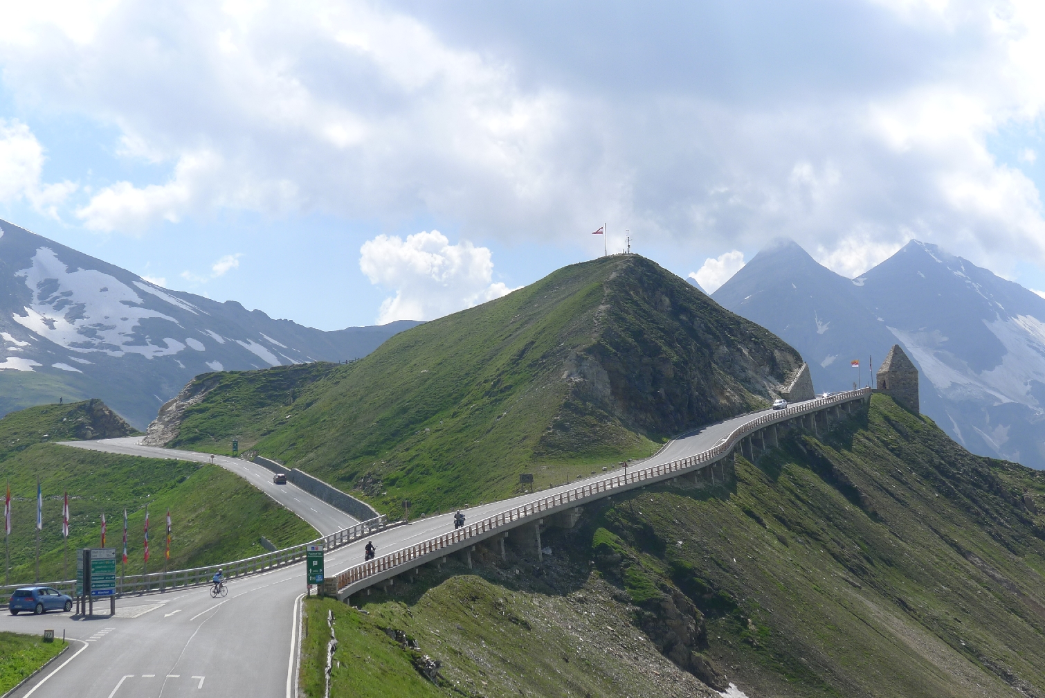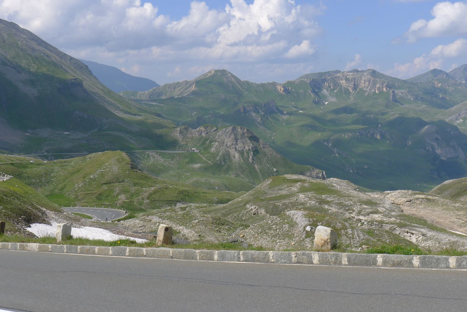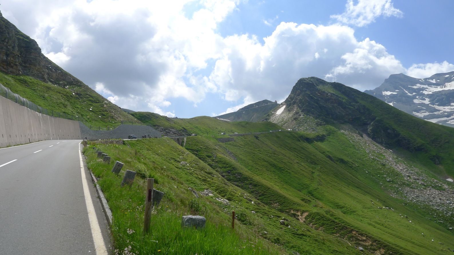 9:45 Uhr: nach einer Flachpassage erreichen Steff und ich die Mautstelle Ferleiten. Thomas ist schon durch und im Anstieg. Der Ausblick auf die 3000er ist umwerfend. Und schon wird es wieder steil, 11% zeigt der Tacho vor den ersten Serpentinen. Plötzlich wird es ganz ruhig um uns herum, kein Auto, kein Geknatter der Motorräder ist zu höher. Aufgrund eines Unfalls ist die Einfahrt ab der Mautstelle gesperrt. Wir haben die Passstraße für uns alleine, zumindest für eine knappe Stunde….