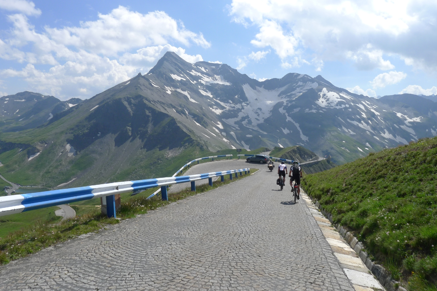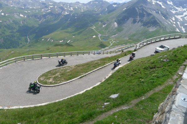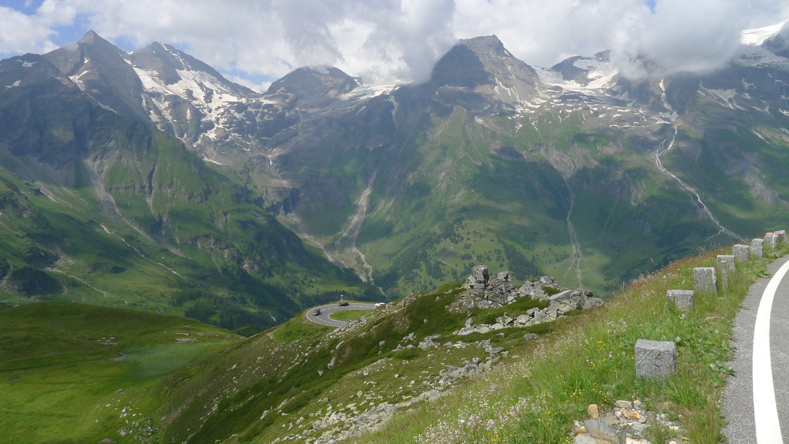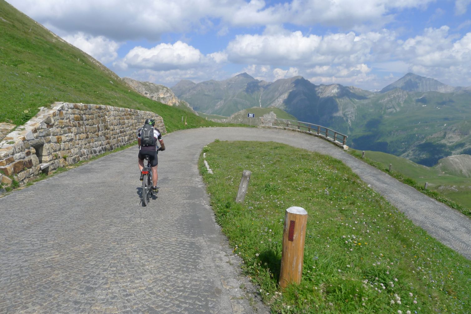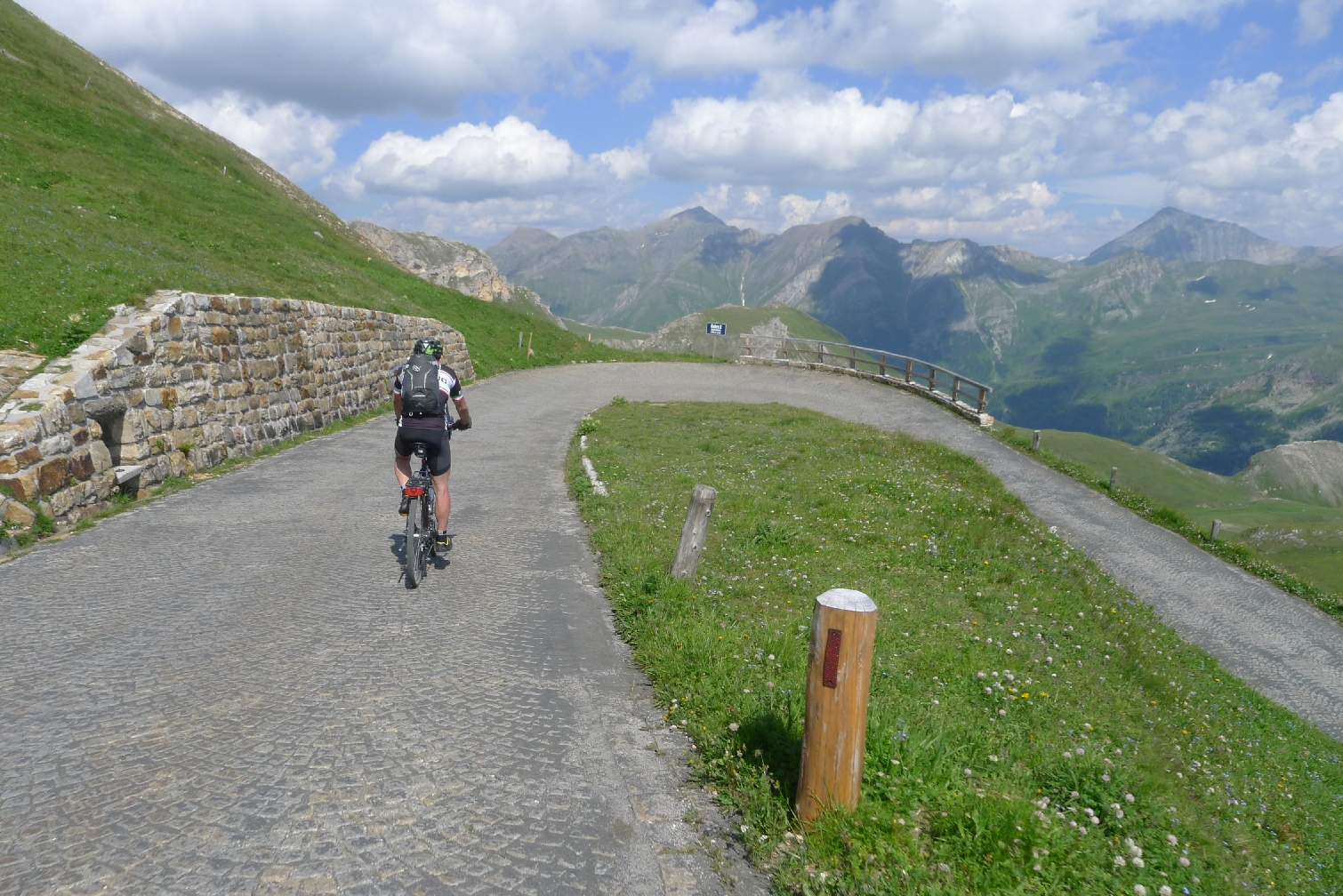 9:45 Uhr: nach einer Flachpassage erreichen Steff und ich die Mautstelle Ferleiten. Thomas ist schon durch und im Anstieg. Der Ausblick auf die 3000er ist umwerfend. Und schon wird es wieder steil, 11% zeigt der Tacho vor den ersten Serpentinen. Plötzlich wird es ganz ruhig um uns herum, kein Auto, kein Geknatter der Motorräder ist zu höher. Aufgrund eines Unfalls ist die Einfahrt ab der Mautstelle gesperrt. Wir haben die Passstraße für uns alleine, zumindest für eine knappe Stunde….