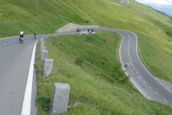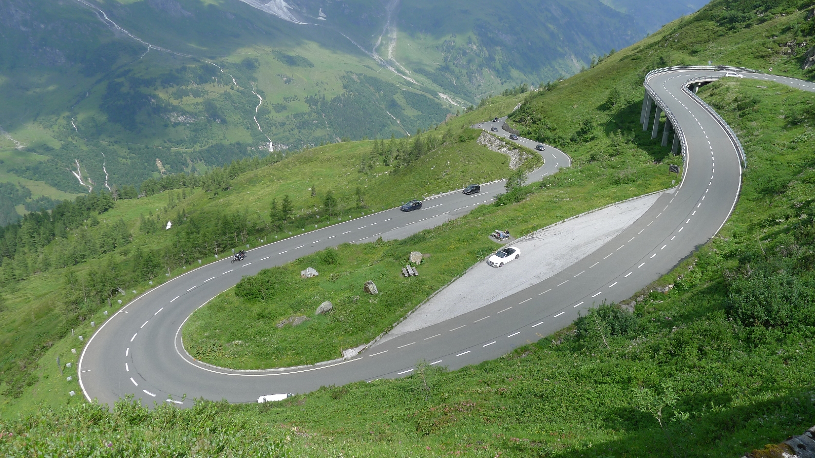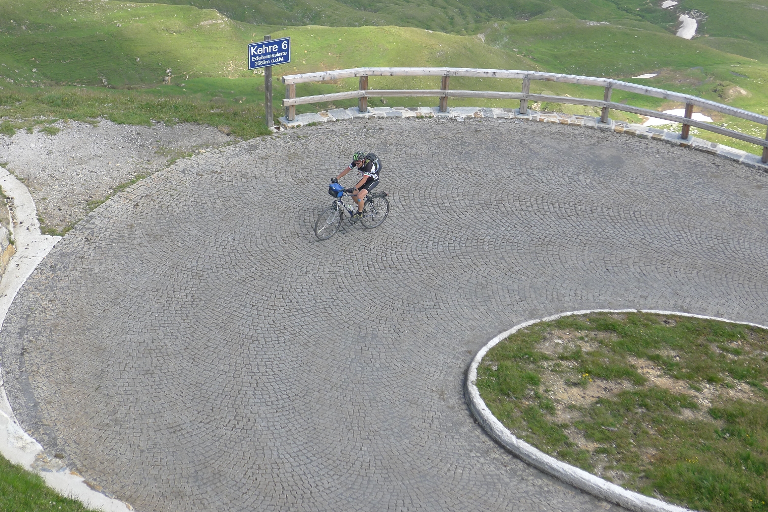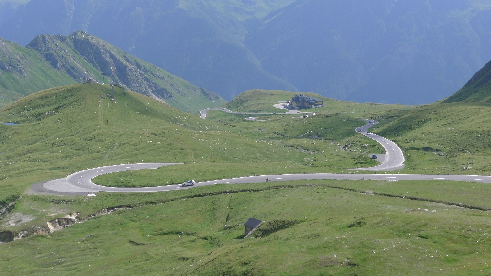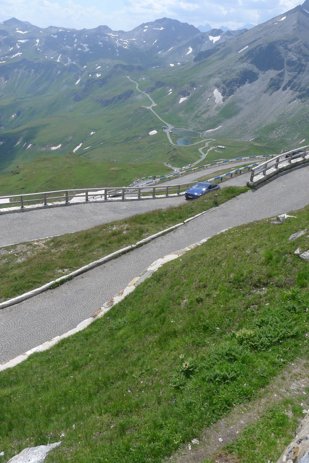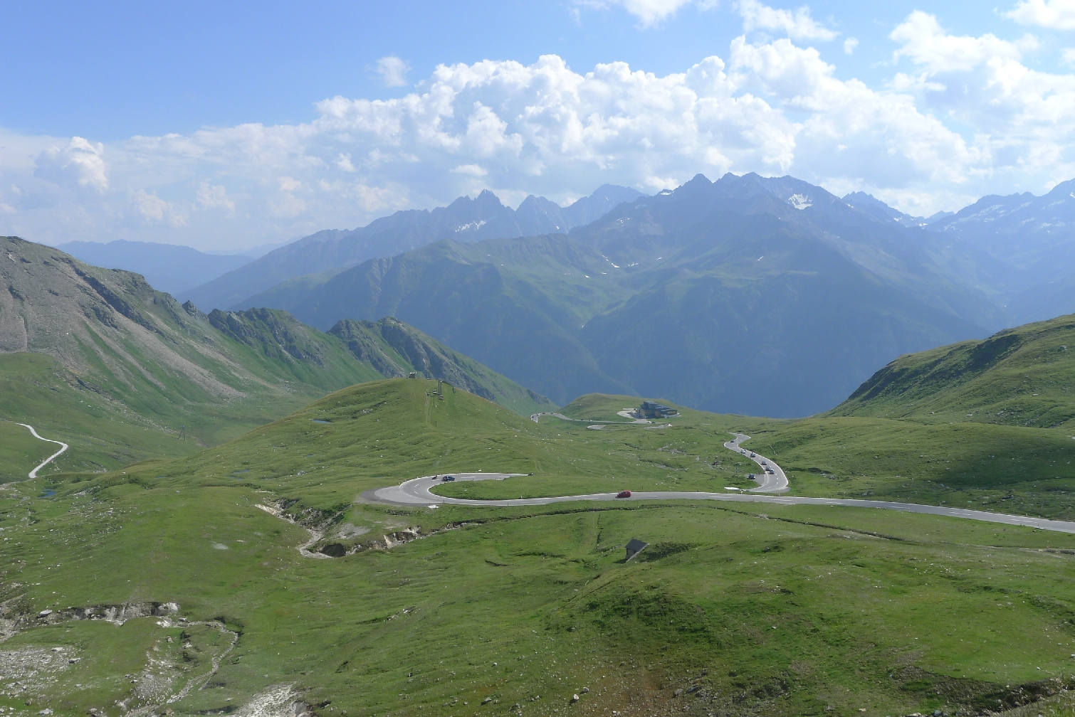 9:45 Uhr: nach einer Flachpassage erreichen Steff und ich die Mautstelle Ferleiten. Thomas ist schon durch und im Anstieg. Der Ausblick auf die 3000er ist umwerfend. Und schon wird es wieder steil, 11% zeigt der Tacho vor den ersten Serpentinen. Plötzlich wird es ganz ruhig um uns herum, kein Auto, kein Geknatter der Motorräder ist zu höher. Aufgrund eines Unfalls ist die Einfahrt ab der Mautstelle gesperrt. Wir haben die Passstraße für uns alleine, zumindest für eine knappe Stunde….