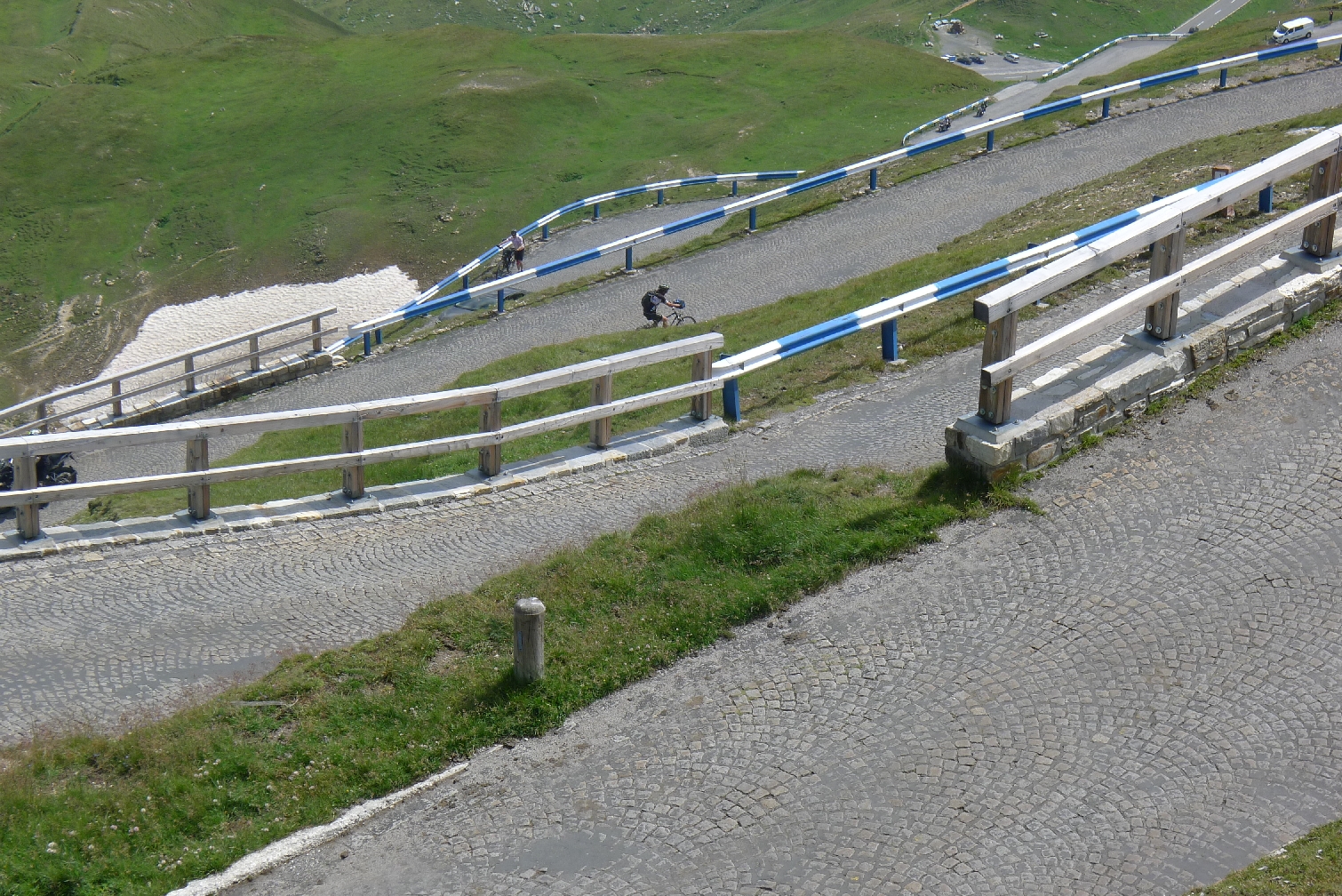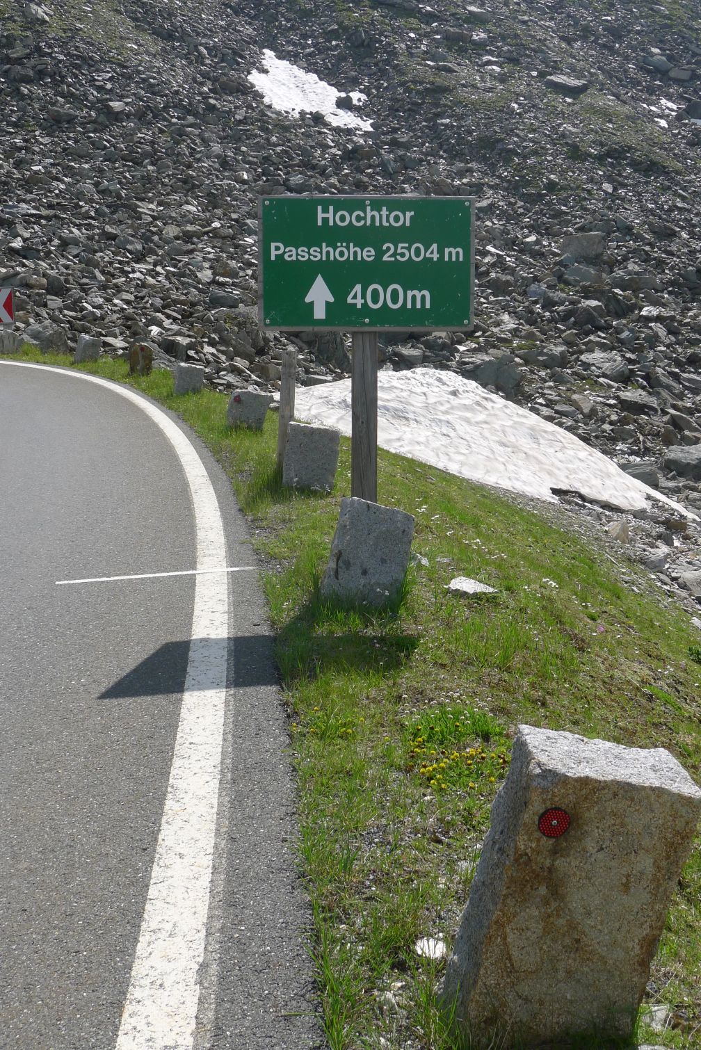 12:02 Uhr: der Abzweig zur Edelweissspitze etwas unterhalb des Fuscher Törl (2428m) ist erreicht. Thomas ist bereits da und hält Ausschau. Nun beginnt der Aufstieg zur Edelweissspitze: eine 1,5km lange kopfsteingepflasteter Stichstraße mit im Schnitt 12% Steigung.