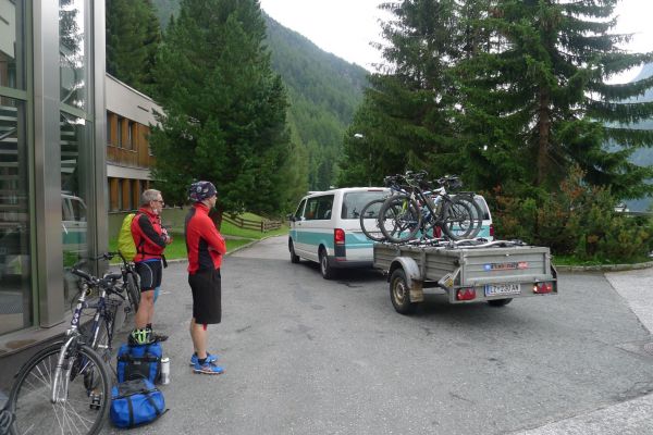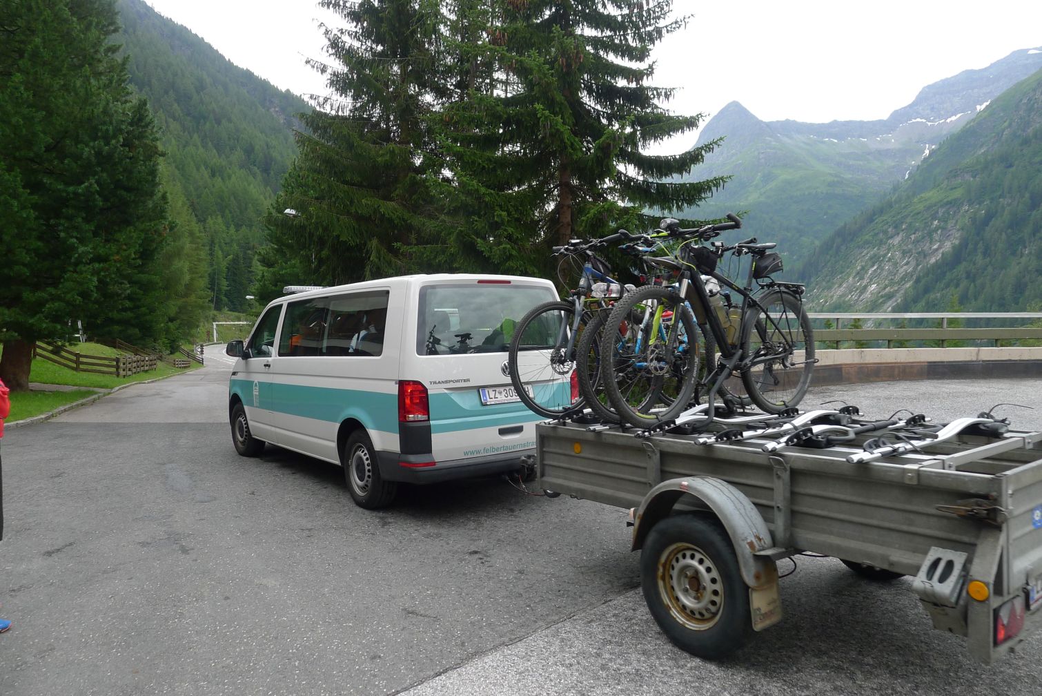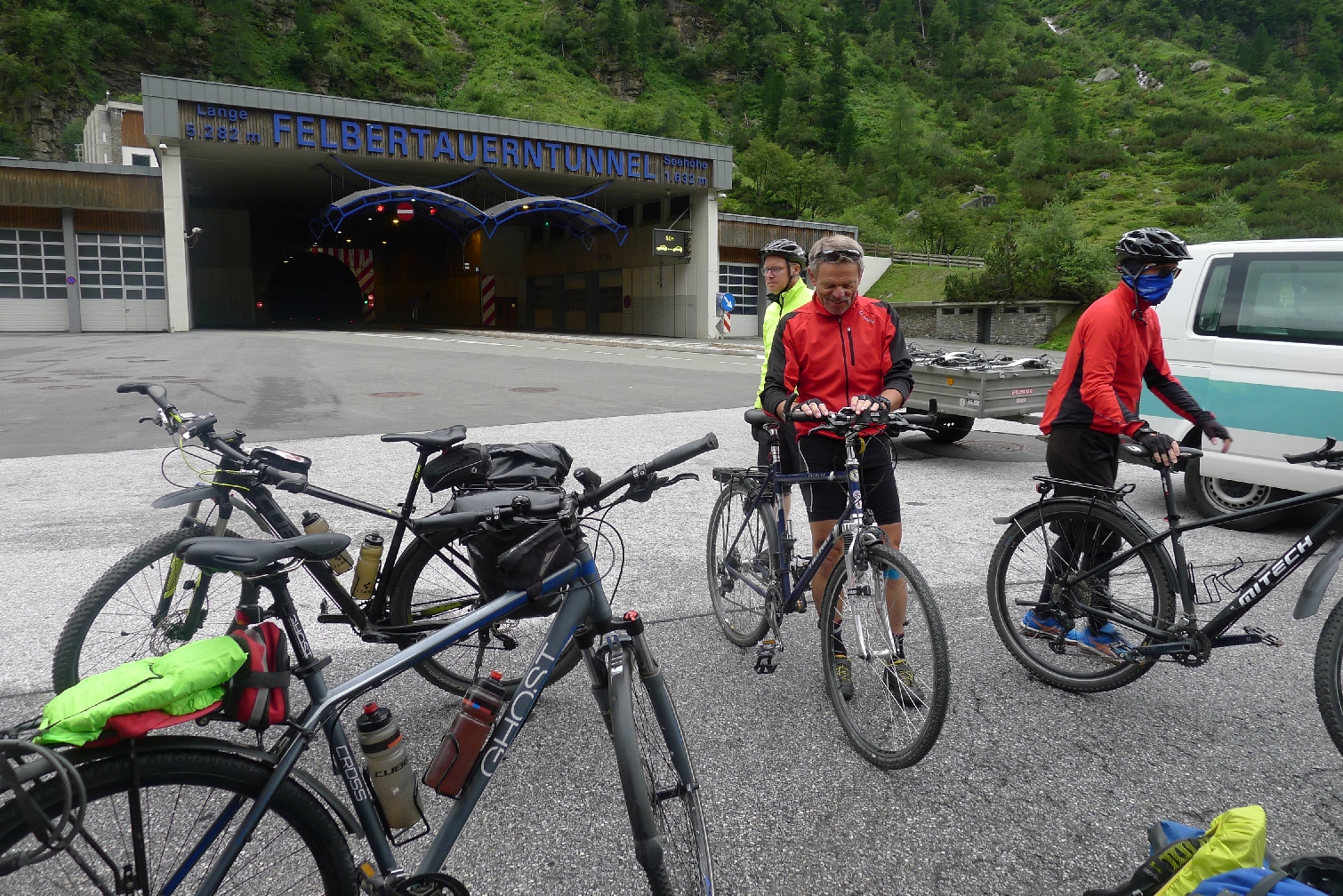 10:36 Uhr: mit Armin erreicht der letzte der Gruppe den Tunnel. Wir machen das Bike-Shuttle klar und verstauen unsere Räder auf dem Anhänger. Die nächsten 5km werden wir durch den Tunnel chauffiert.