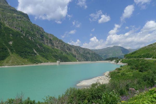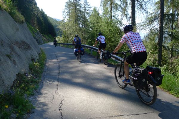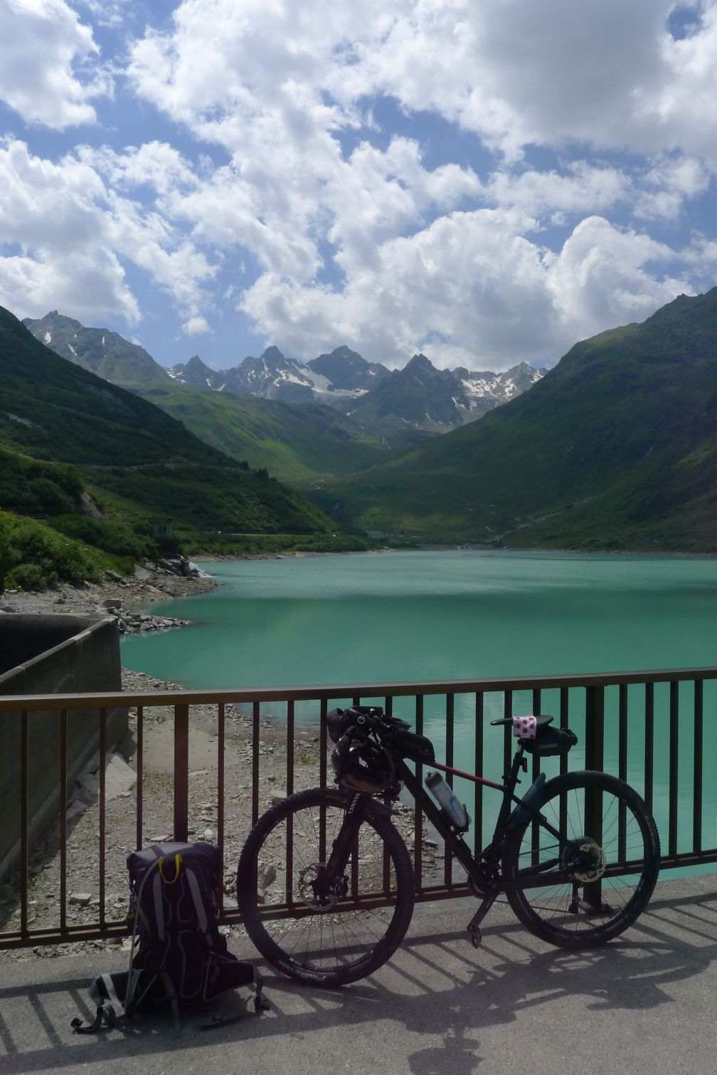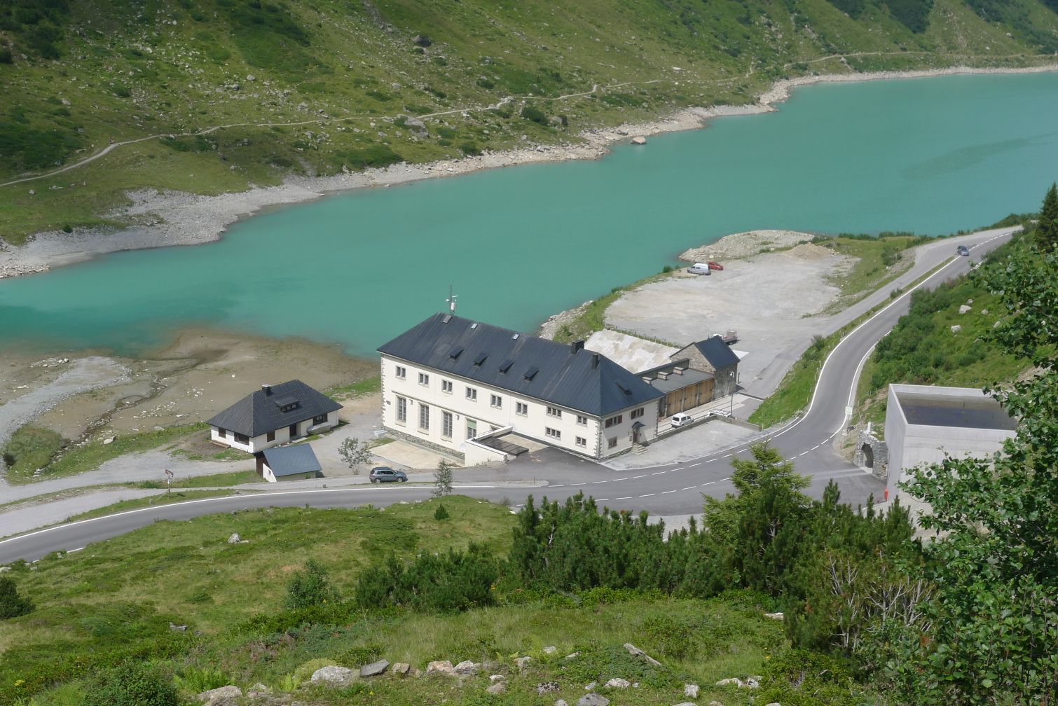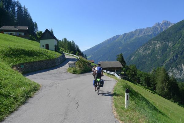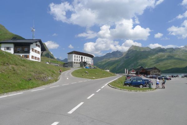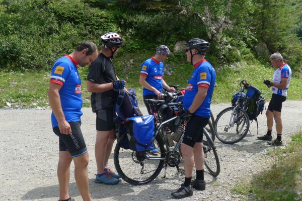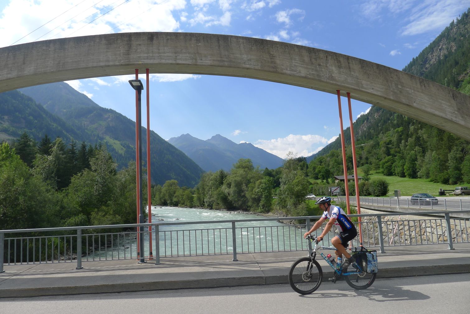 15:00 Uhr nach einem Gruppenbild vor dem Silvretta-Stausee geht es auf die Abfahrt. Noch 53 km bis nach Landeck und wir müssen den Zug erreichen, der uns zum nächsten Etappenort bringen soll. Um Zeit zu sparen bleiben wir auf der Bundesstrasse und rauschen mit hoher Geschwindigkeit durch das Paznauntal. Dörfer wie Galtür und Ischgl durchfahren wir im Eiltempo. Kurz vor Landeck kommt nochmal ein Anstieg und das Erreichen des Zuges schein in weite Ferne zu rücken.