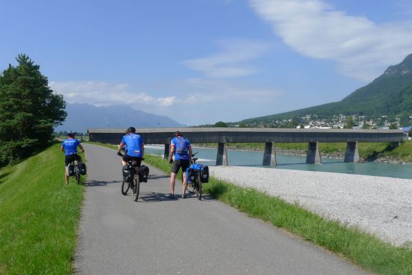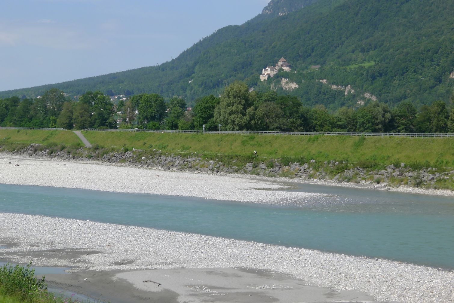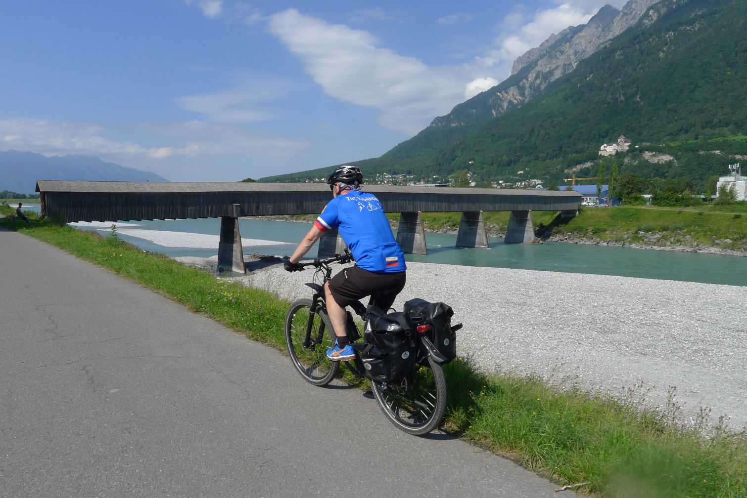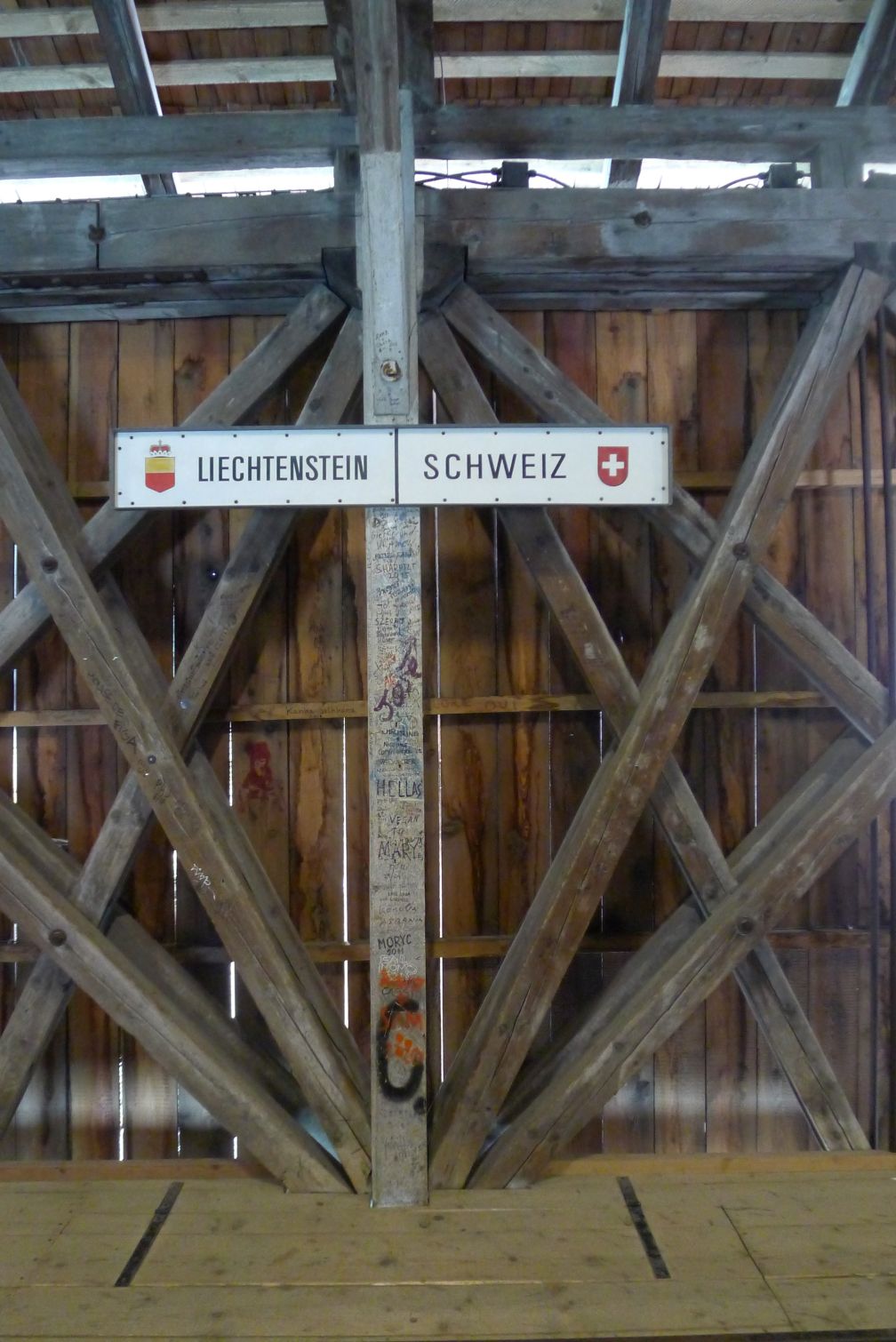 16:20 Uhr: kurz vor Vaduz fahren wir über die alte hölzerne Rheinbrücke und passieren die Grenze nach Liechtenstein. Rechts über uns thront das Schloss Vaduz, fürstliche Residenz und Wahrzeichen des Landes. Auf der anderen Seite des Rheintals erhebt sich auf Schweizer Seite das Alpsteinmassiv mit dem 2502m hohen Säntis. Diese Berge konnten wir auf der 2018er Tour schon von der anderen Seite auf der Fahrt nach Appenzell bewundern.