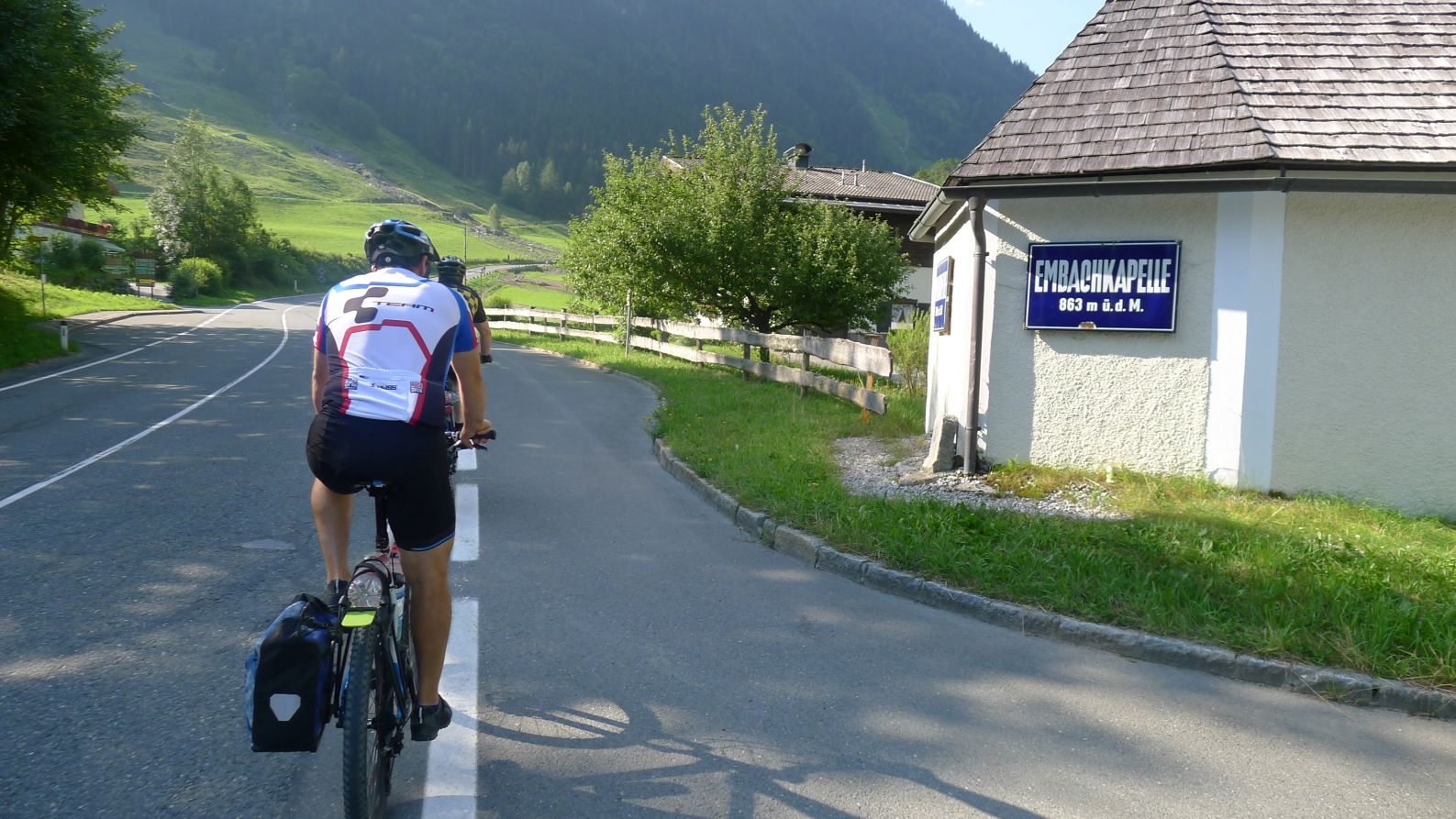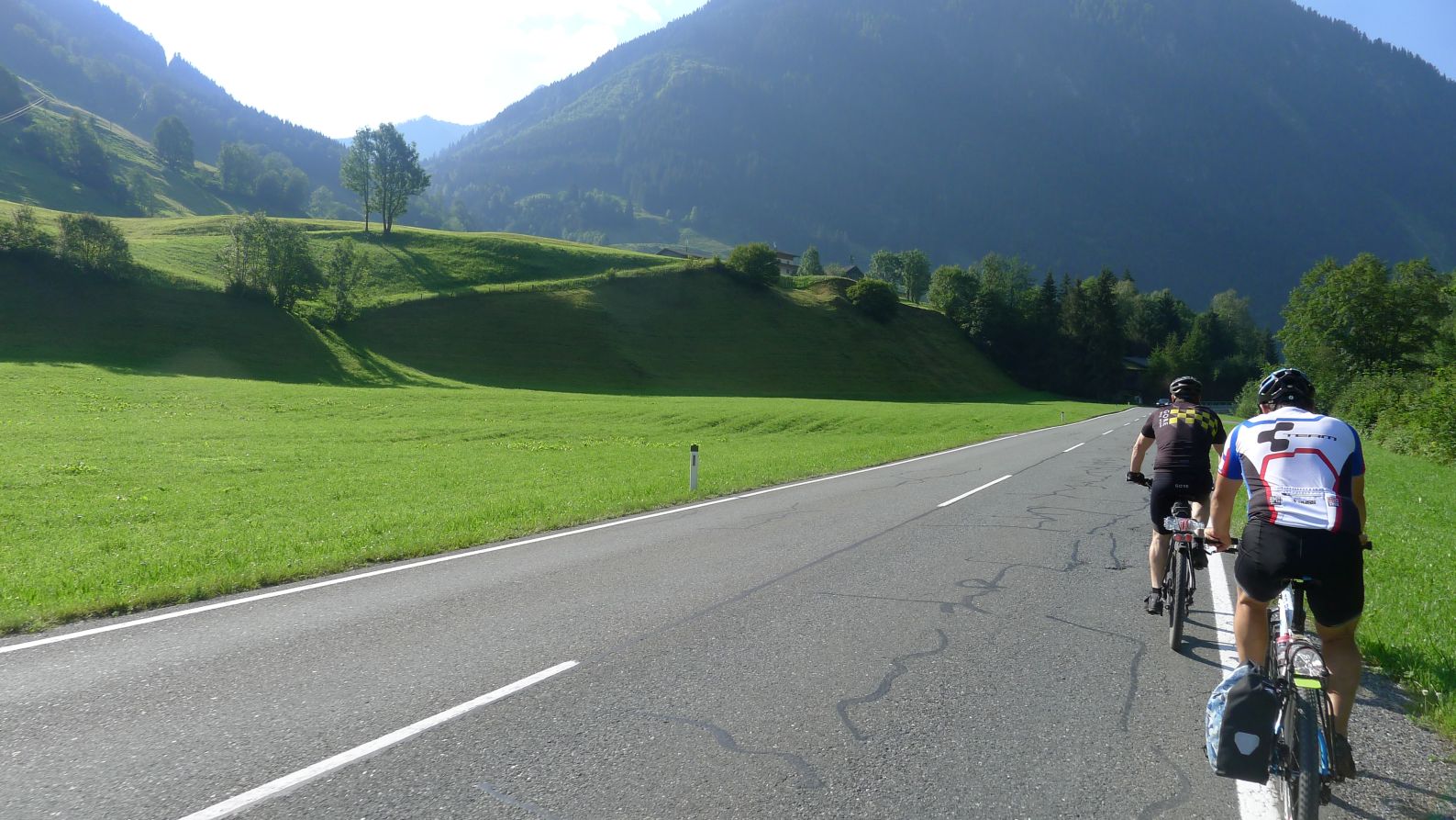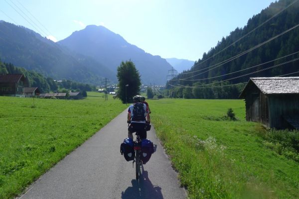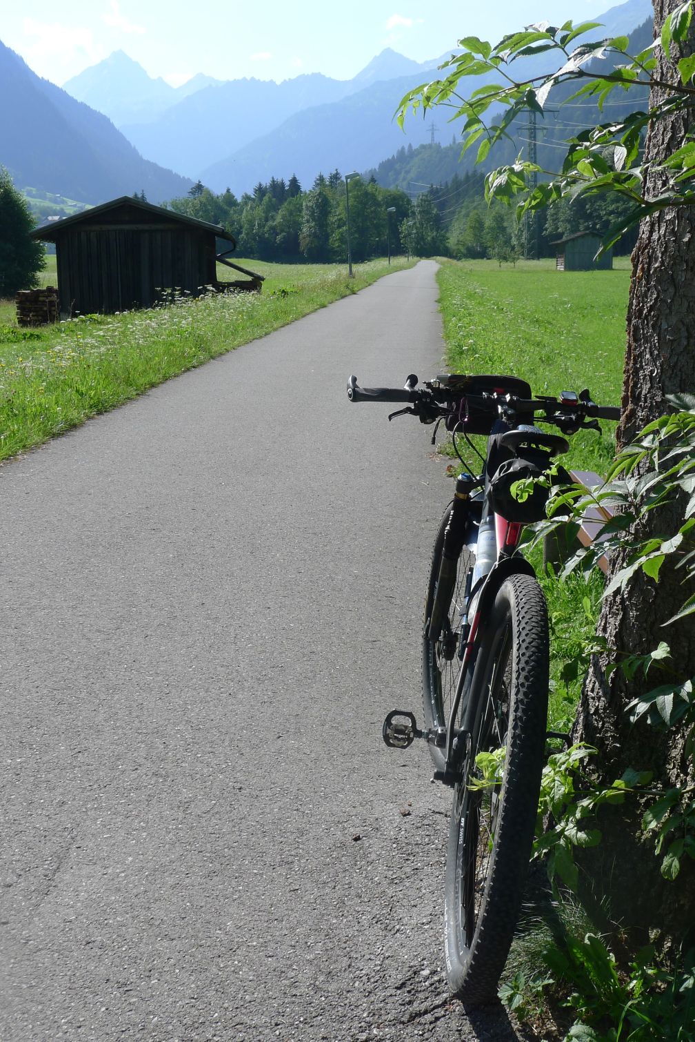 17:20 Uhr: zwischen Mauren und Feldkirch passieren wir die Grenze zu Österreich. Wir fahren durch die Altstadt von Feldkirch und folgen dem Tal der Ill bis Bludenz. Noch 35km bis zum Etappenziel. Unmerklich wird der Weg steiler und wir sammeln die ersten Höhenmeter.