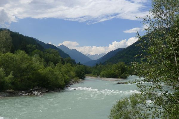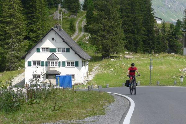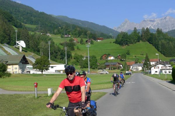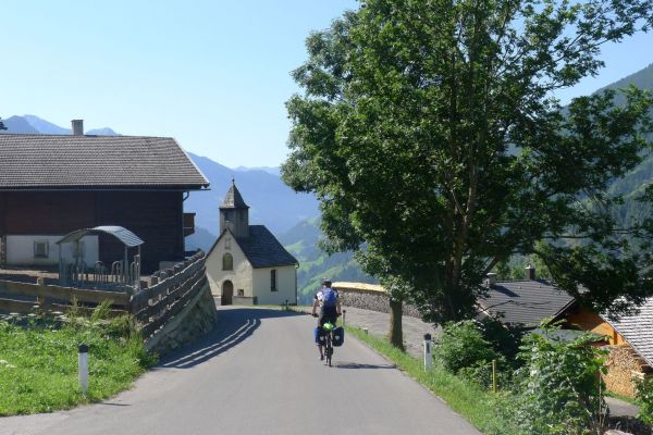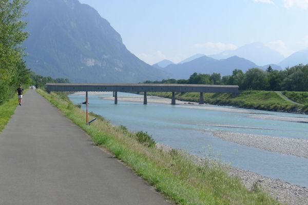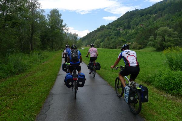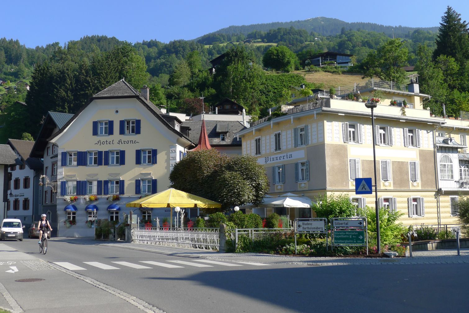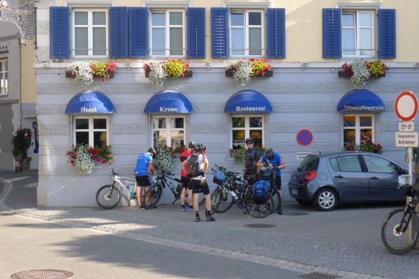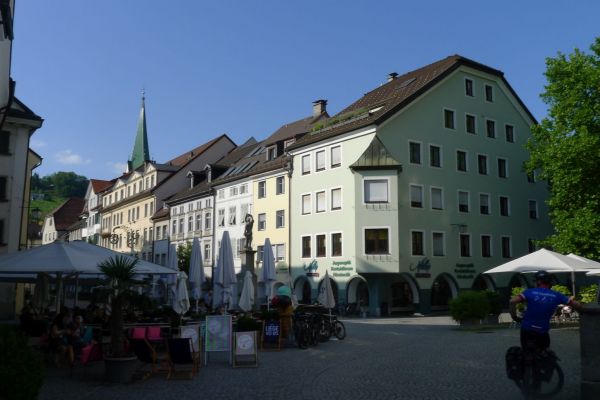 17:20 Uhr: zwischen Mauren und Feldkirch passieren wir die Grenze zu Österreich. Wir fahren durch die Altstadt von Feldkirch und folgen dem Tal der Ill bis Bludenz. Noch 35km bis zum Etappenziel. Unmerklich wird der Weg steiler und wir sammeln die ersten Höhenmeter.
