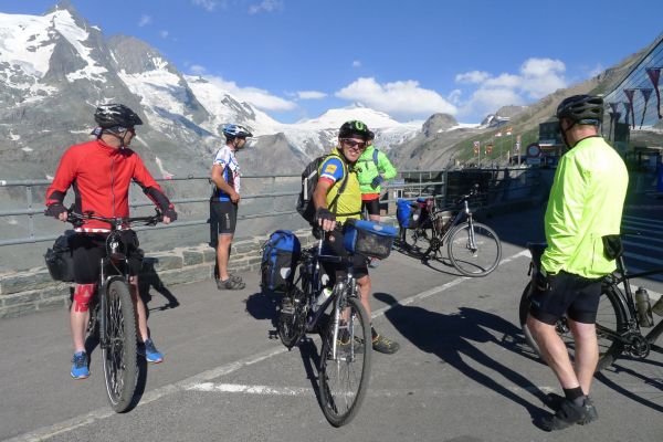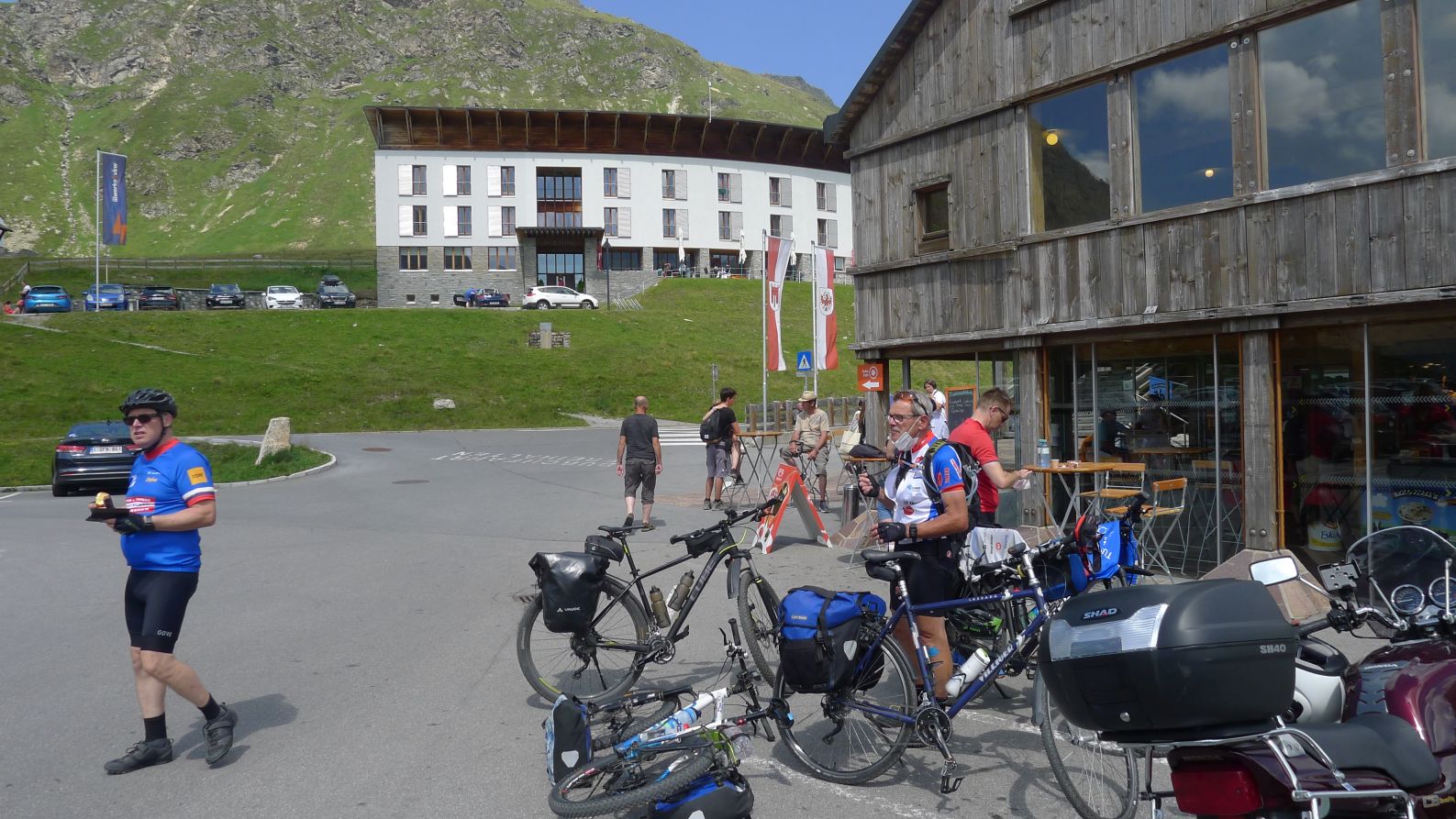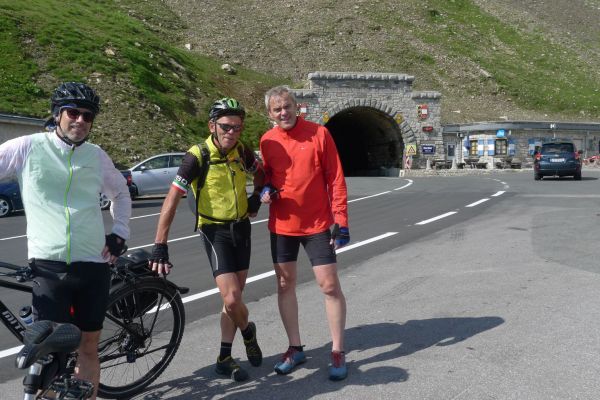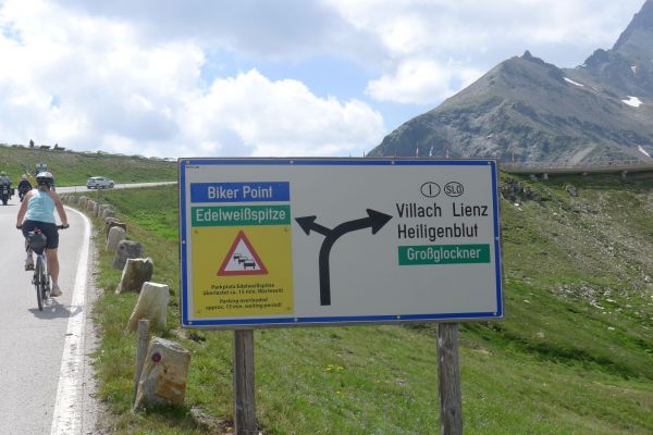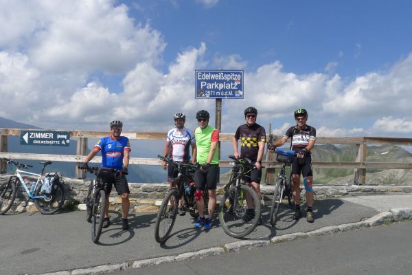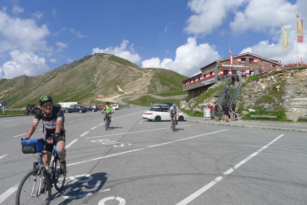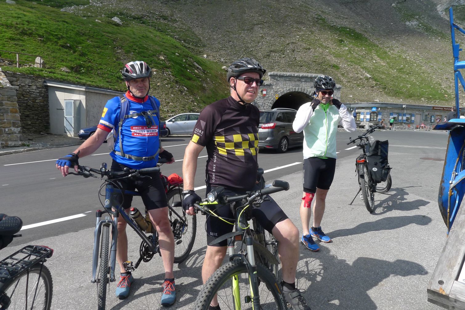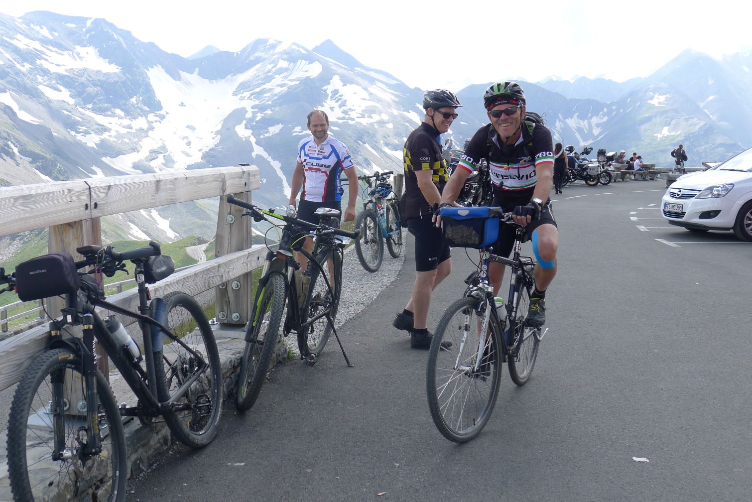 15:08 Uhr Klaus und Andi erreichen die Edelweißspitze. Nach einem Foto geht es auch gleich wieder auf die Abfahrt, noch liegen 24km und zwei weitere Anstiege vor uns. Am Fuscher Törl sammeln wir Armin ein, der dort Mittag gemacht hat.