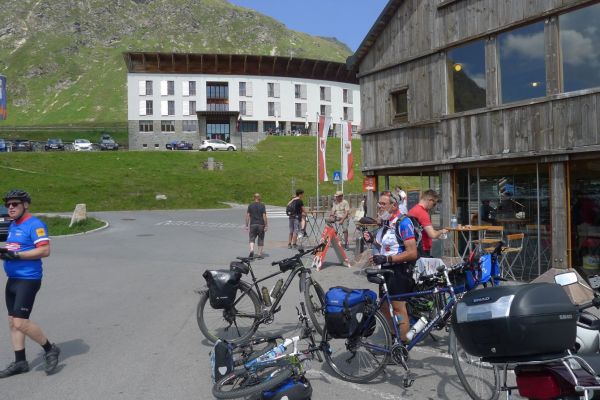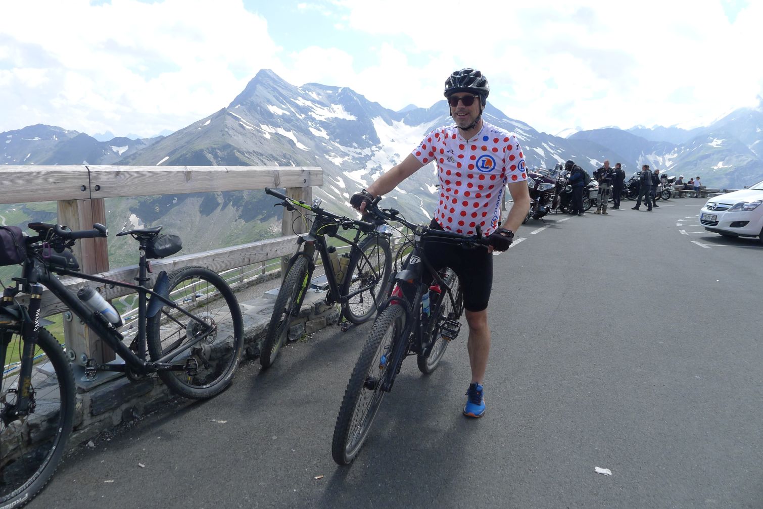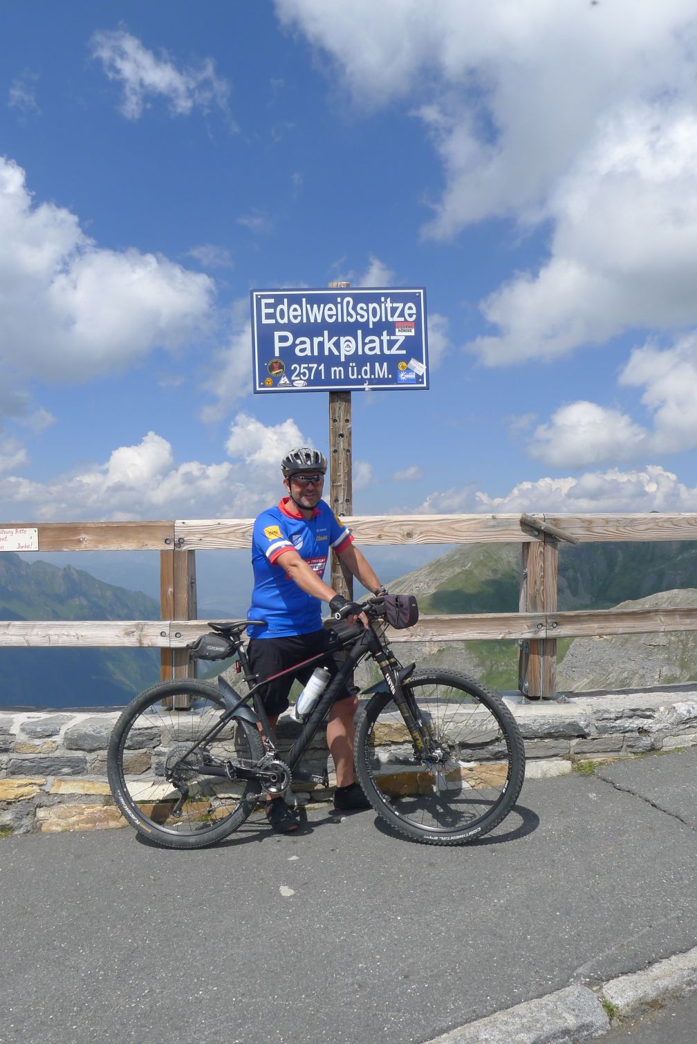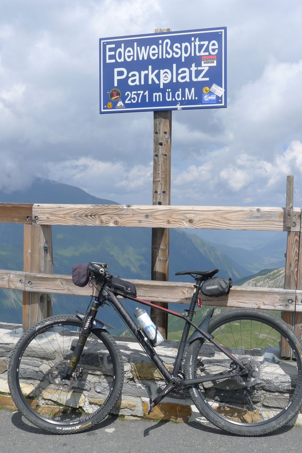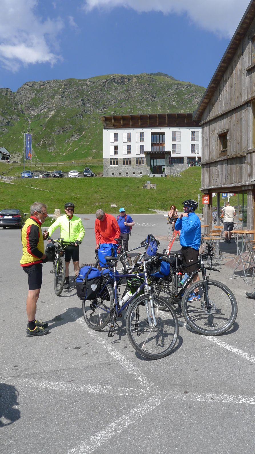 15:08 Uhr Klaus und Andi erreichen die Edelweißspitze. Nach einem Foto geht es auch gleich wieder auf die Abfahrt, noch liegen 24km und zwei weitere Anstiege vor uns. Am Fuscher Törl sammeln wir Armin ein, der dort Mittag gemacht hat.