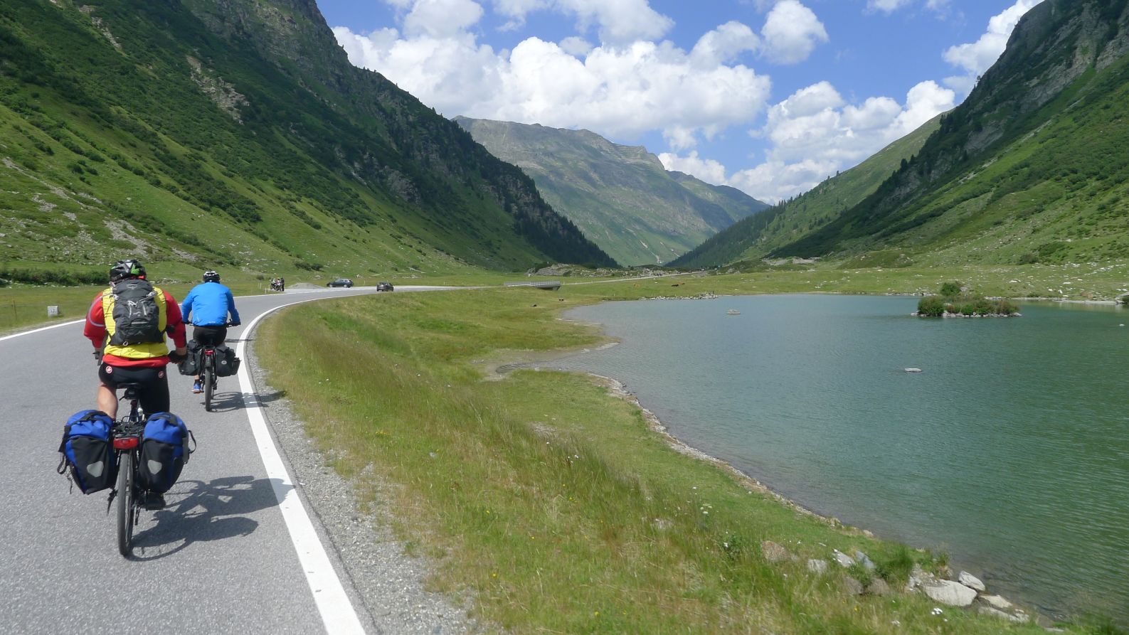 13:40 Uhr: Nach einer Pause geht’s weiter. Wir machen Armin Mut, nur noch 5 oder 6 Kehren bis zur Passhöhe. Die ersten Kilometer am See entlang verlaufen auch fast ohne Steigung. Doch dann wird es vor der Passhöhe nochmal richtig steil, aber zum Glück sind die 10%igen Rampen nicht allzu lang.