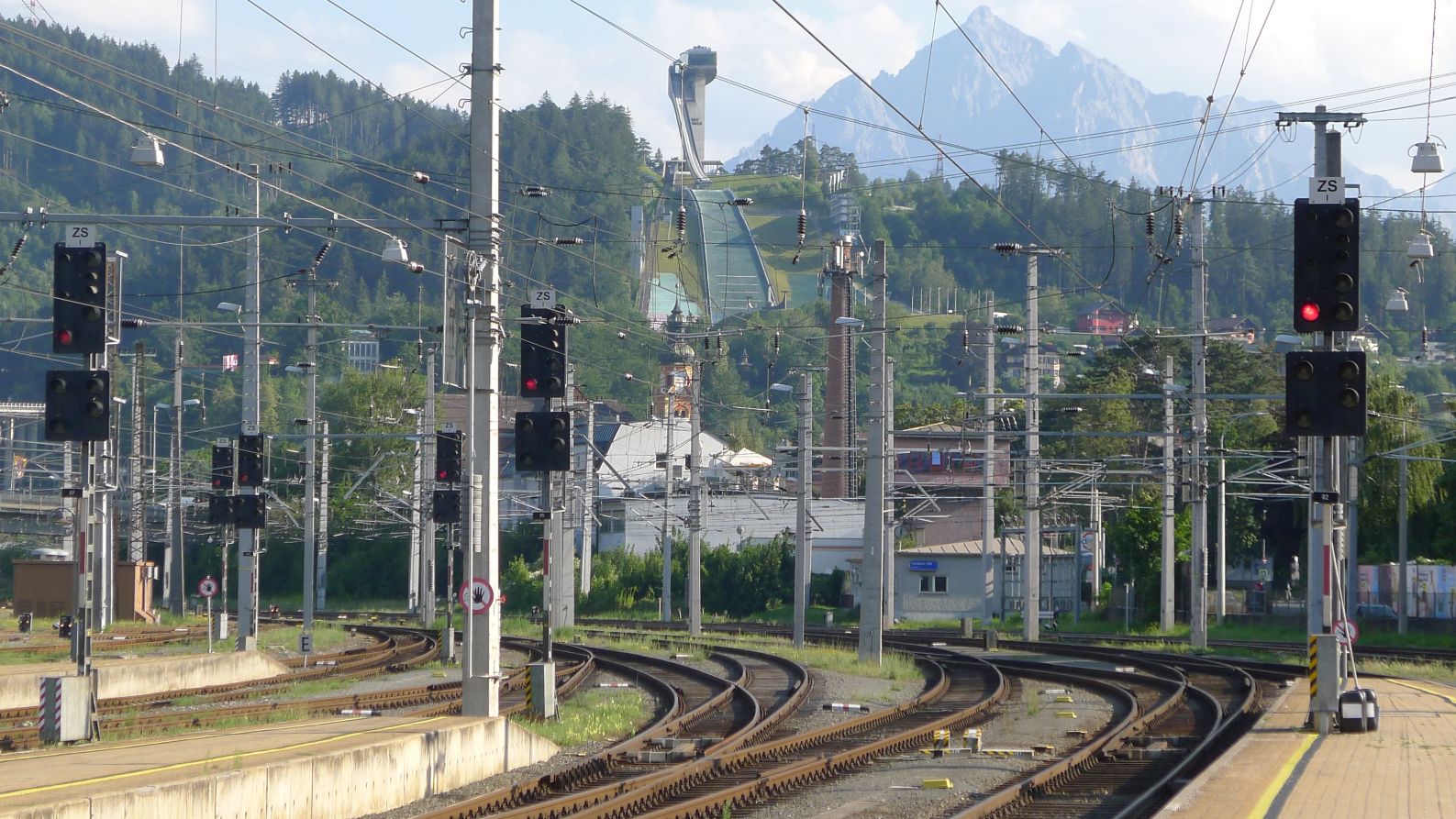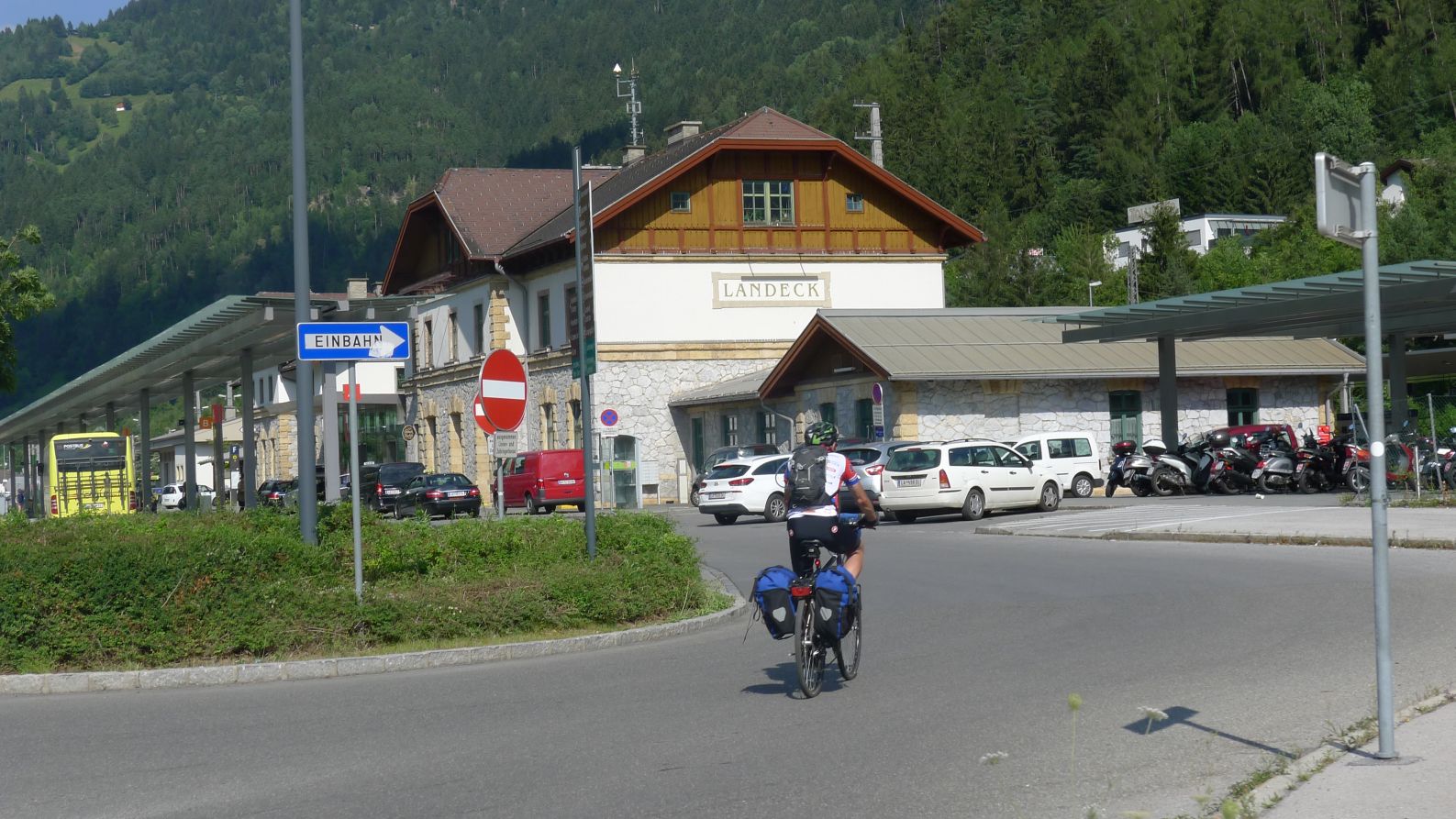 16:50 Uhr: Punktlandung. Wir treffen auf dem Bahnsteig des Bahnhofes Landeck-Zams ein. In 10 min fährt der Zug ab. Der bringt uns aber nur bis Innsbruck, wo wir 1h 20 min Aufenthalt haben. An einer heißen Theke bei einem Supermarkt fassen wir etwas zu essen, ehe es mit einem weiteren Umstieg in Wörgl nach Zell am See geht.
