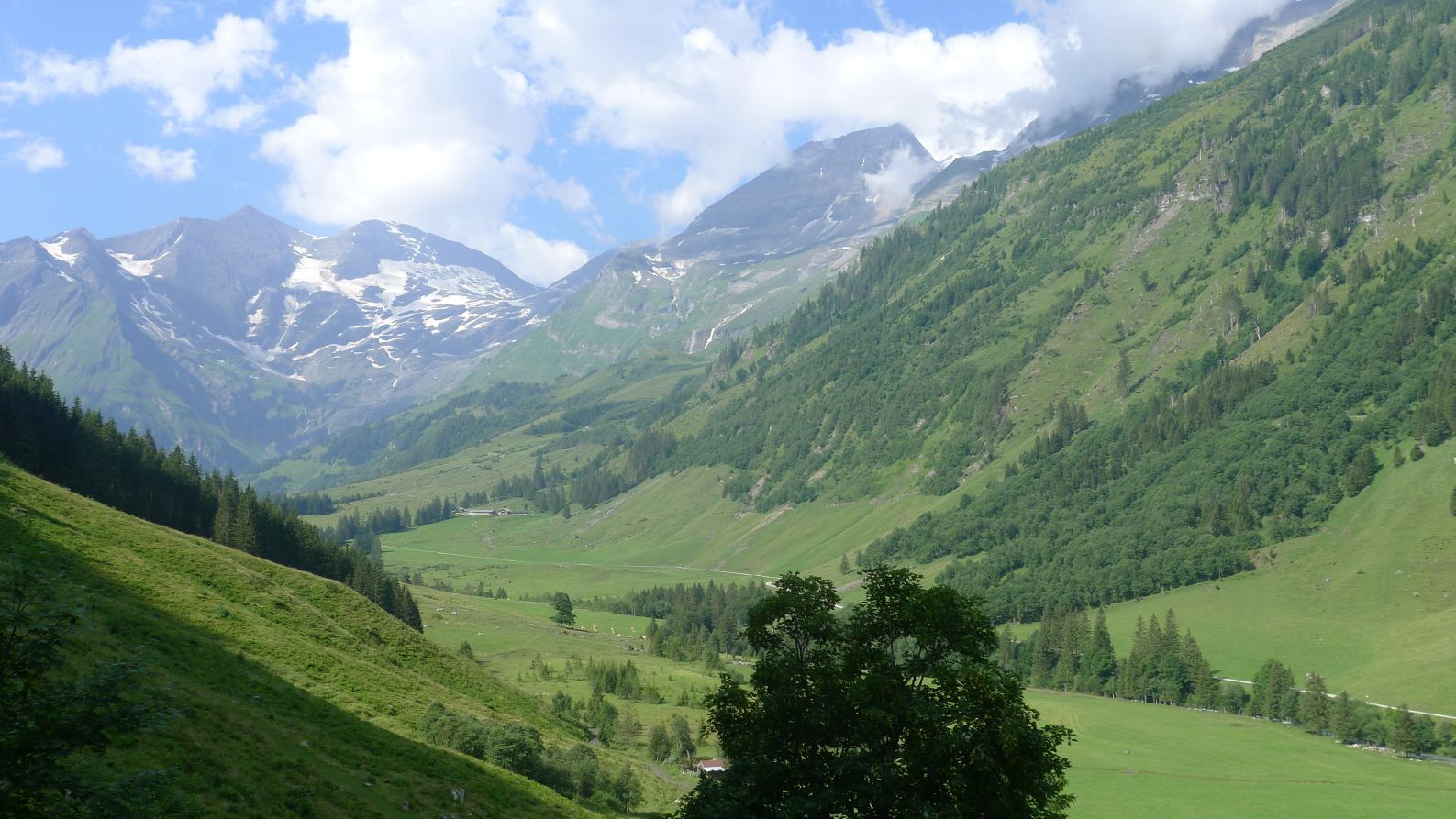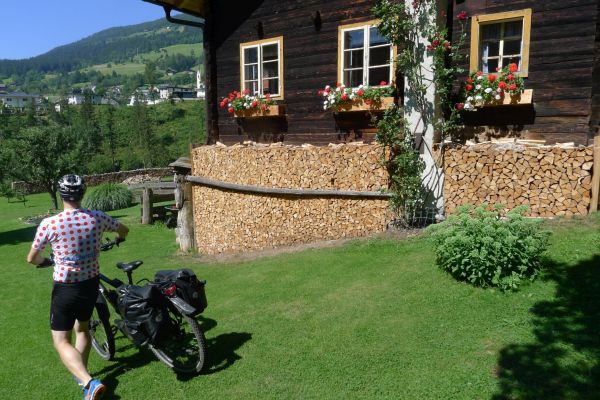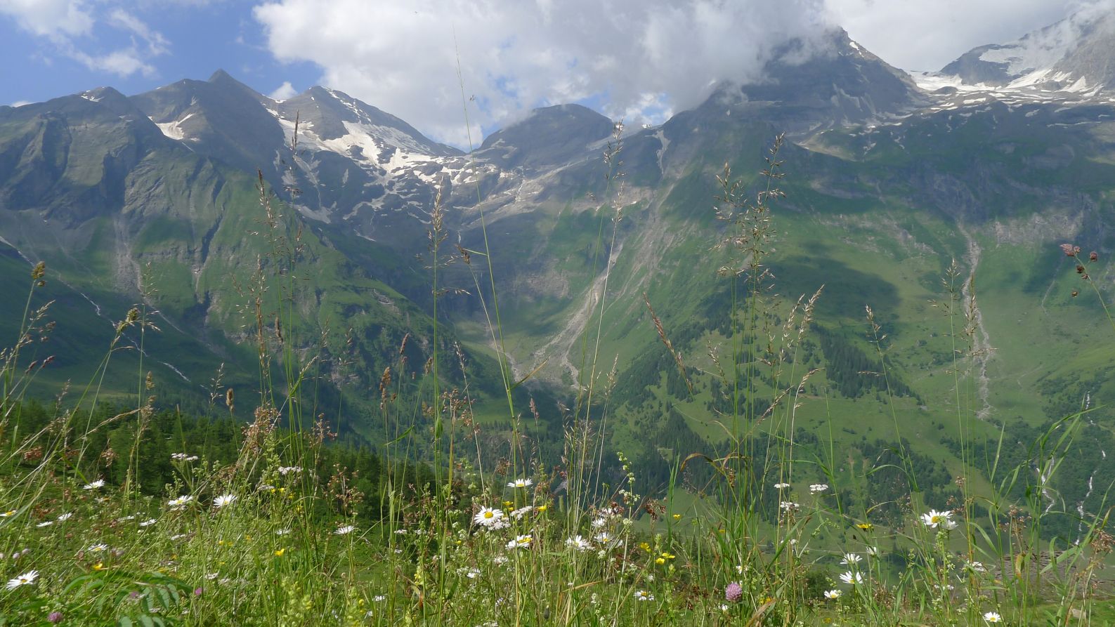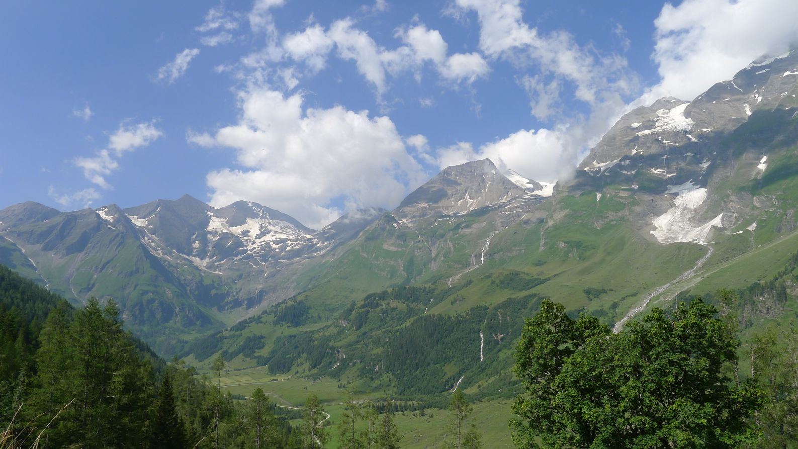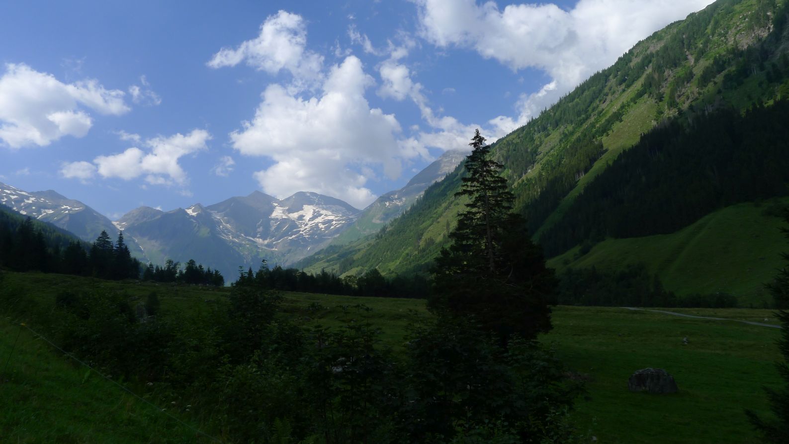 9:20 Uhr: Start zur 4. Etappe. Nach einem Foto vorm Großglockner begeben wir uns auf eine 8,5km lange Abfahrt. Kurz vor Heiligenblut zweigen wir von der Bundesstraße auf eine kleine Seitenstraße ab und fahren auf einem Höhenweg mit tollem Ausblick ins Tal weiter bergab. Hier und da geht es auch mal wieder bergauf, aber dafür entgehen wir dem Verkehr auf der Großglocknerstraße.