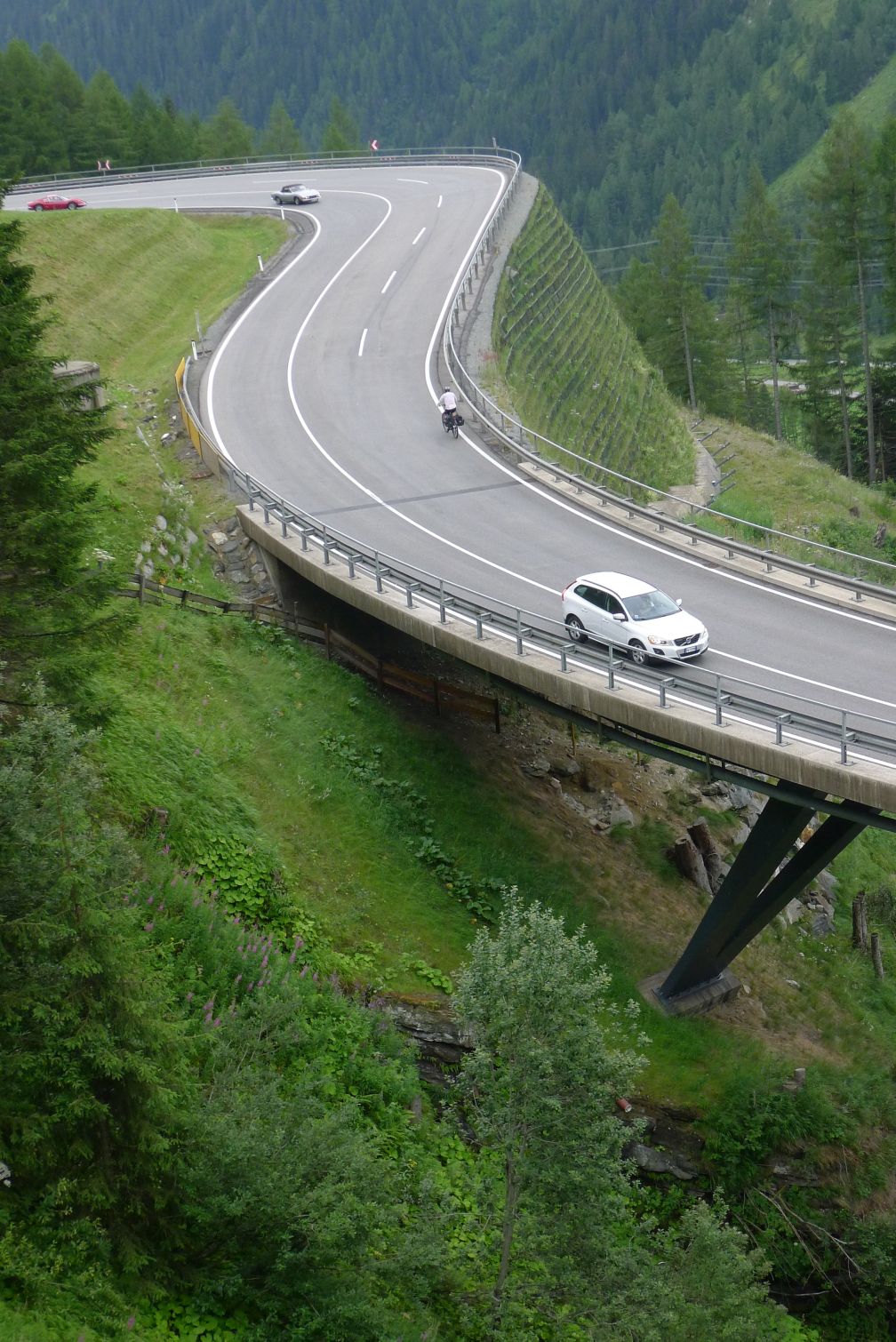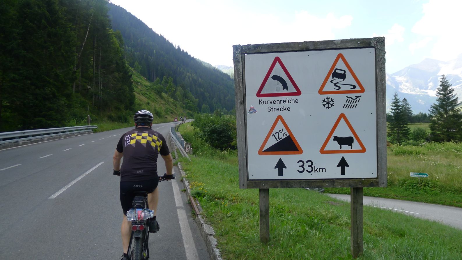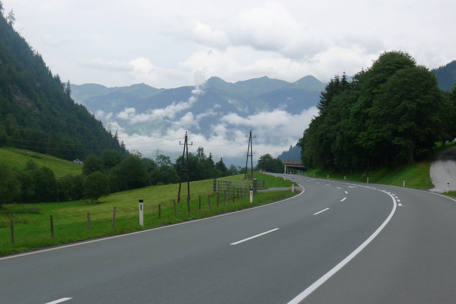 Erstes Zwischenziel ist der Felbertauerntunnel, vom Start weg sind 18km mit 750 Höhenmetern zu überwinden. Die Felbertauern-Passtraße lässt sich gut fahren, 6-8% Steigung und dazwischen lange Passagen mit weniger als 5%.