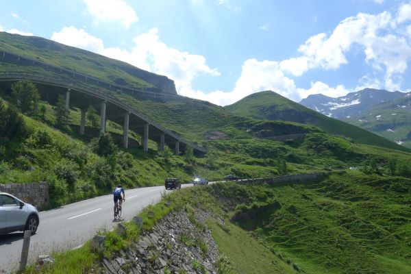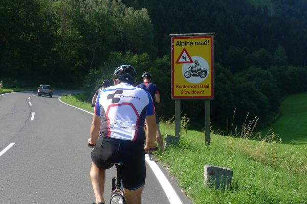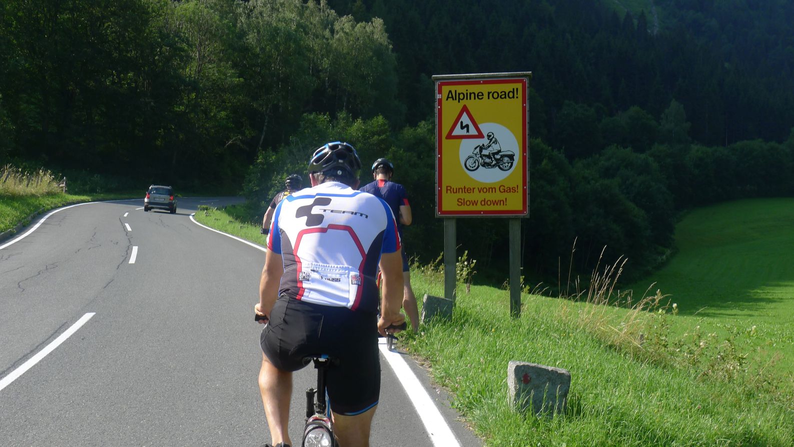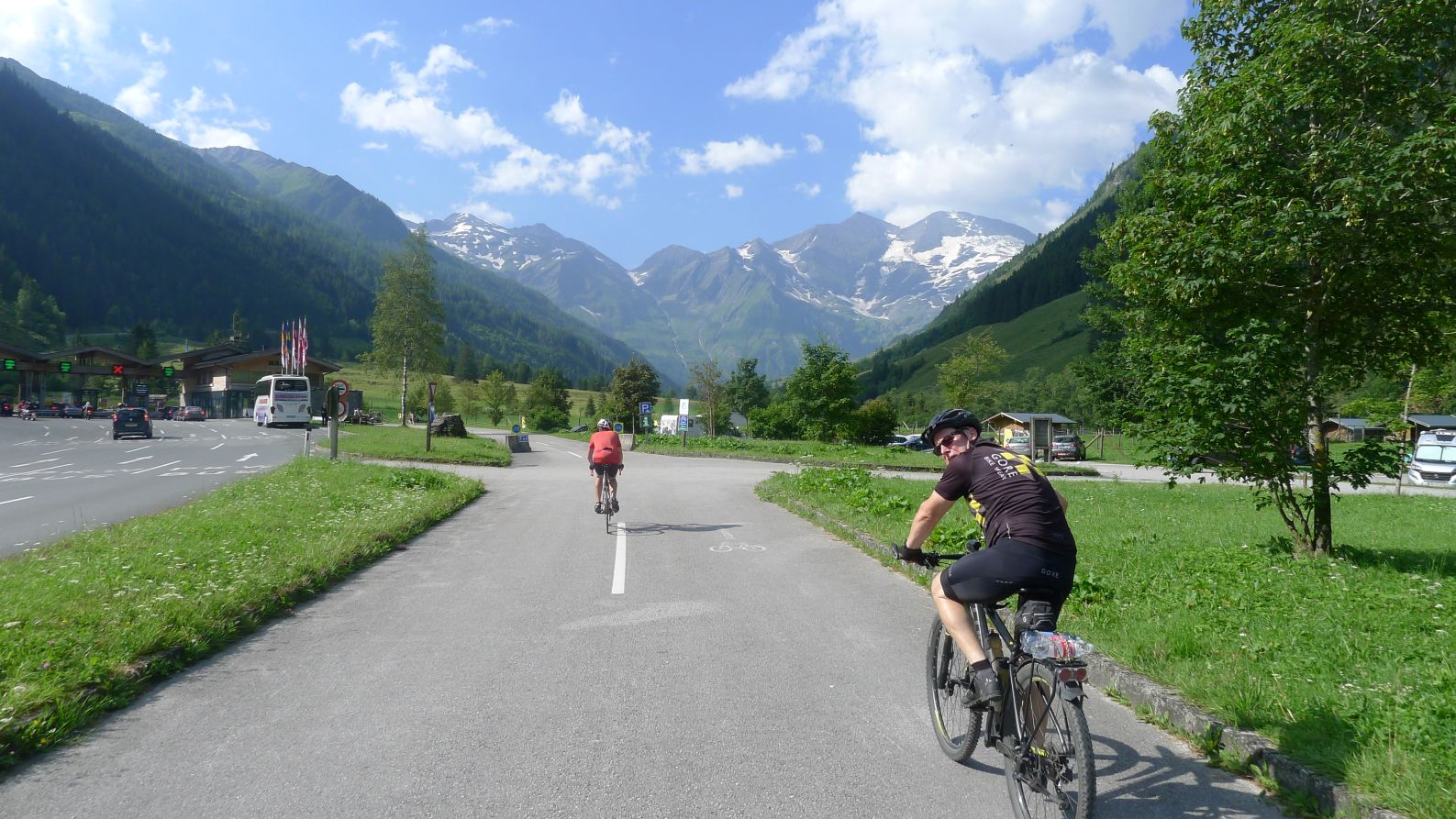 Erstes Zwischenziel ist der Felbertauerntunnel, vom Start weg sind 18km mit 750 Höhenmetern zu überwinden. Die Felbertauern-Passtraße lässt sich gut fahren, 6-8% Steigung und dazwischen lange Passagen mit weniger als 5%.